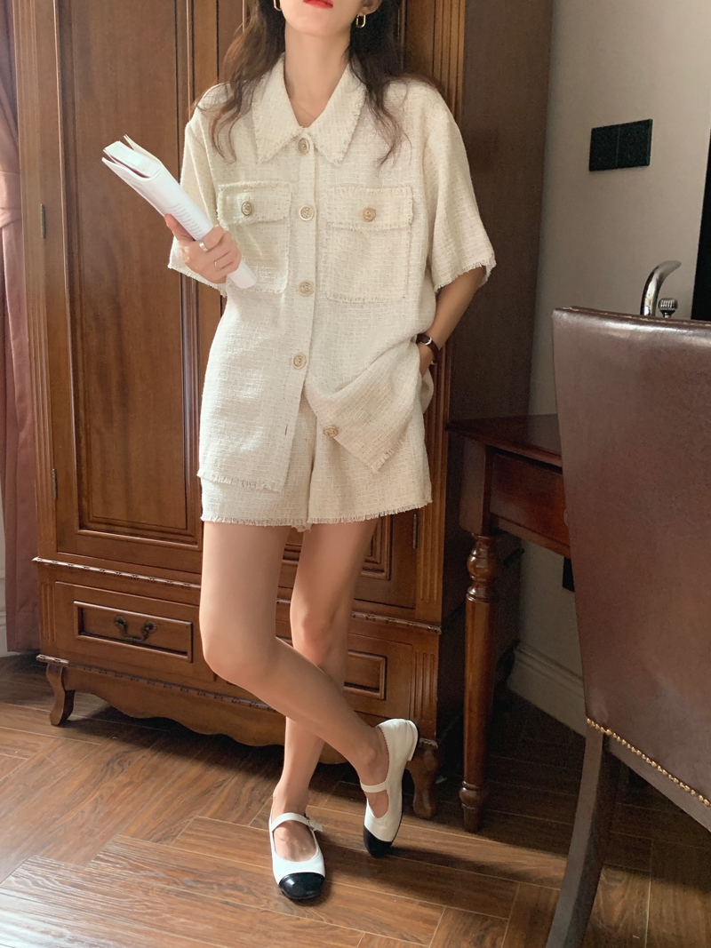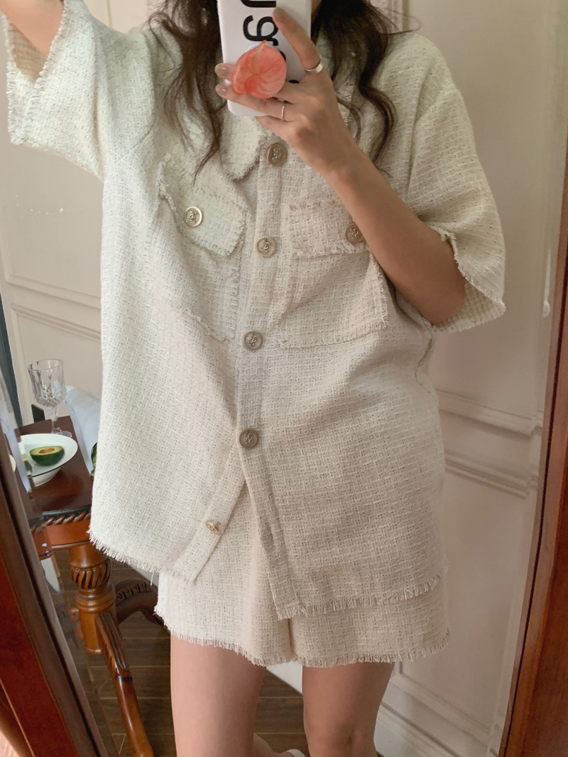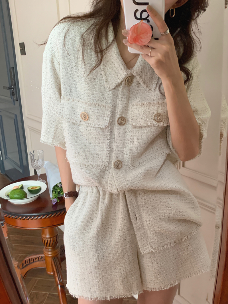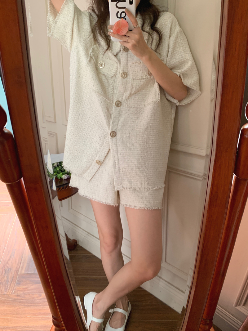 TODAYFUL:实拍 面料Material/ 厚度Thickness/ 版型Shape/ 衬衫 胸围:120 肩宽:46 袖长:27 衣长:71(单位:cm) 裤子 腰围(松紧腰)66-90 裤长37