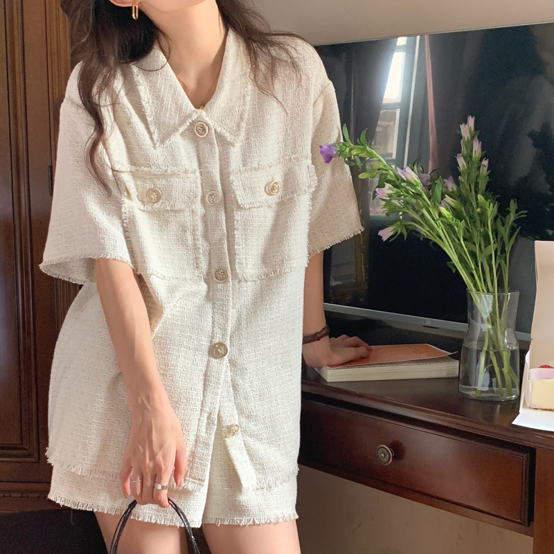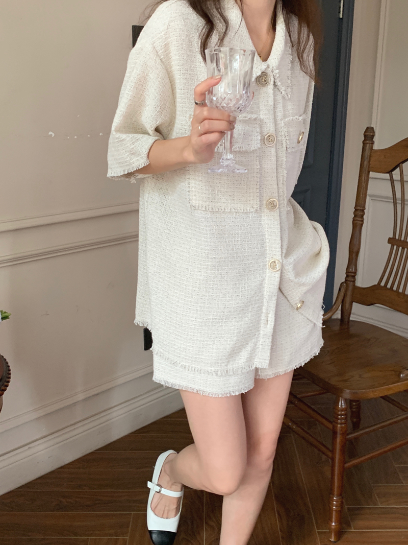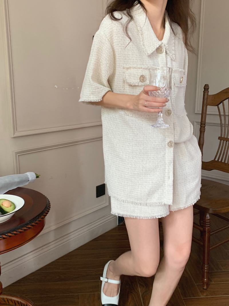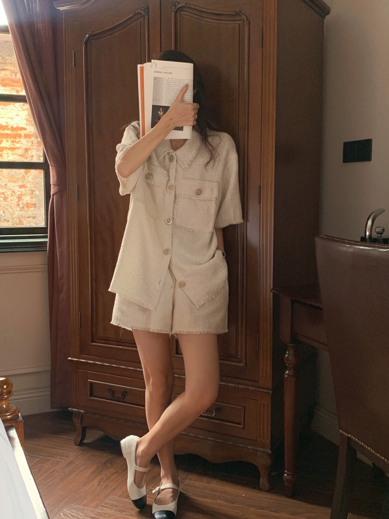 TODAYFUL:实拍 面料Material/ 厚度Thickness/ 版型Shape/ 衬衫 胸围:120 肩宽:46 袖长:27 衣长:71(单位:cm) 裤子 腰围(松紧腰)66-90 裤长37