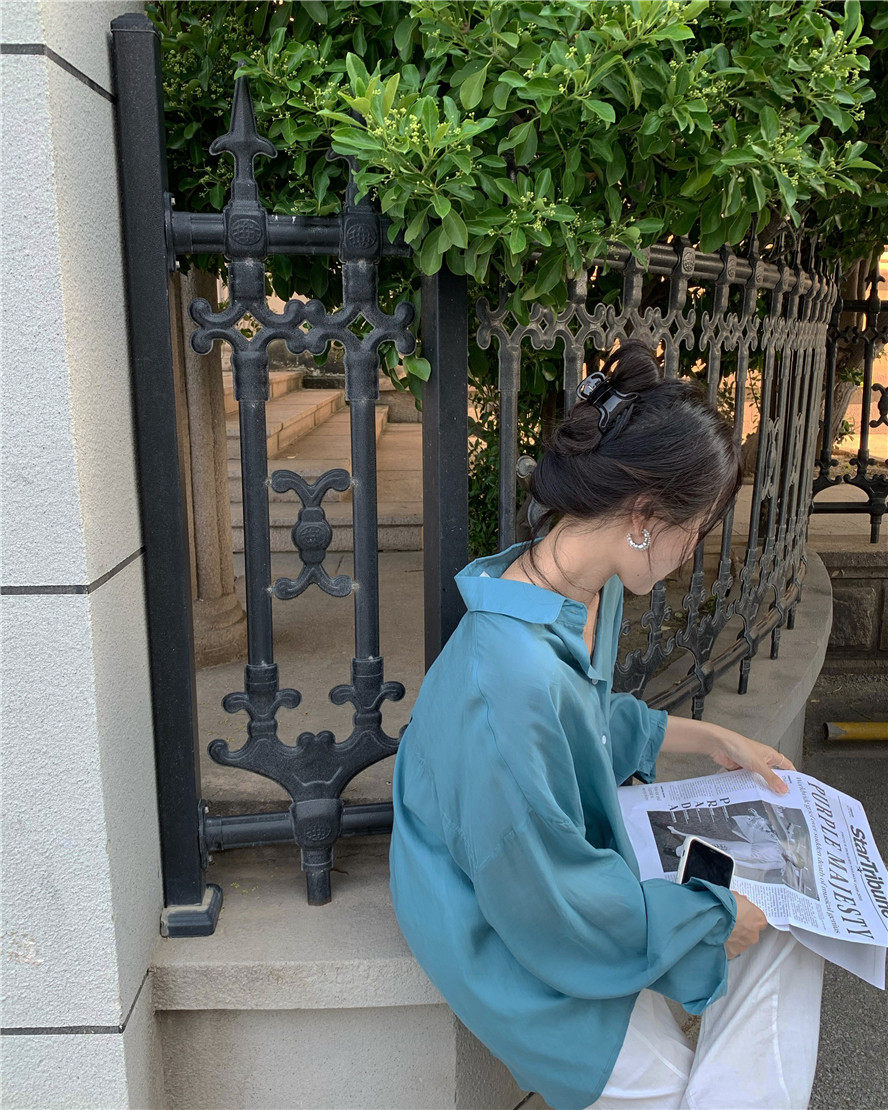 实拍 薄款天丝衬衫防晒夏季长袖设计感衬衣