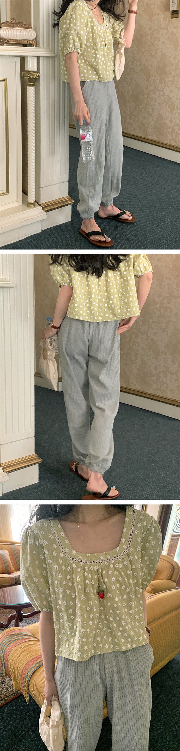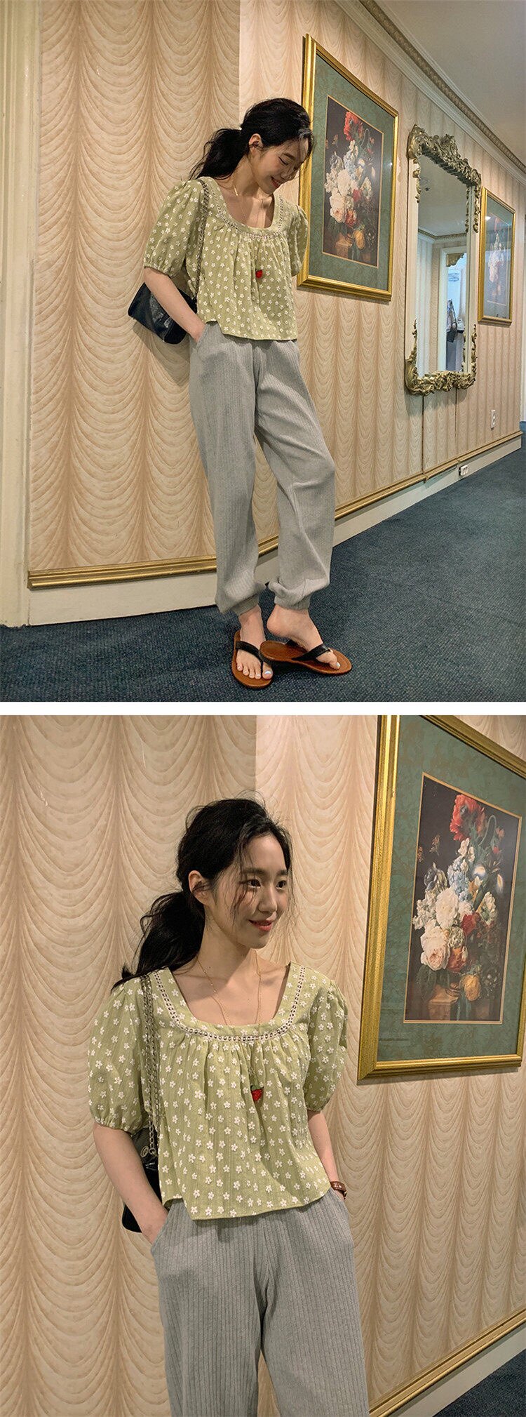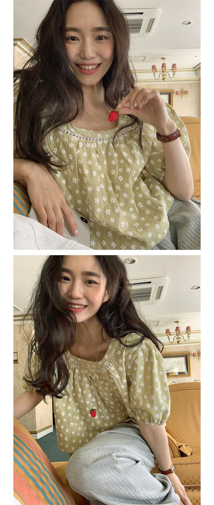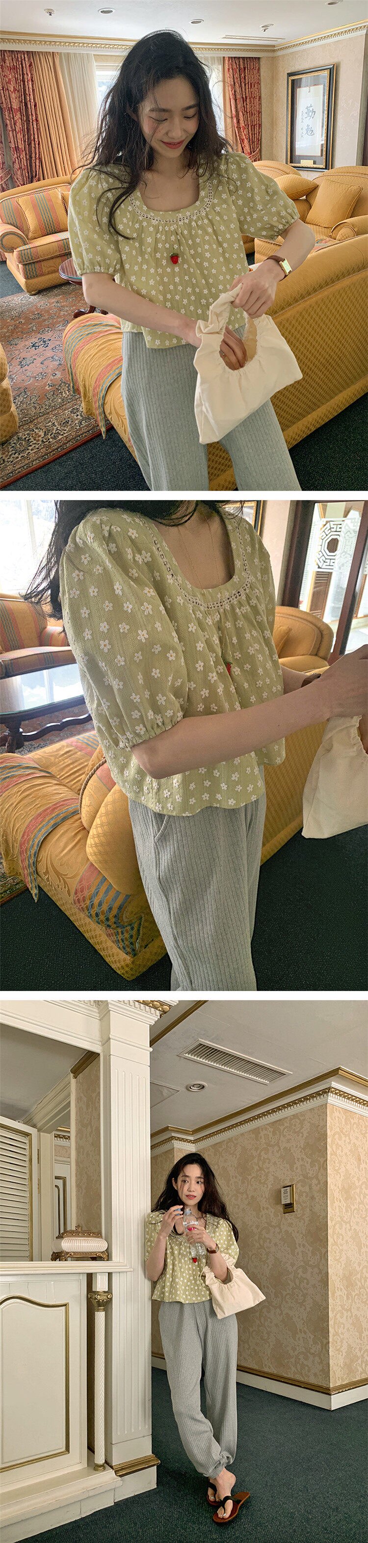 现货! chic 法式甜美设计感提花拼接泡泡袖减龄衬衫