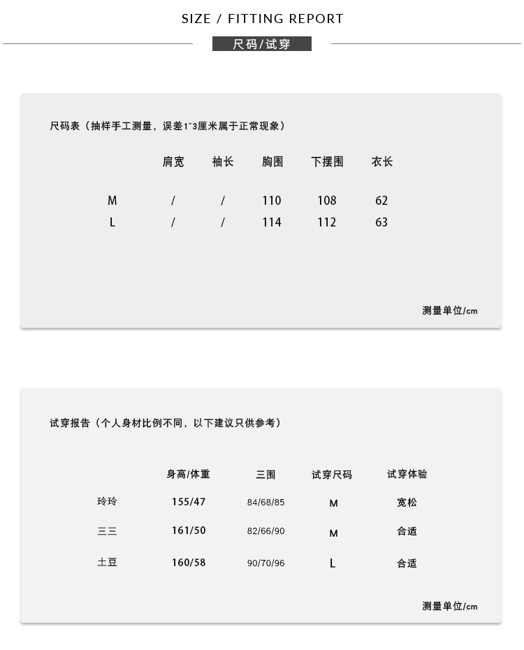 尺码:M L
