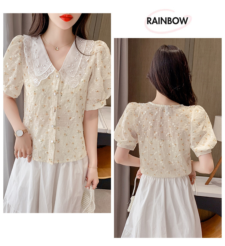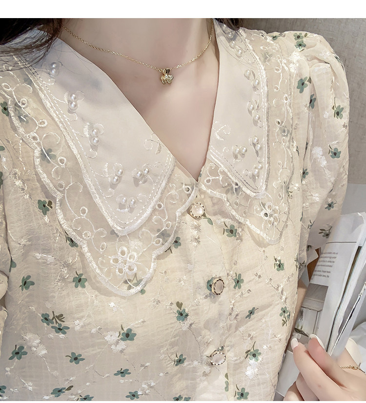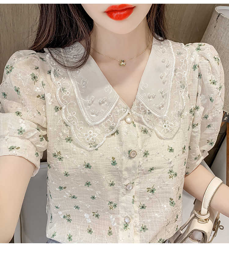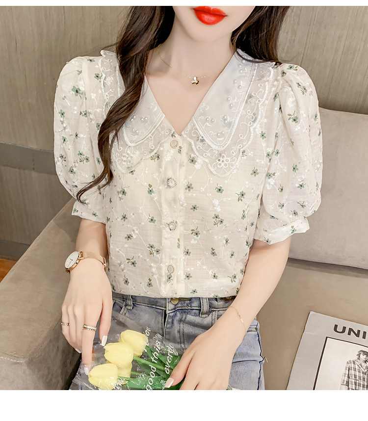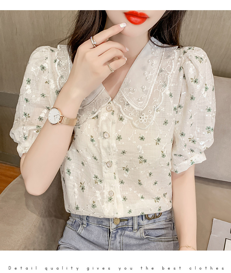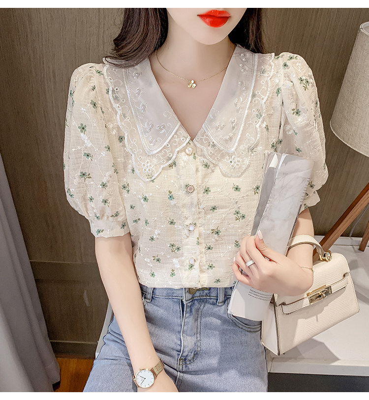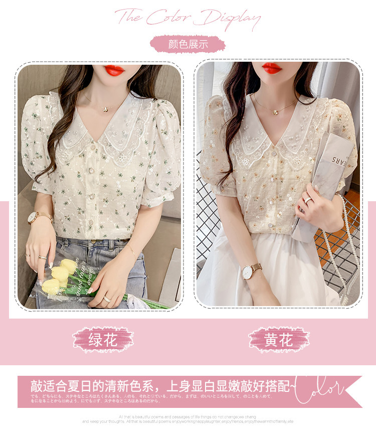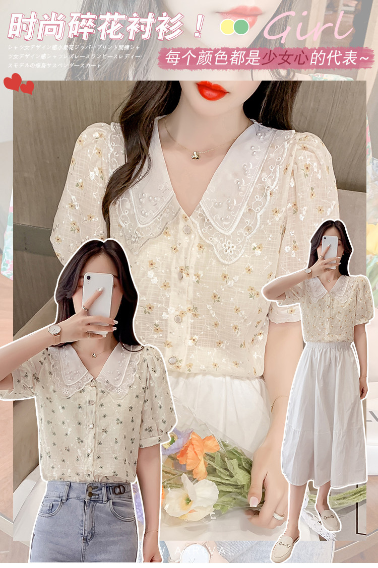 实拍现货~ 2021夏季新款韩版时尚雪纺衫上衣百搭蕾丝花边气质衬衫