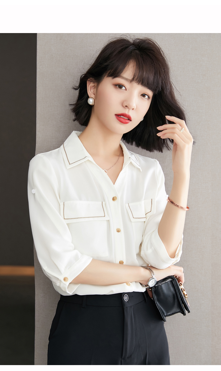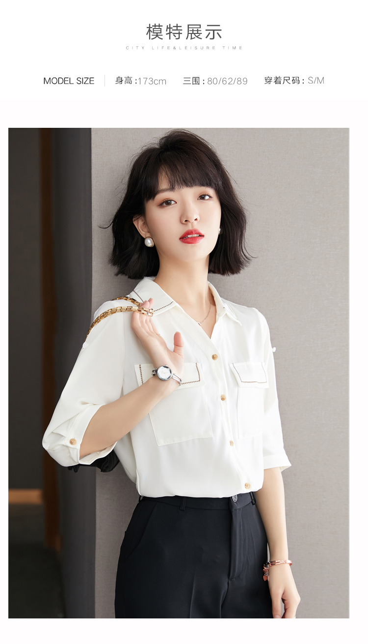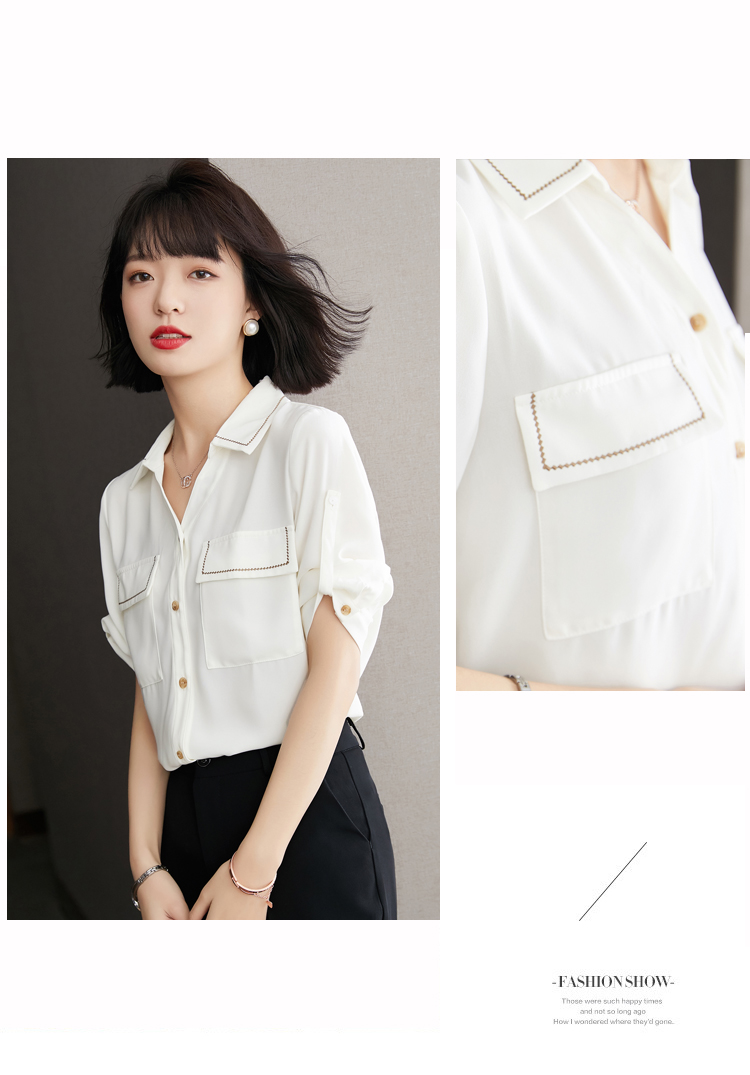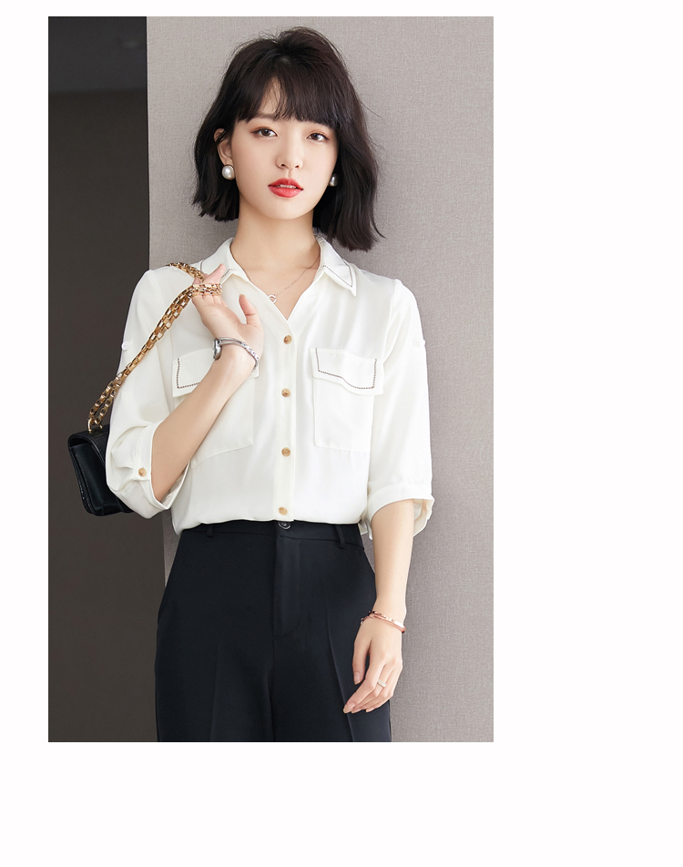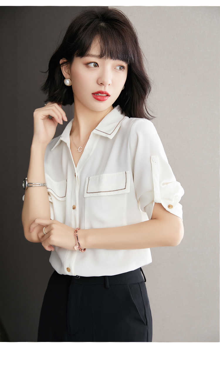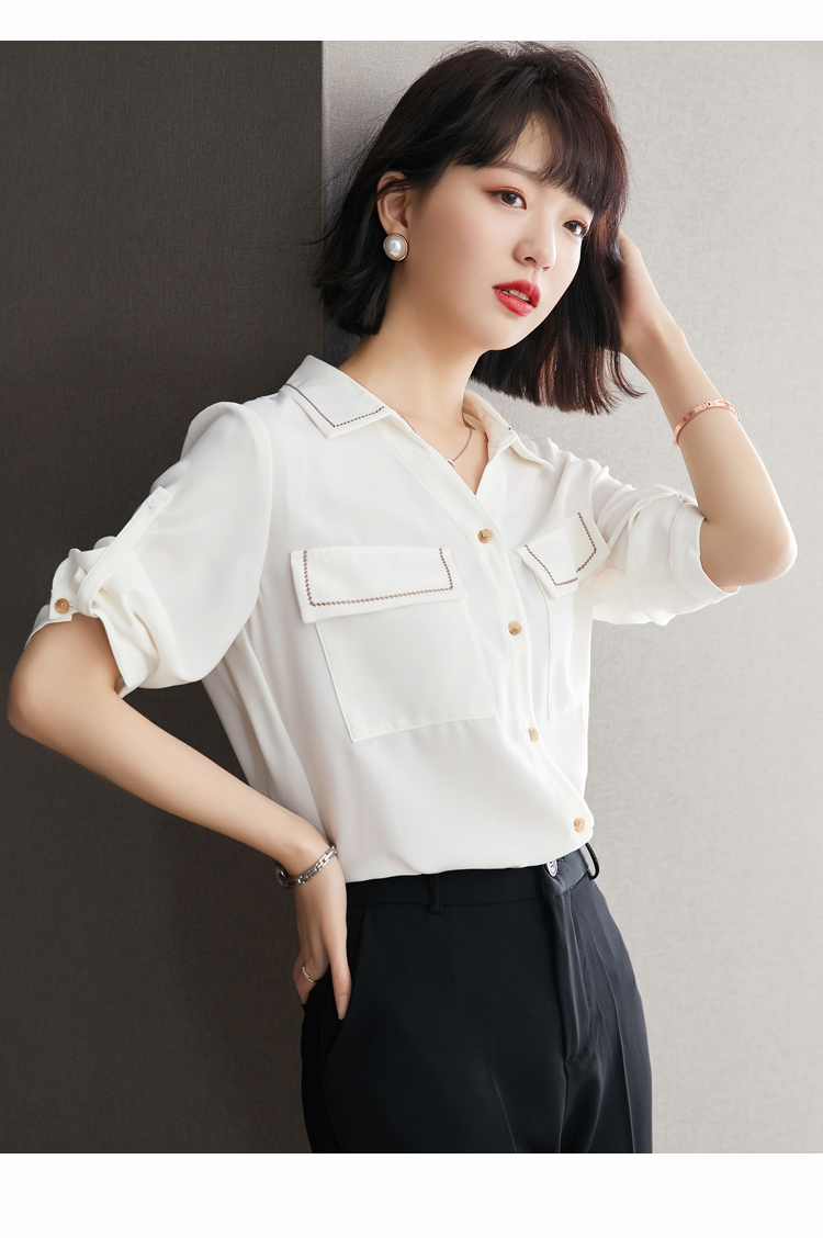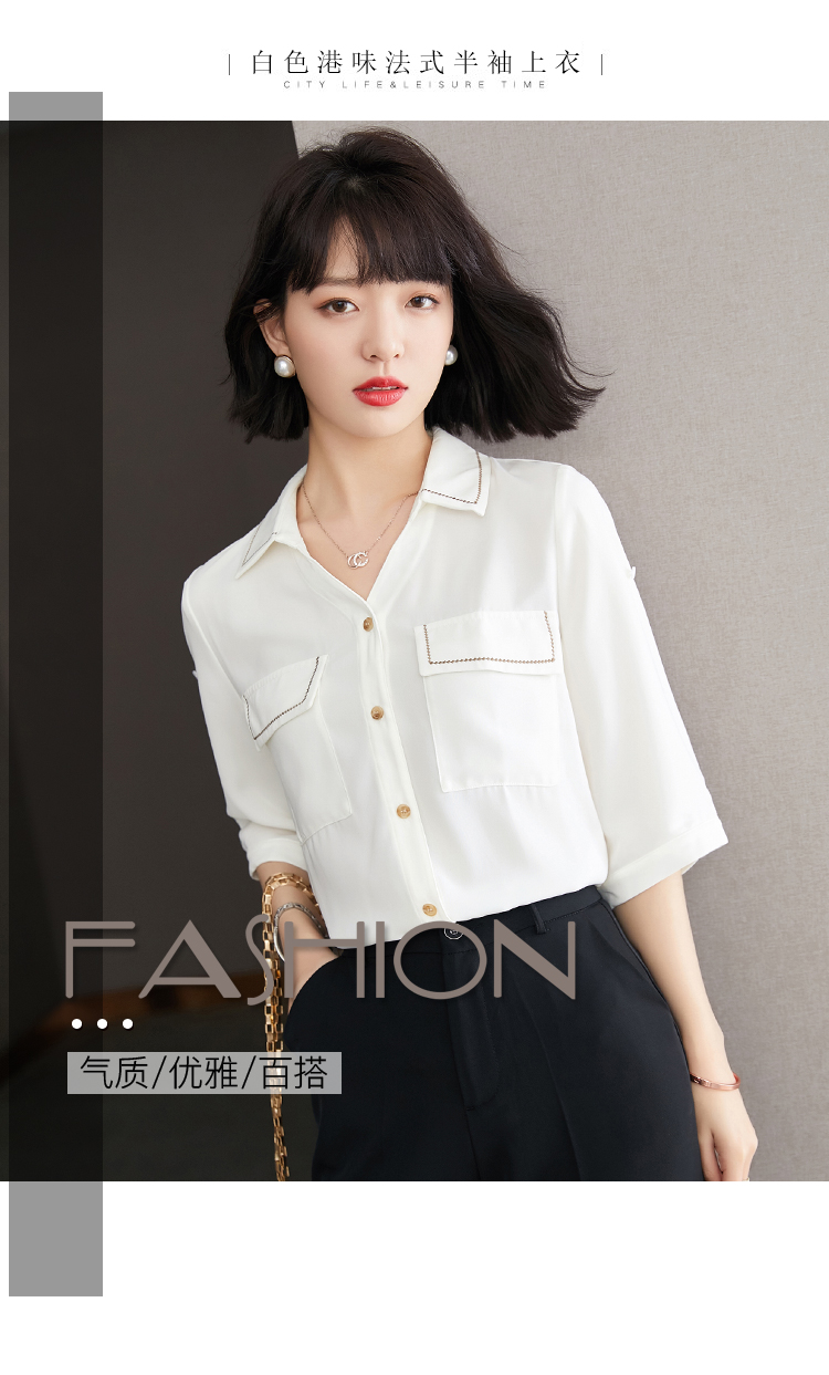 已出货 实拍#2021年新款文艺衬衫女半袖雪纺白色港味法式上衣春秋