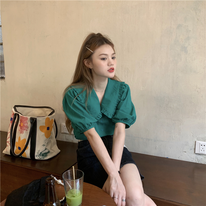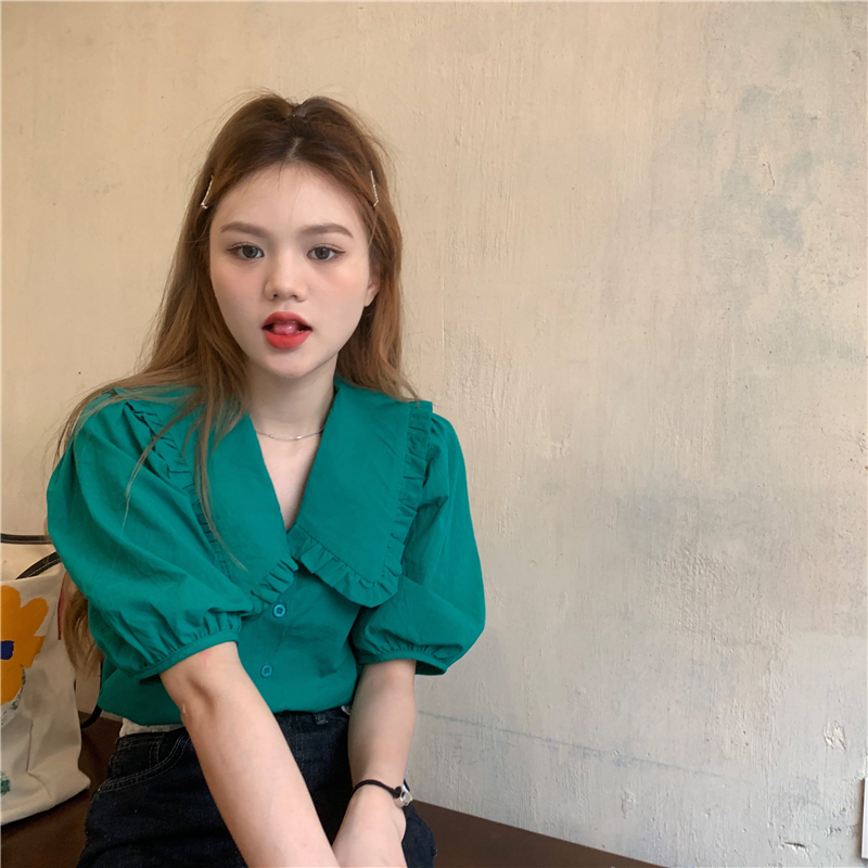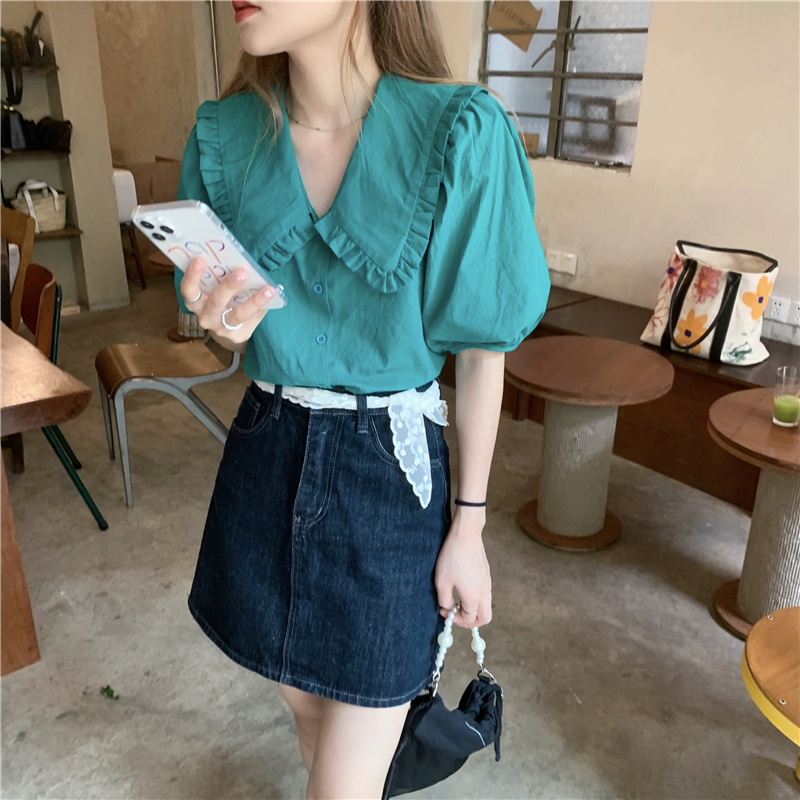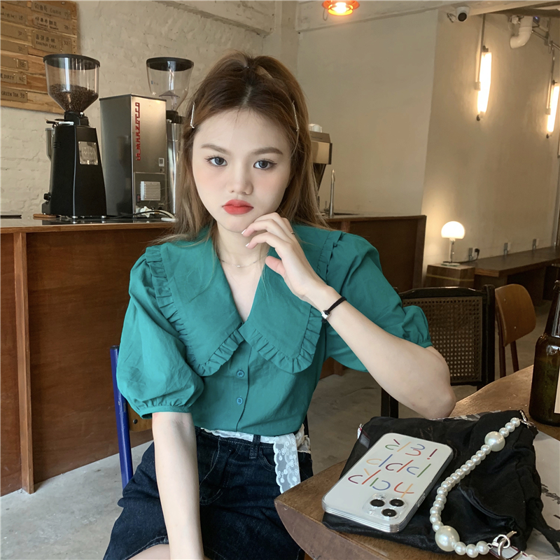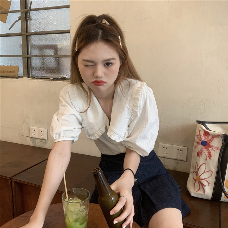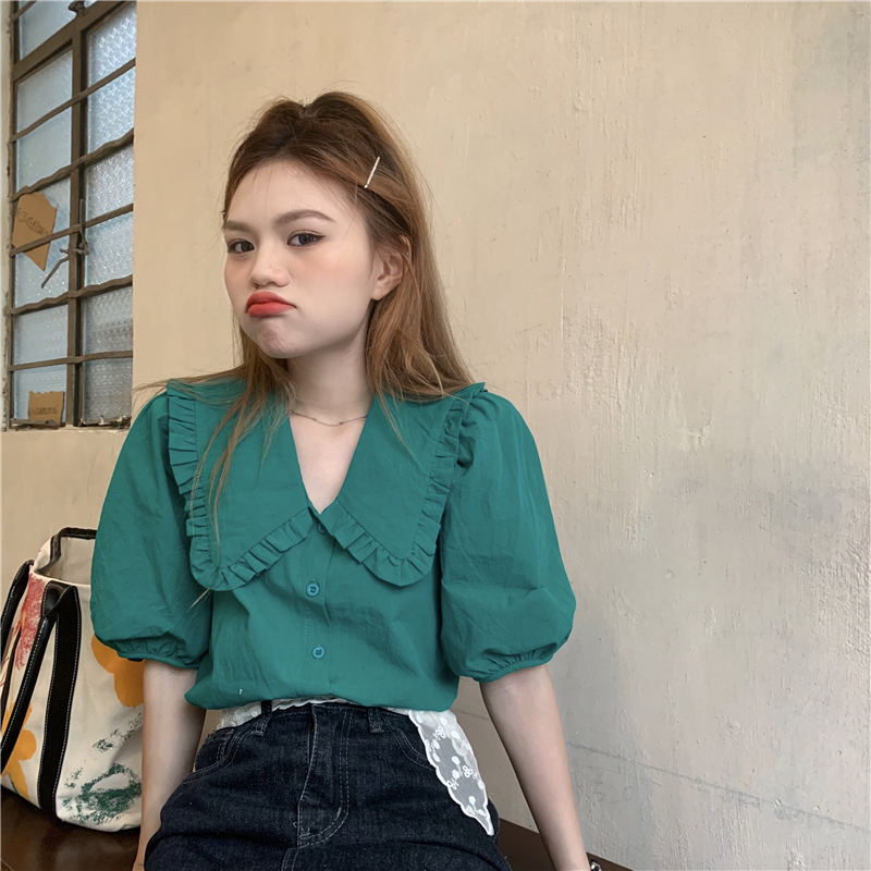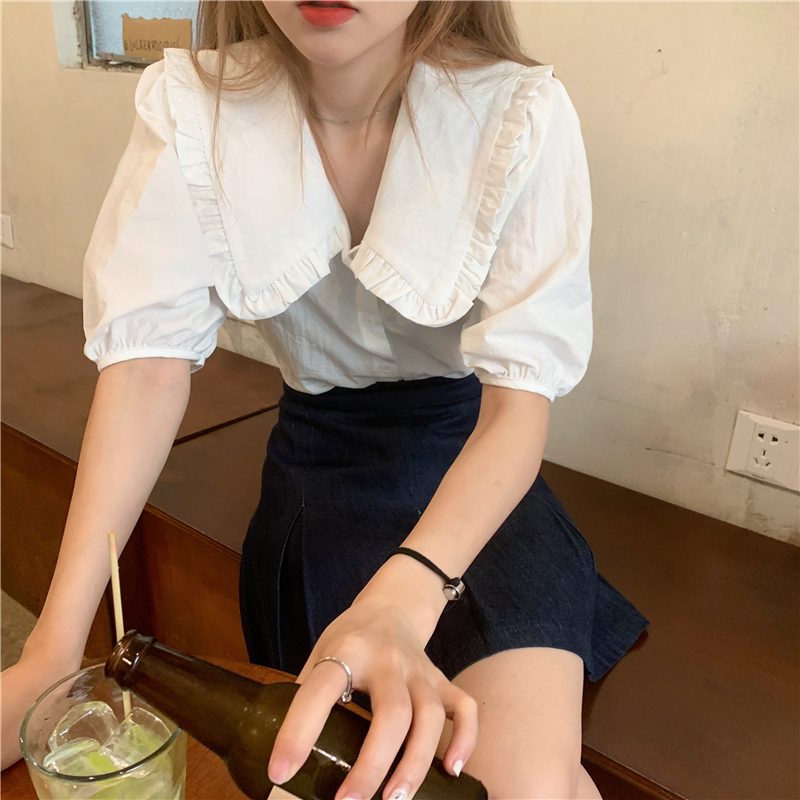 实拍实价 新款法式娃娃领泡泡袖衬衫上衣