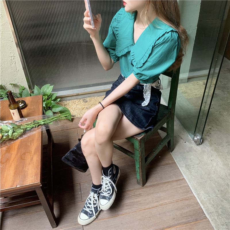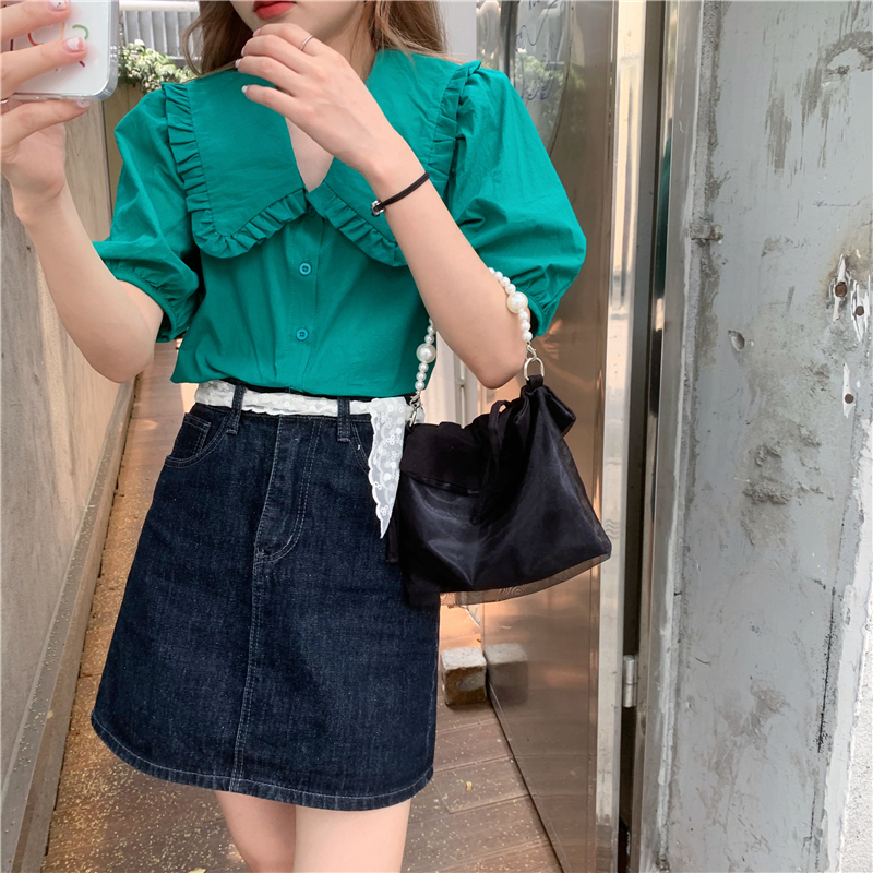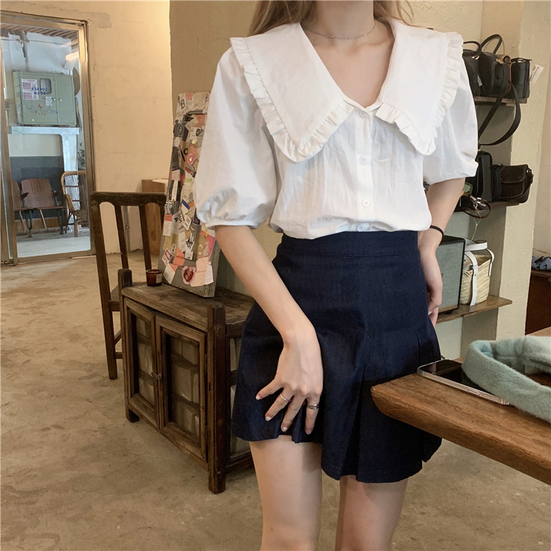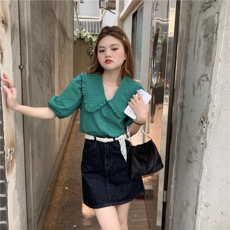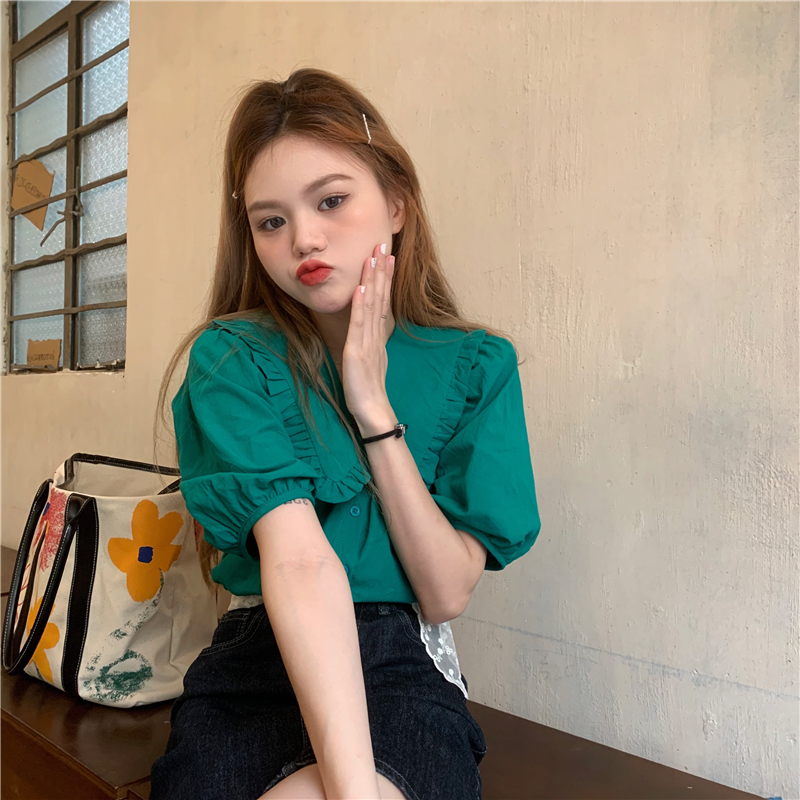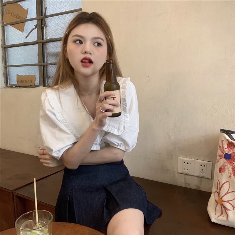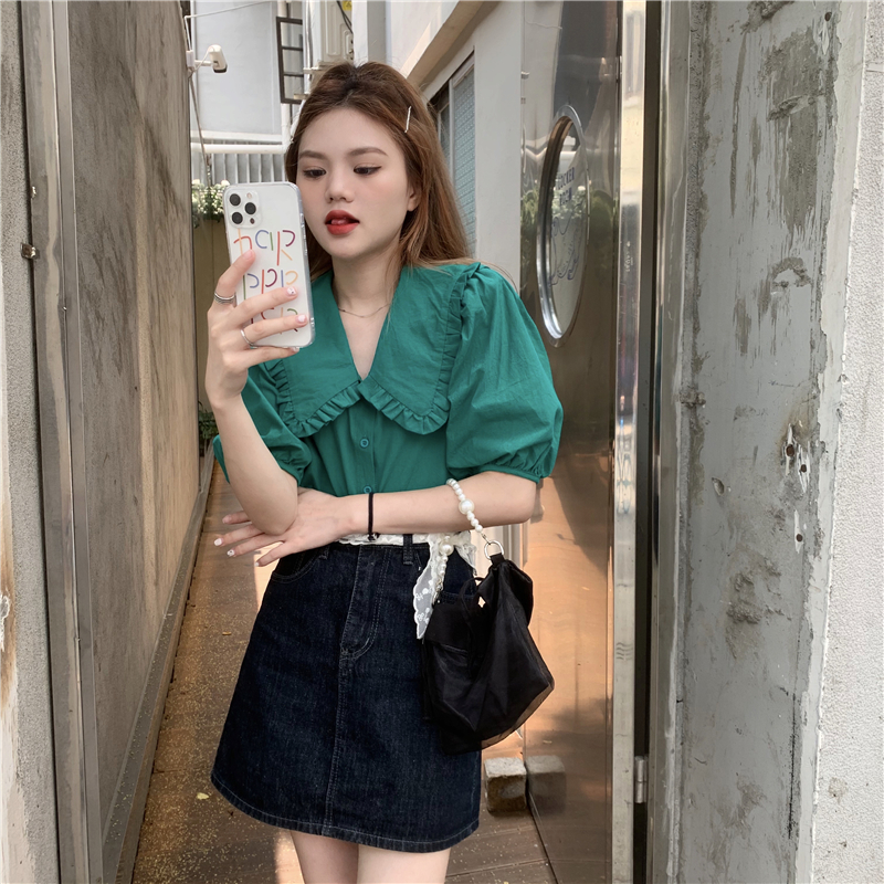 实拍实价 新款法式娃娃领泡泡袖衬衫上衣