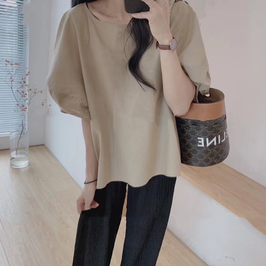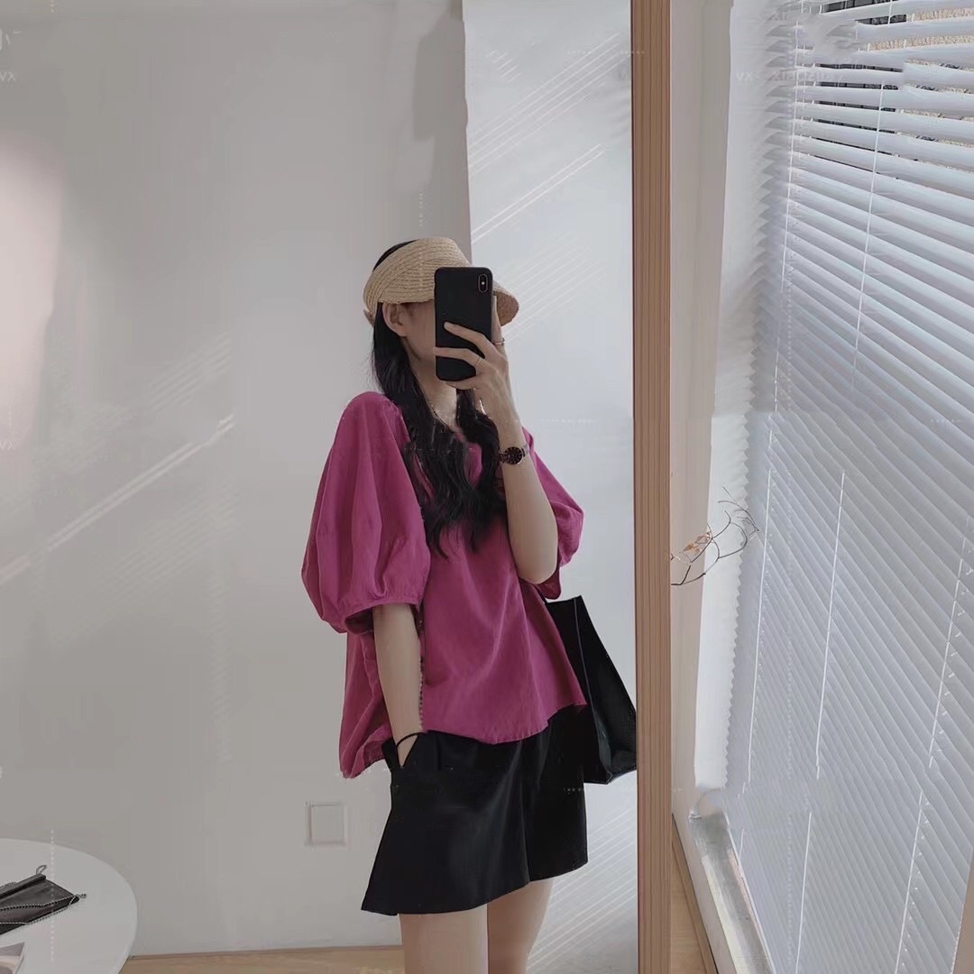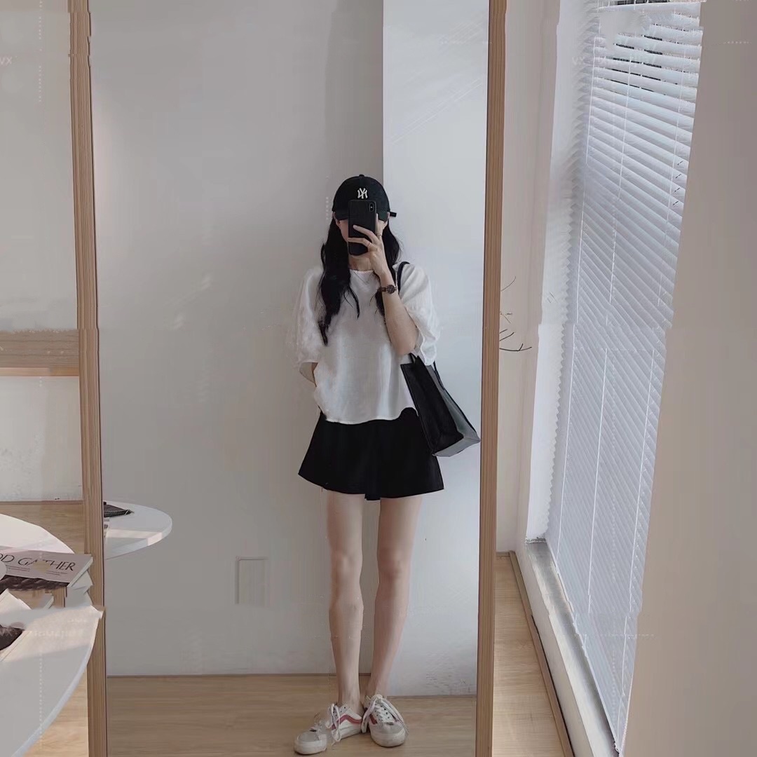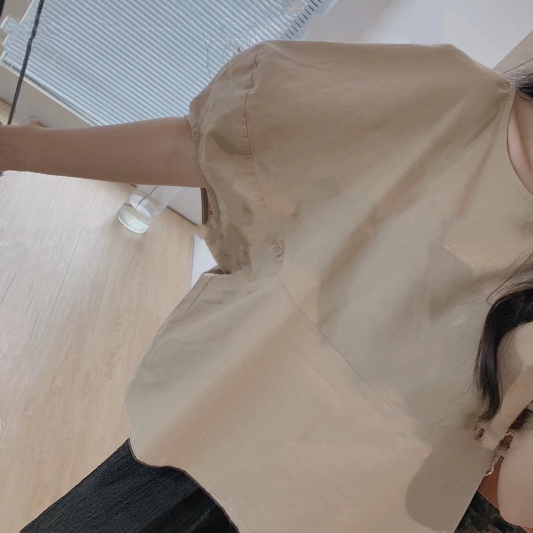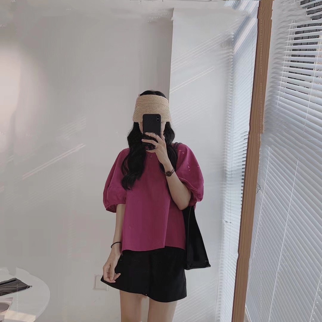 2021夏季新款韩版chic学院风百搭泡泡蝙蝠袖上衣+阔腿裤两件套