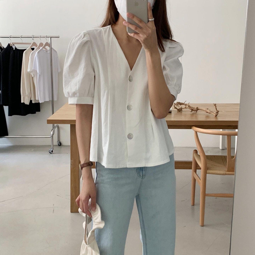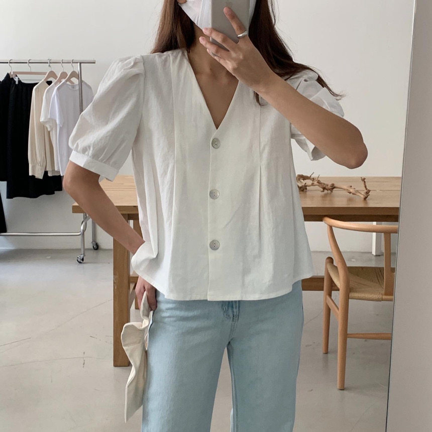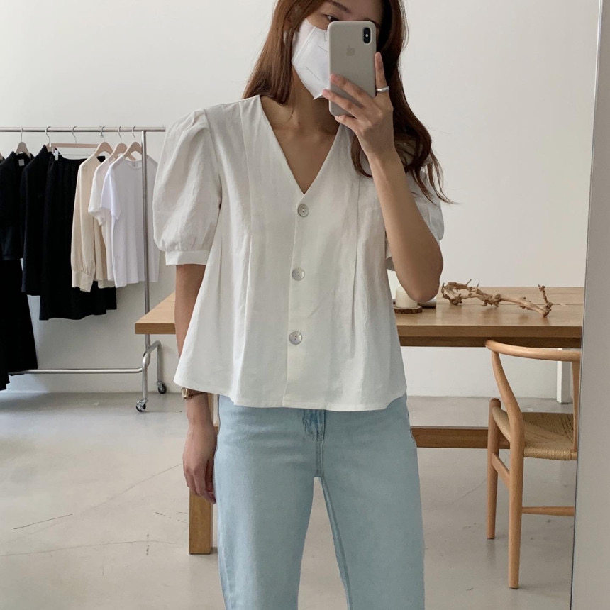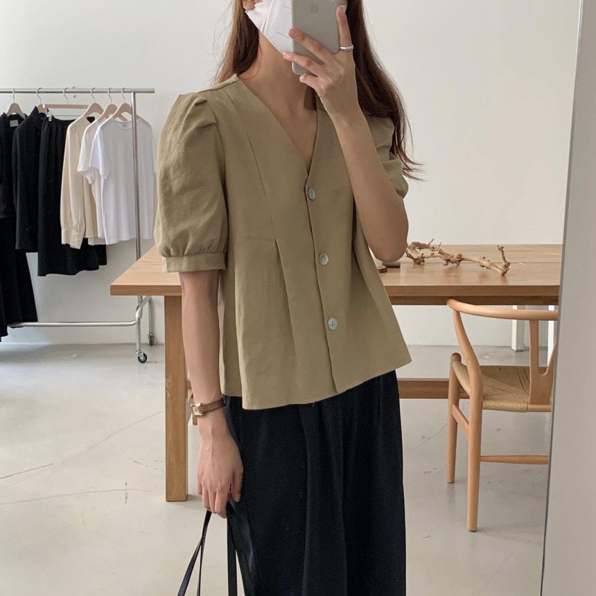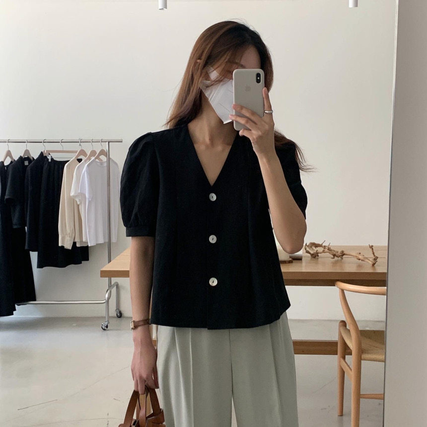 现货 韩国 褶皱开衫 小外套 上衣 泡泡袖 可爱 娃娃衫