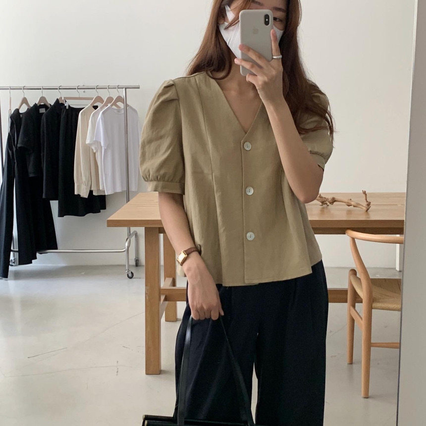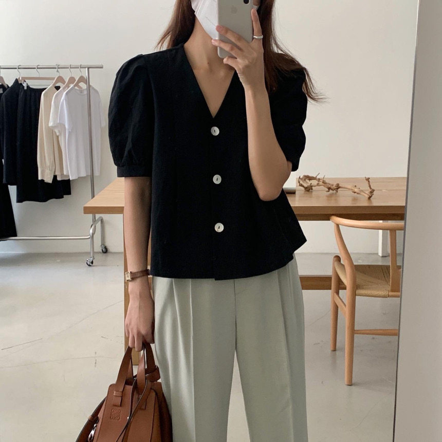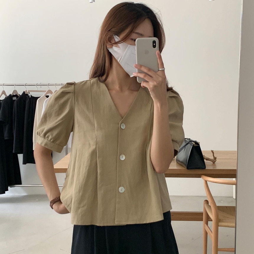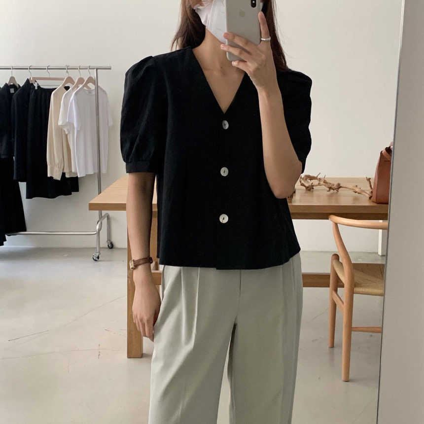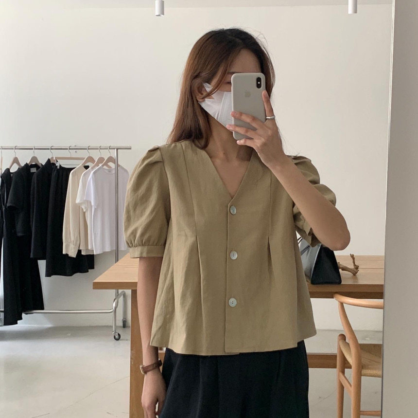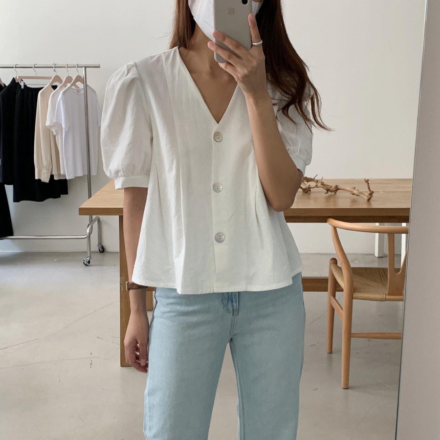 现货 韩国 褶皱开衫 小外套 上衣 泡泡袖 可爱 娃娃衫