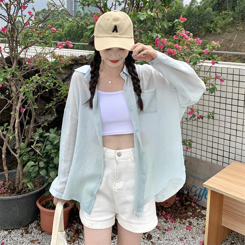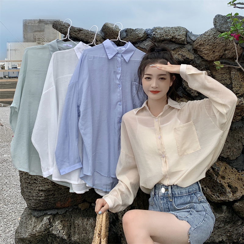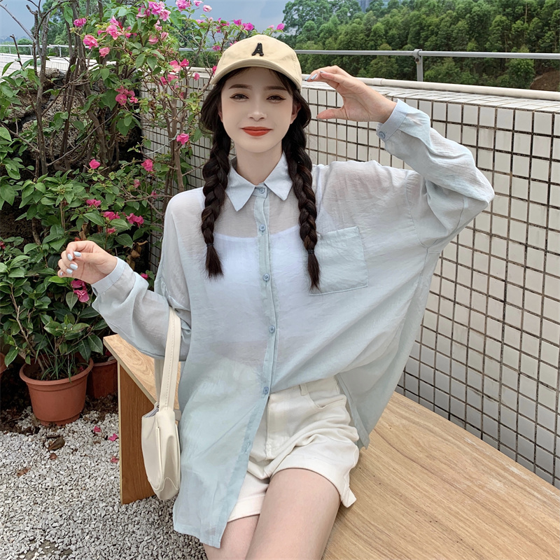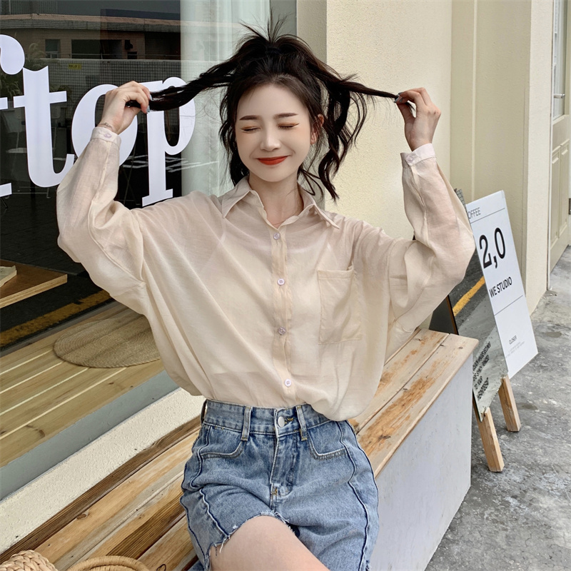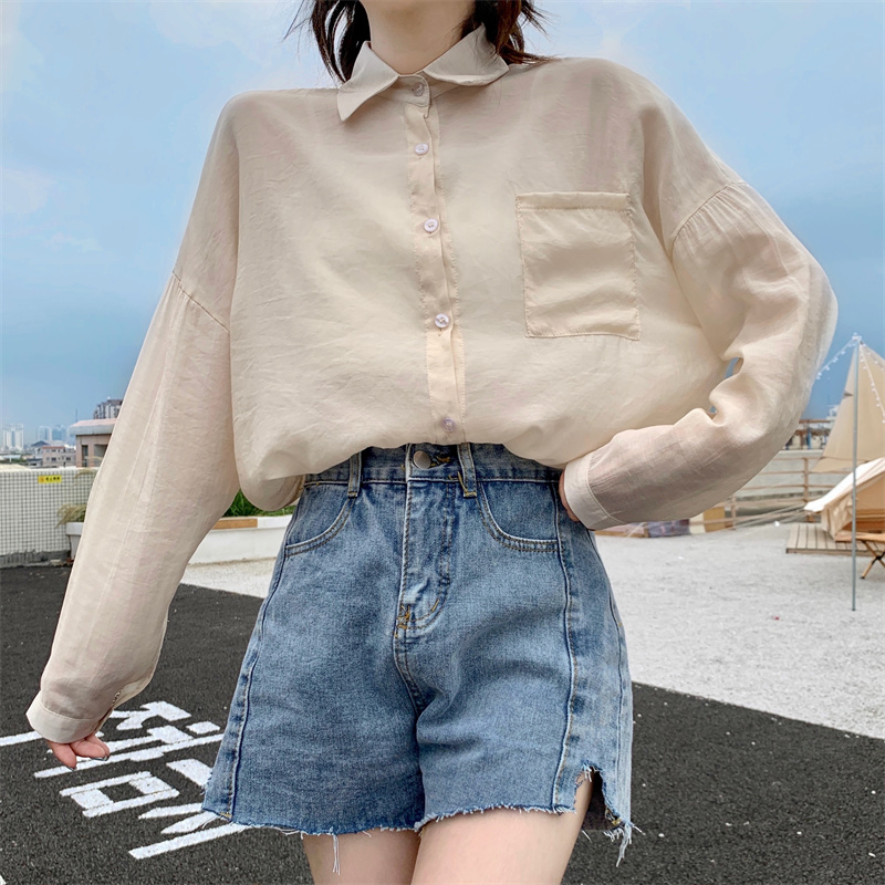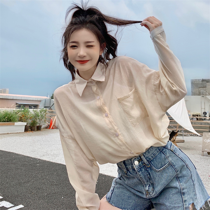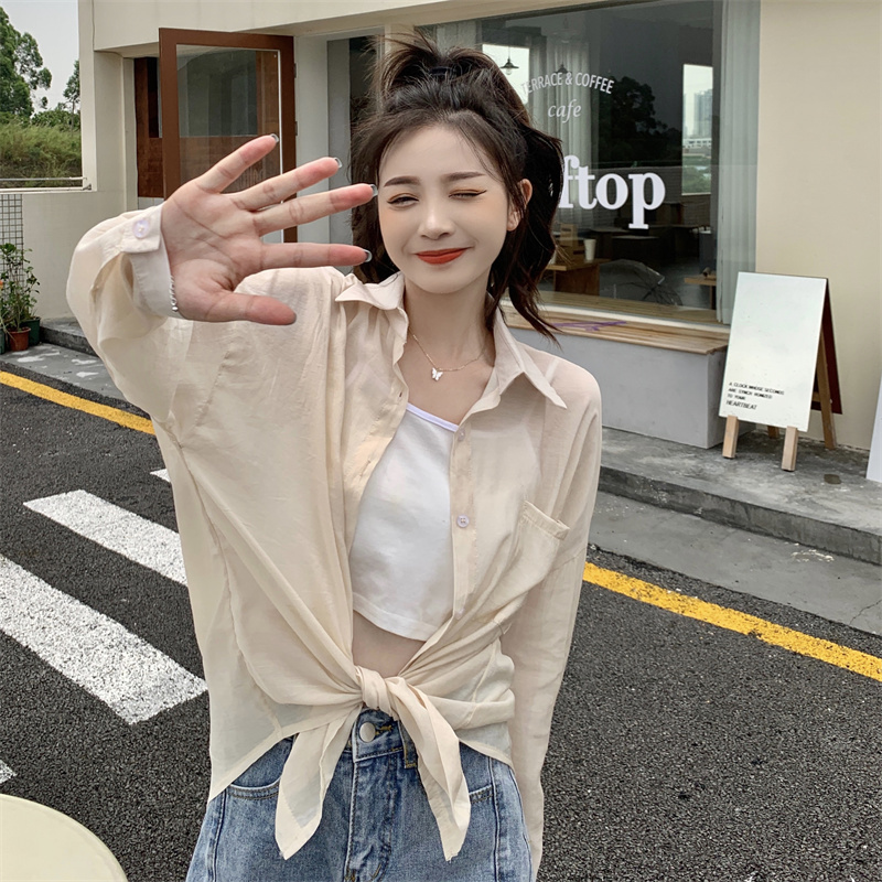 实拍实价 夏季宽松质感天丝棉防晒衬衫纯色开衫女
