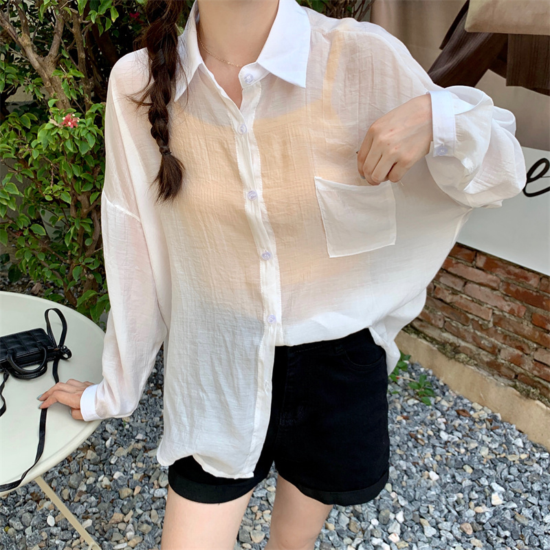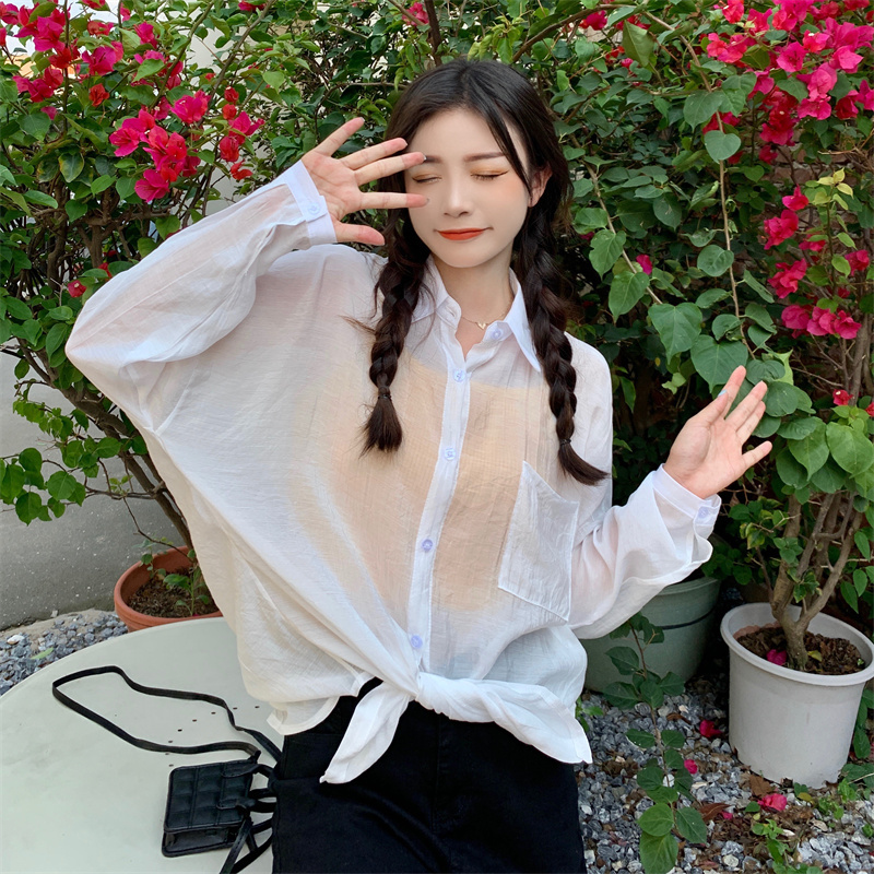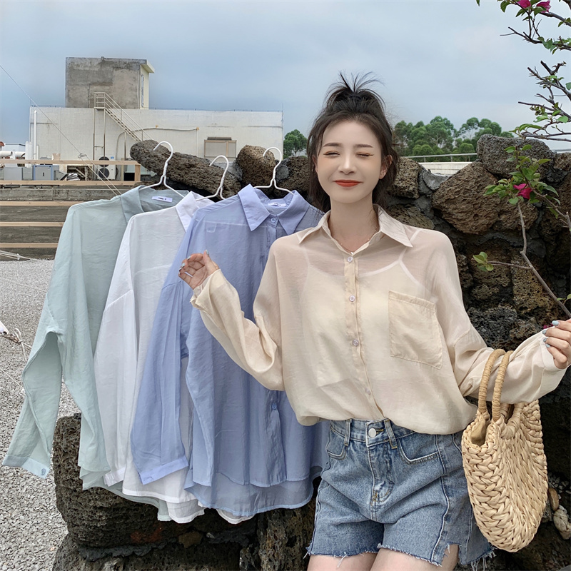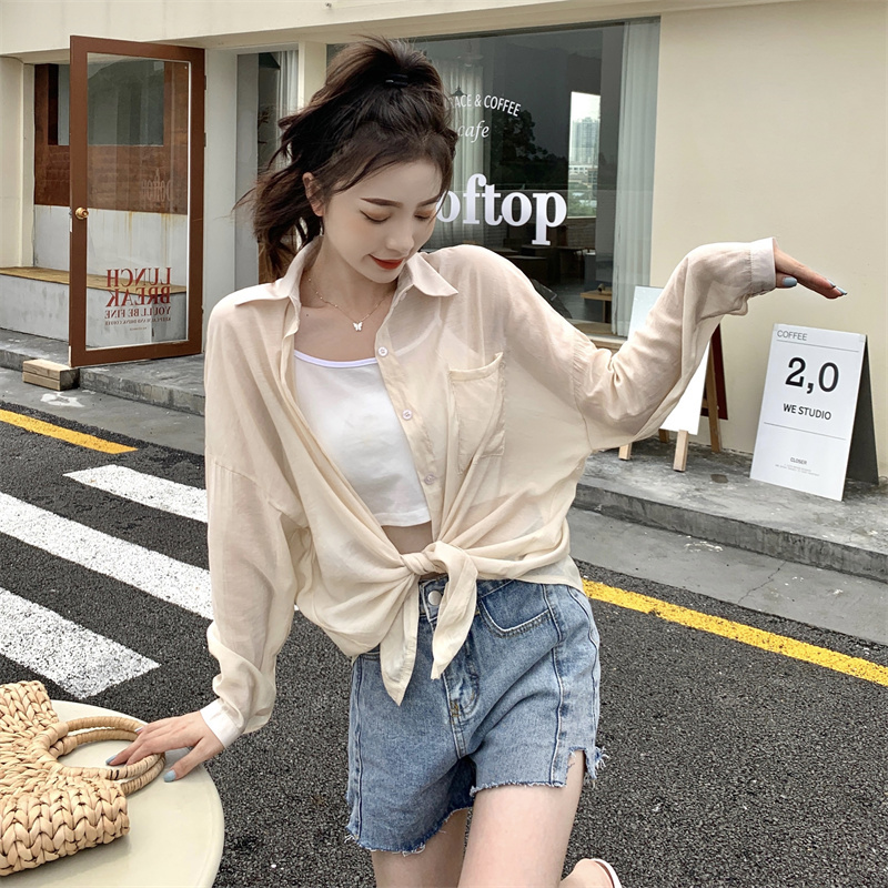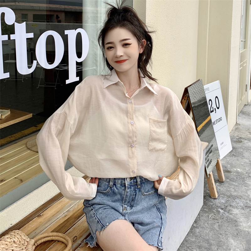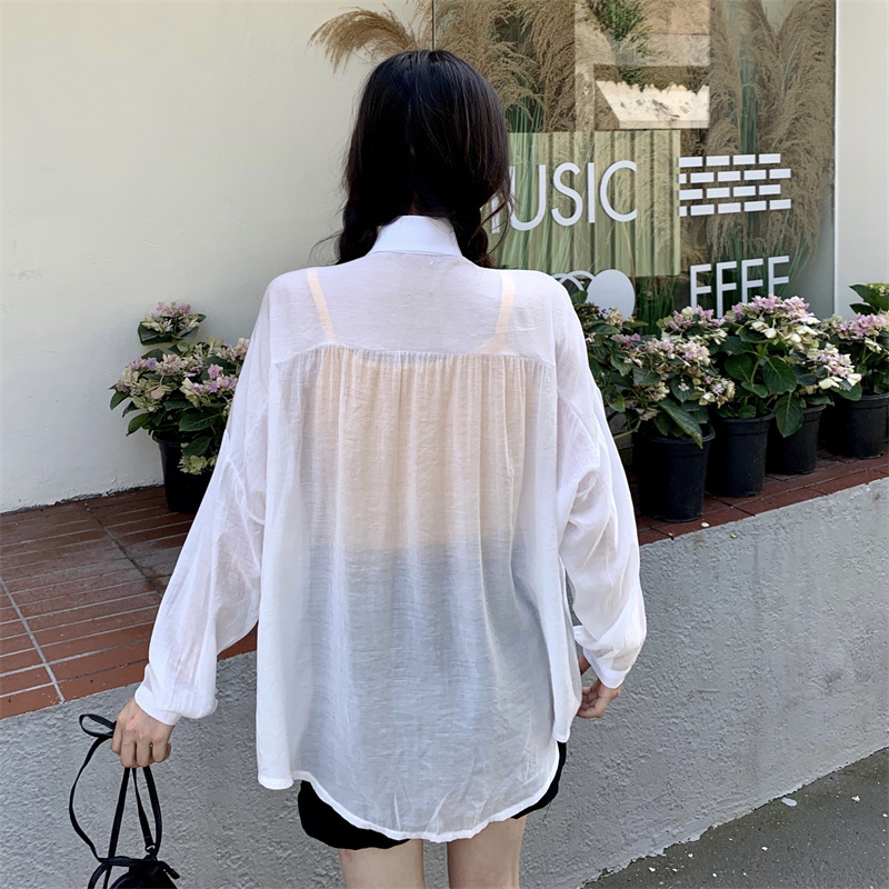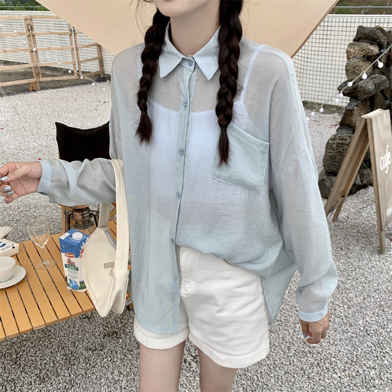 实拍实价 夏季宽松质感天丝棉防晒衬衫纯色开衫女