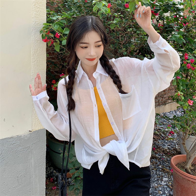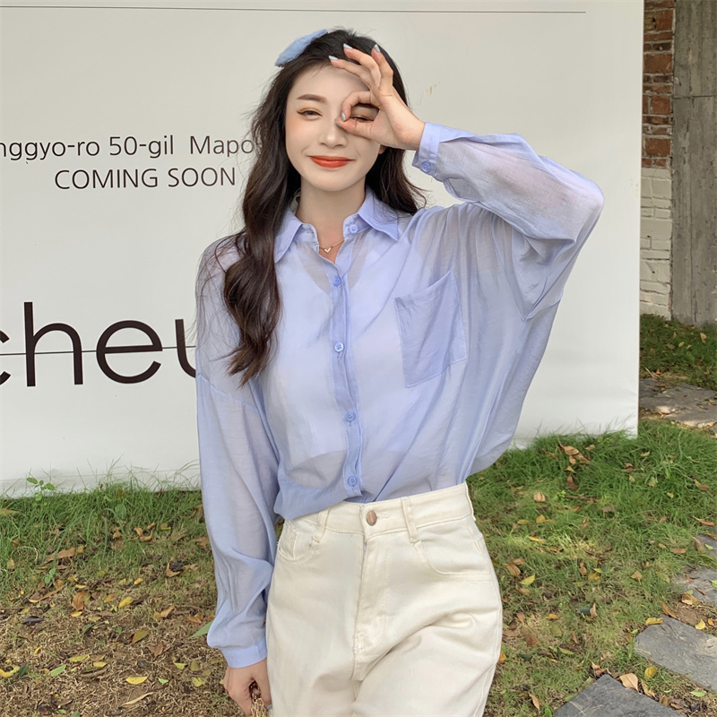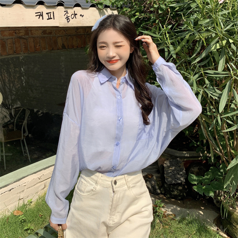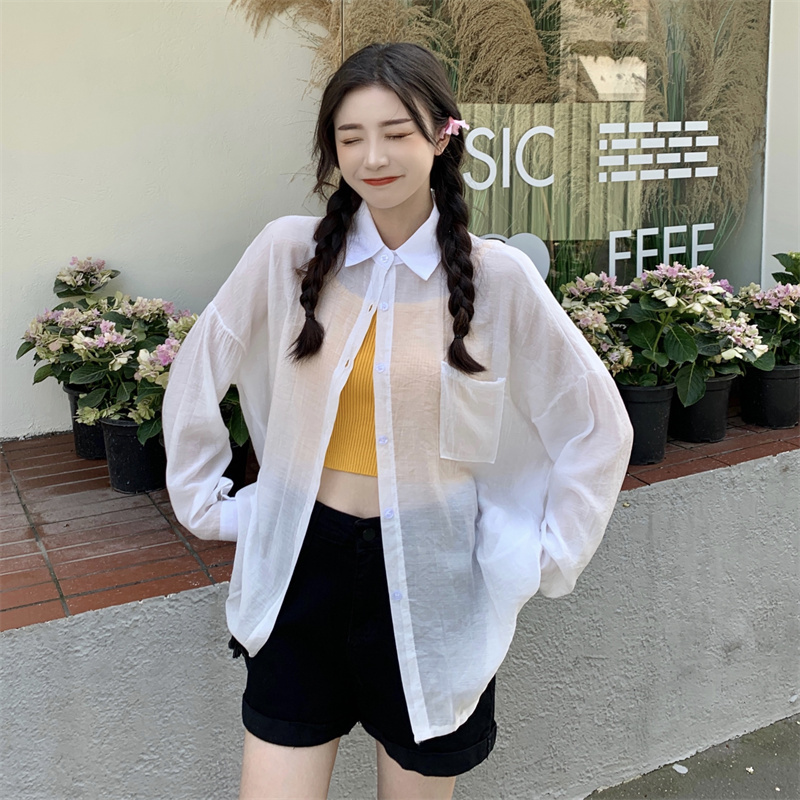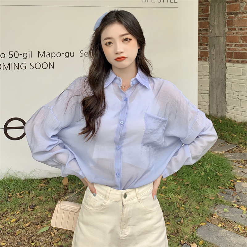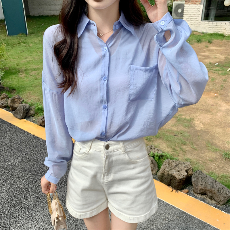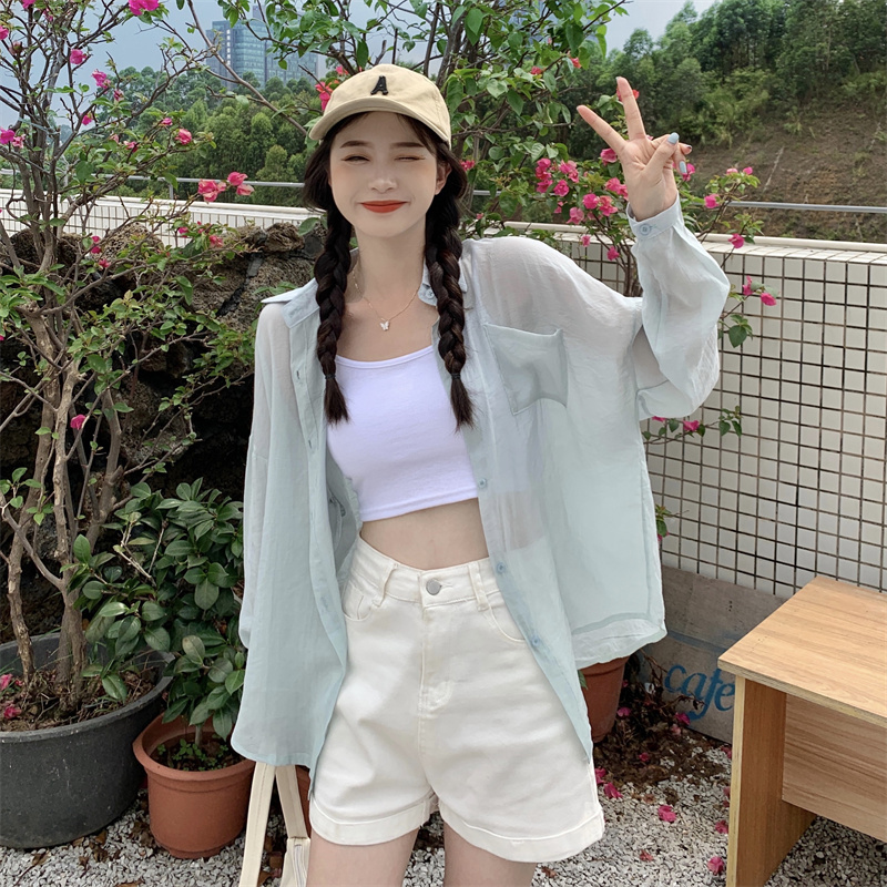 实拍实价 夏季宽松质感天丝棉防晒衬衫纯色开衫女