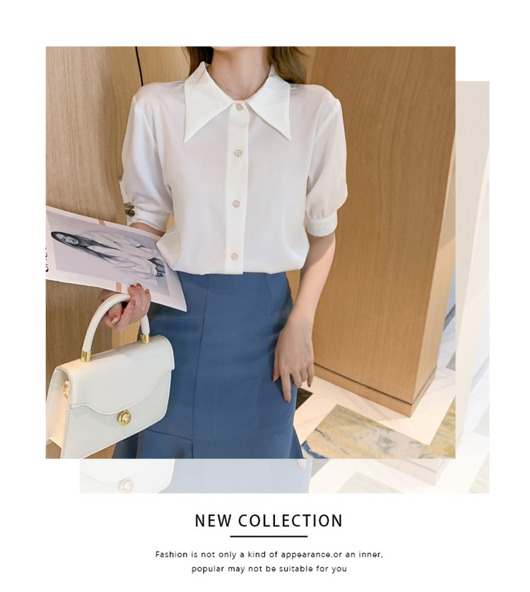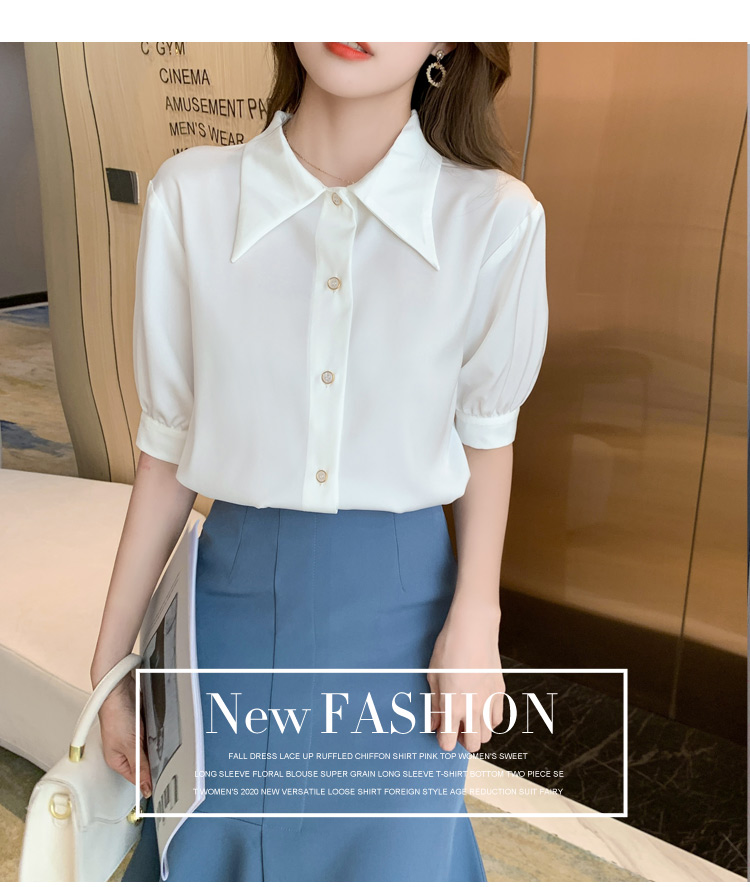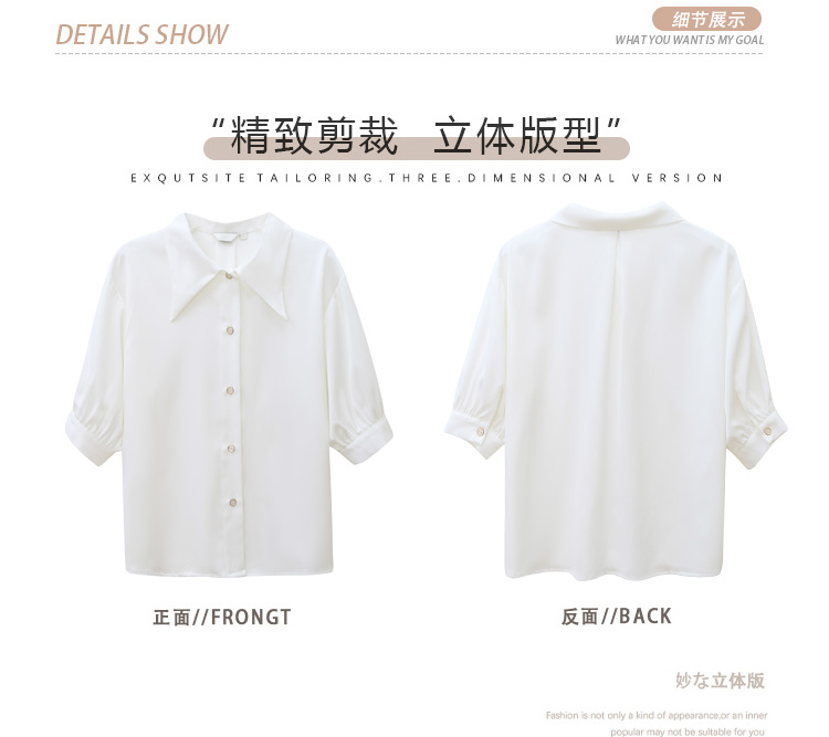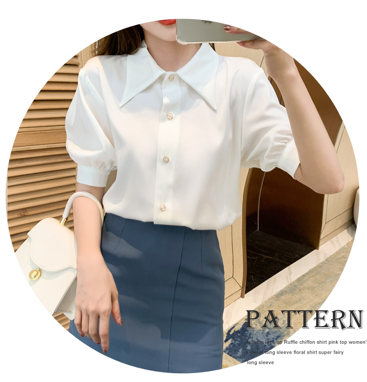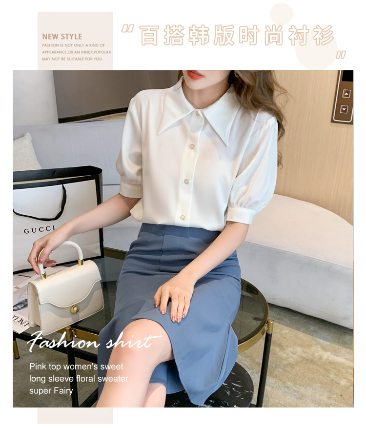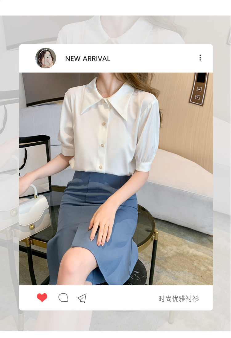 复古尖领中袖衬衫女2021夏新款设计感别致短款上衣洋气小衫