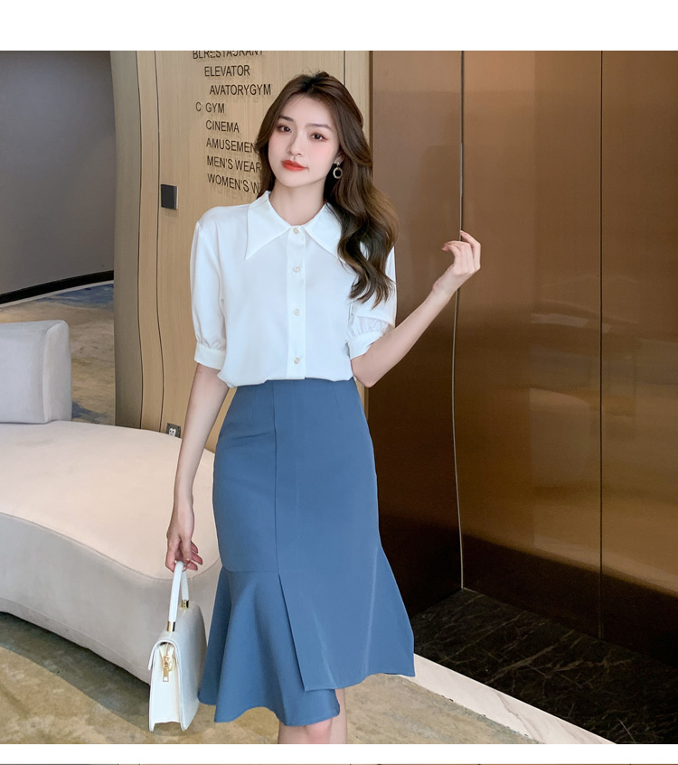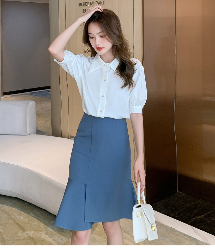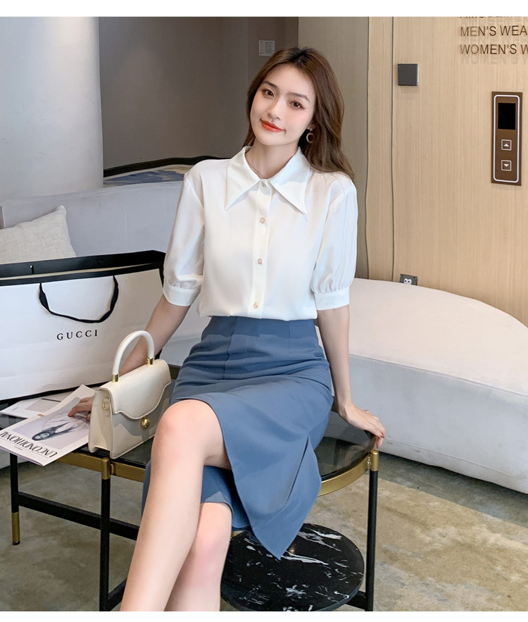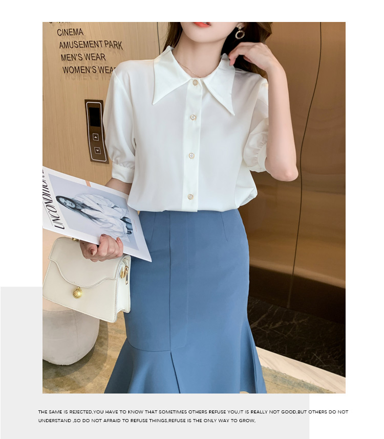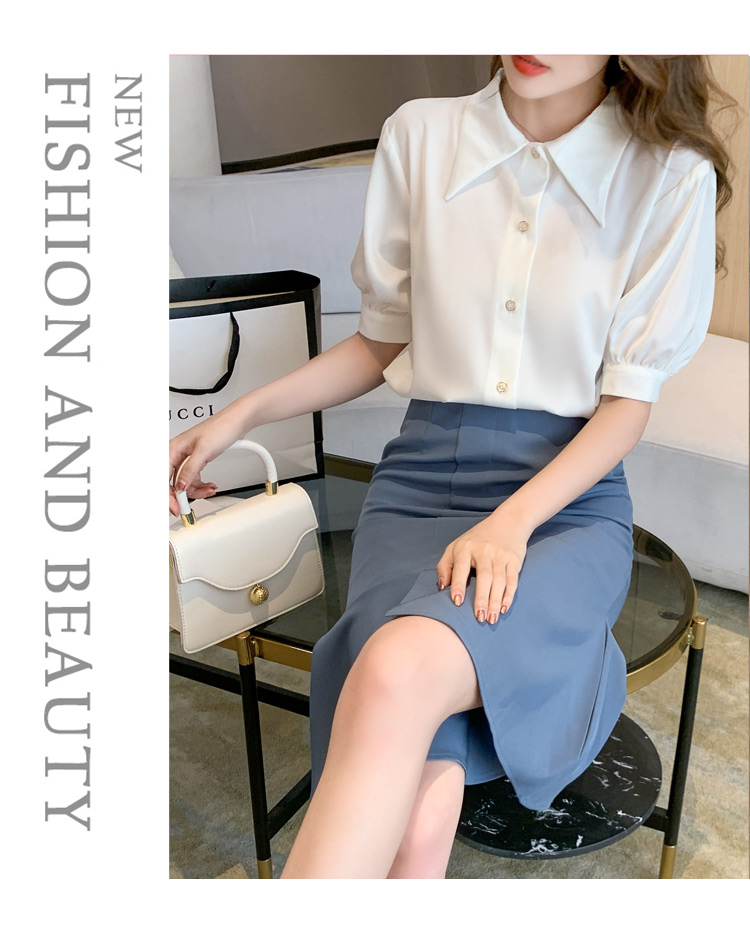 复古尖领中袖衬衫女2021夏新款设计感别致短款上衣洋气小衫