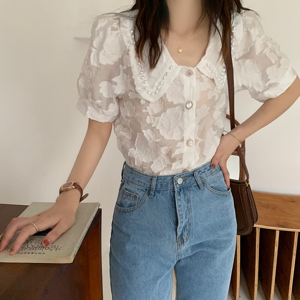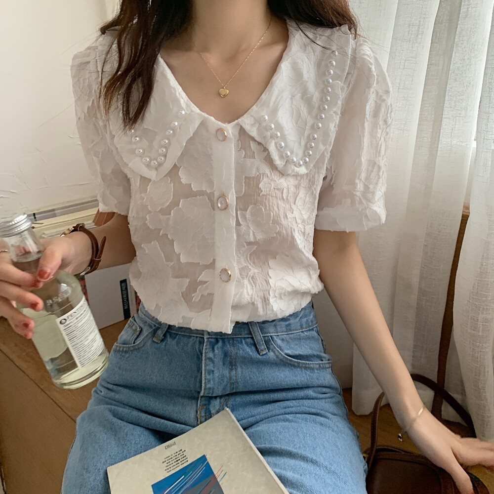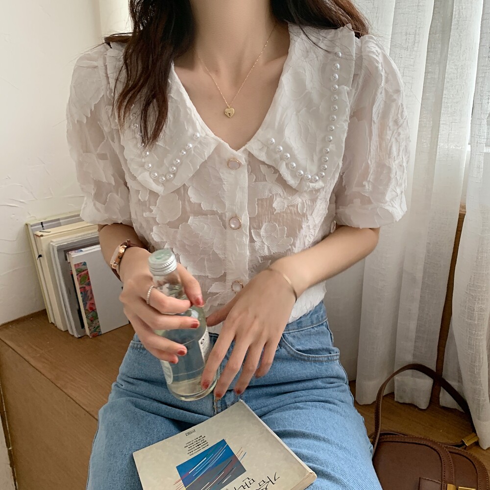 实拍实价~10572#chic韩风复古针织翻领蕾丝上衣衬衫衬衣女潮