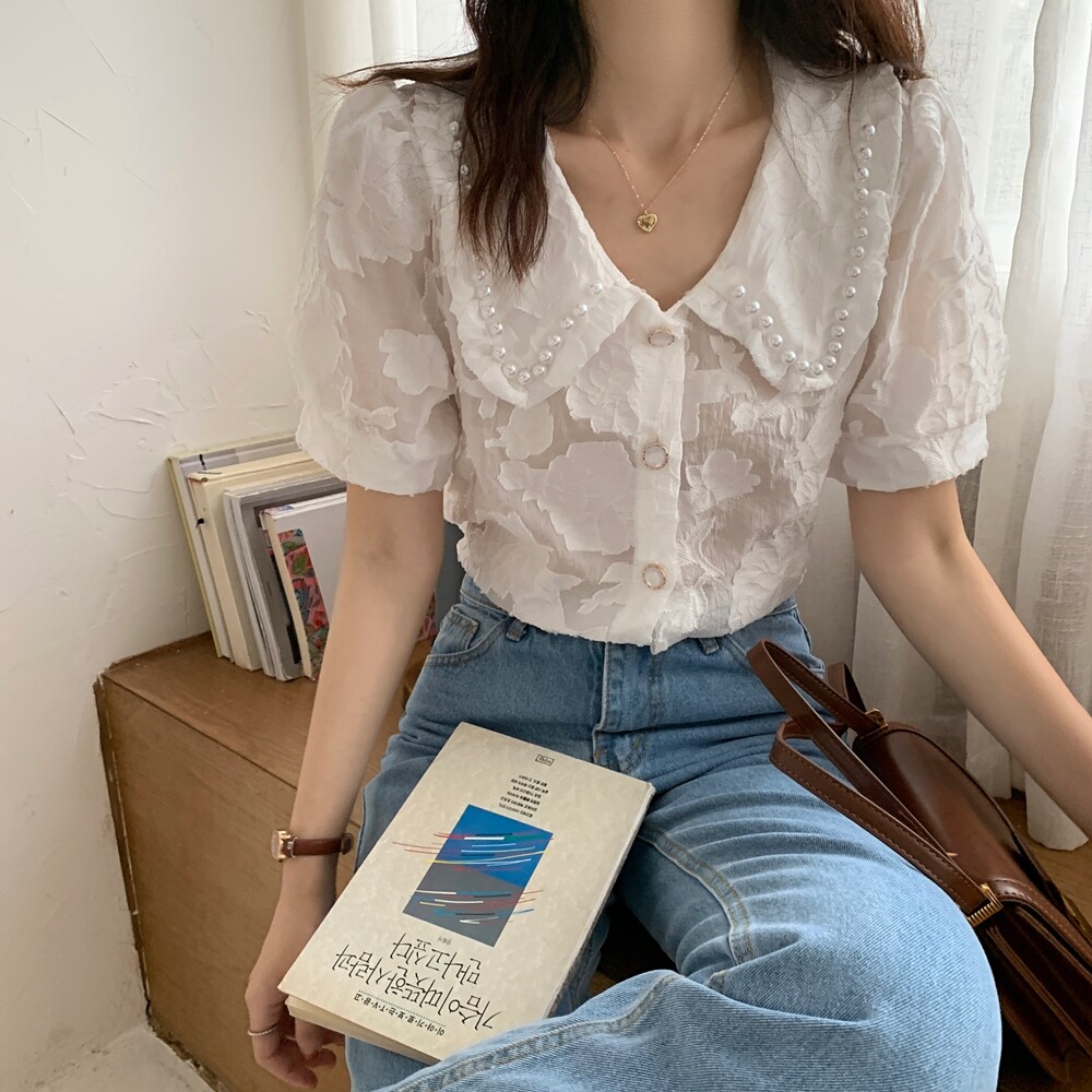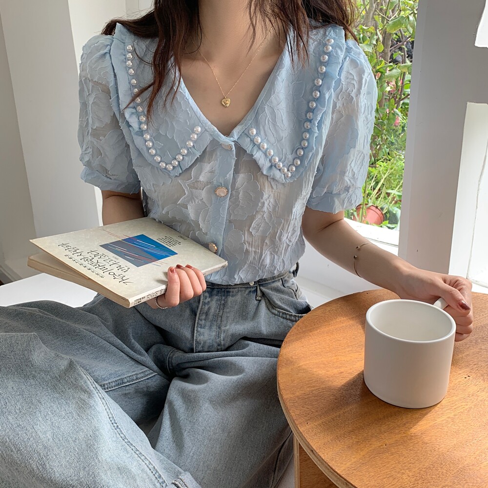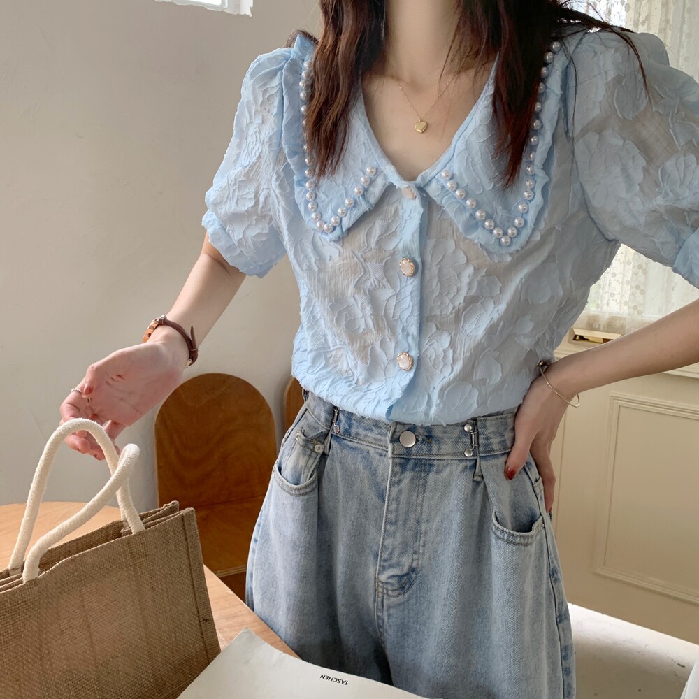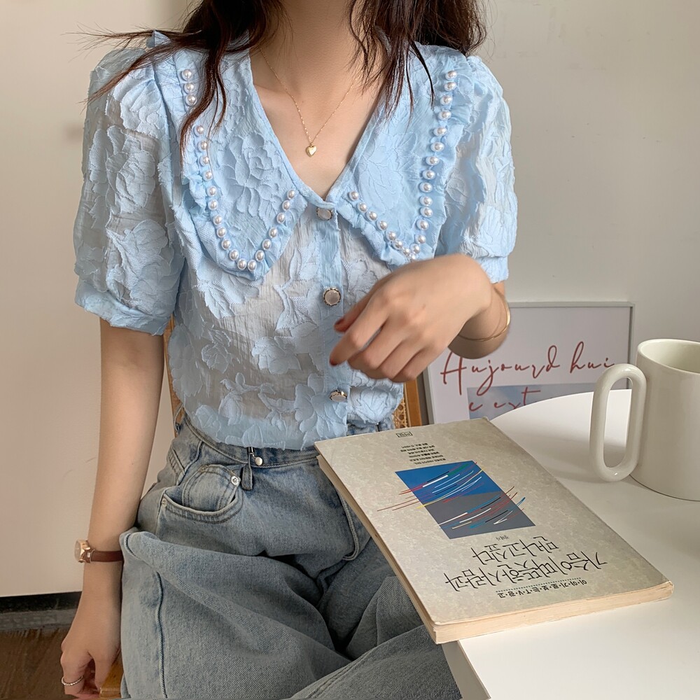 实拍实价~10572#chic韩风复古针织翻领蕾丝上衣衬衫衬衣女潮
