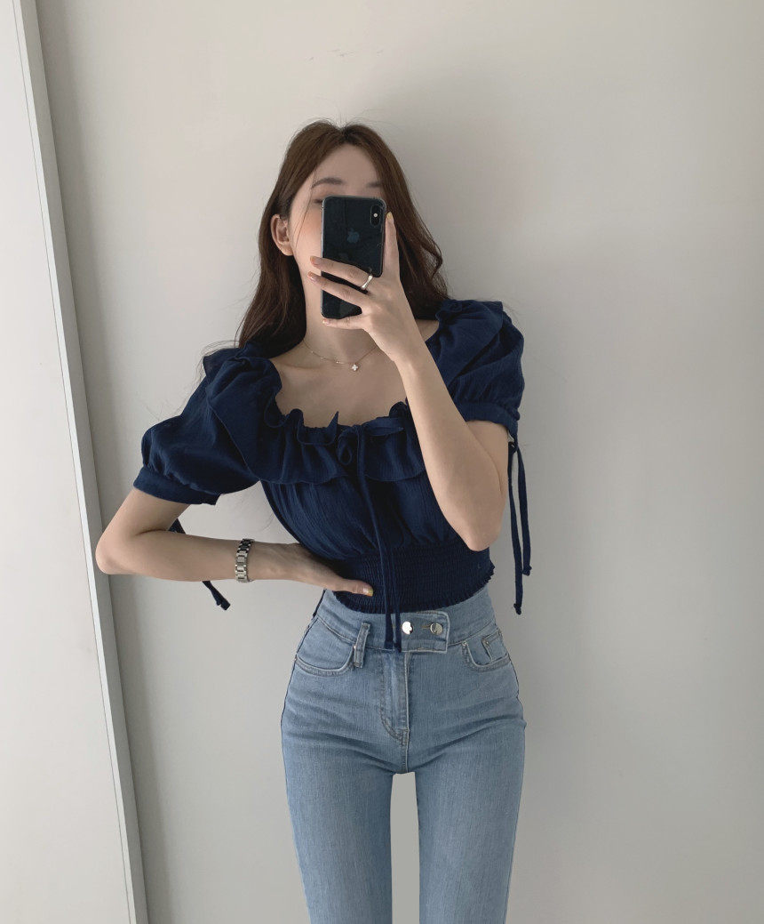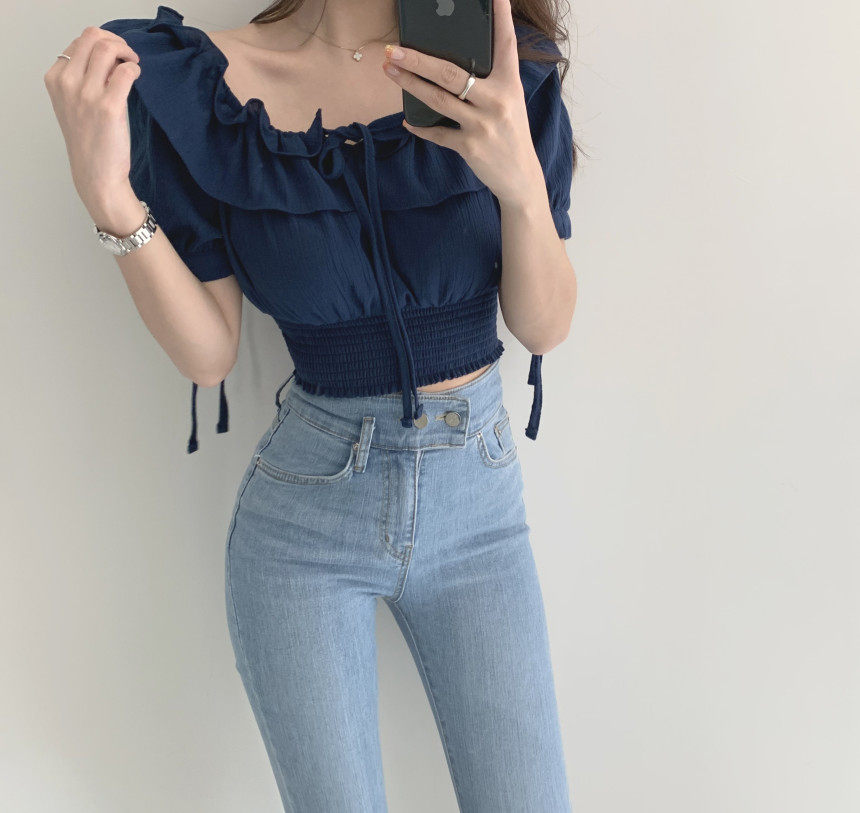 荷叶边甜美小众设计感收腰显瘦短款衬衫上衣