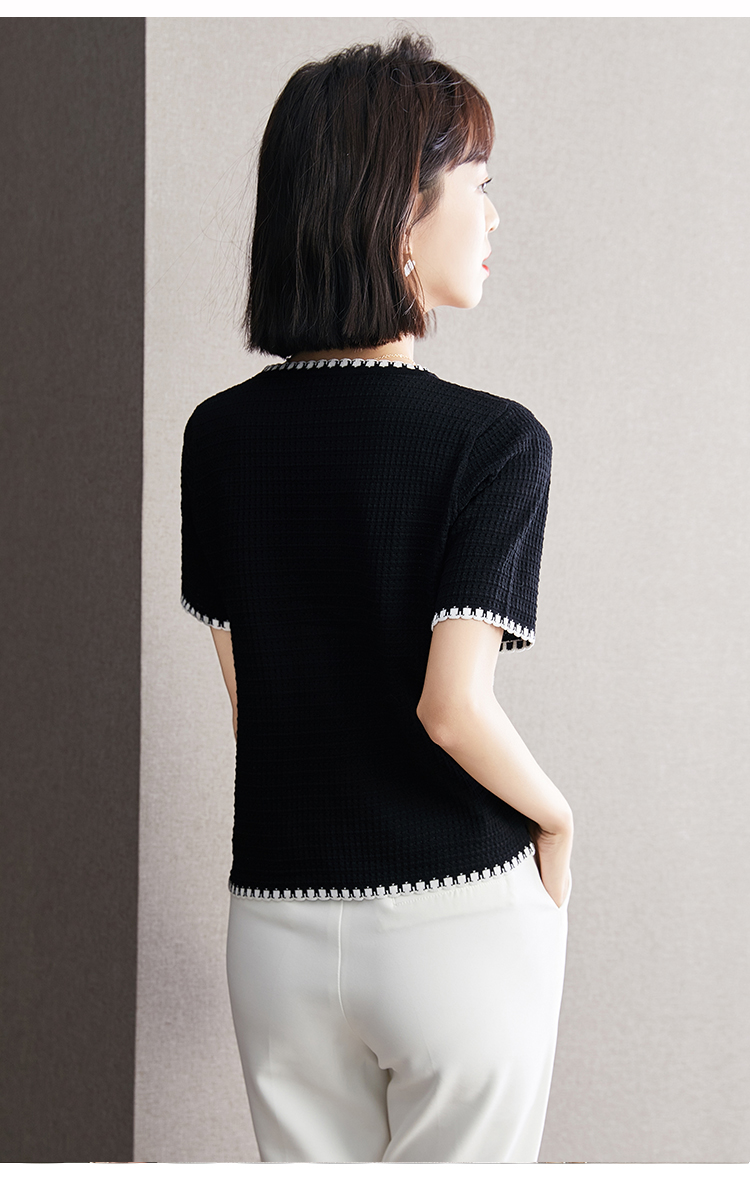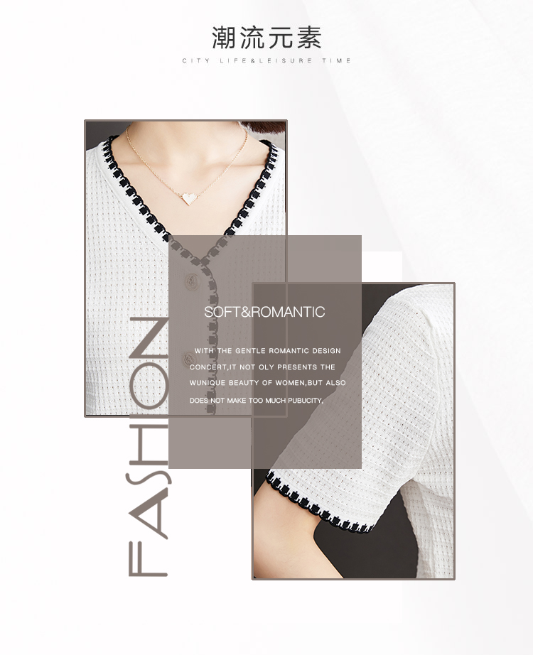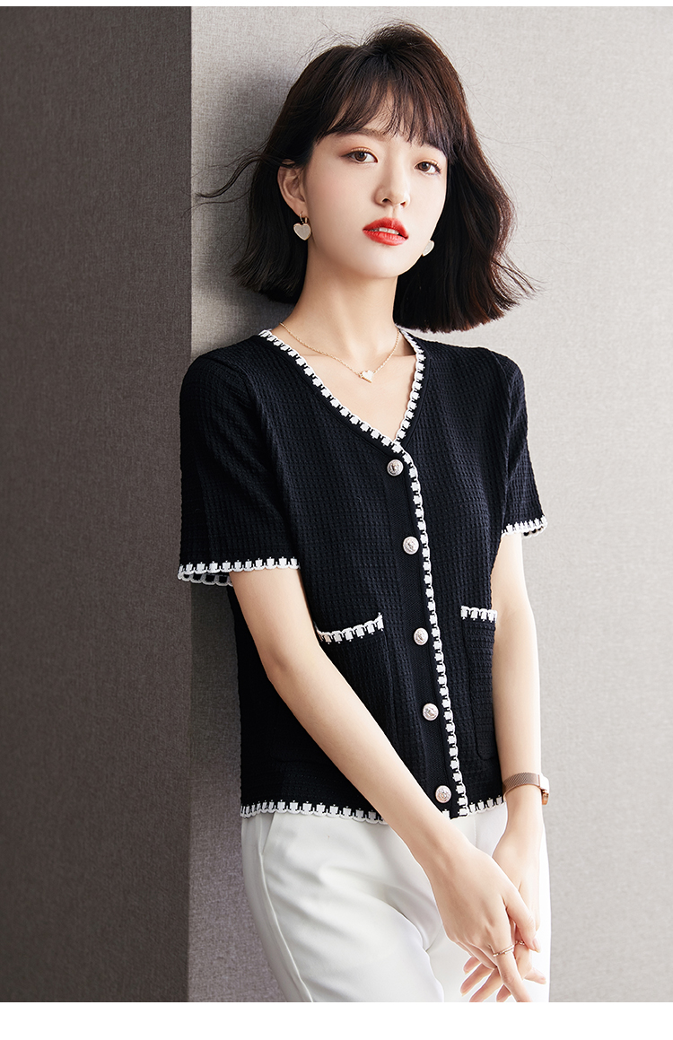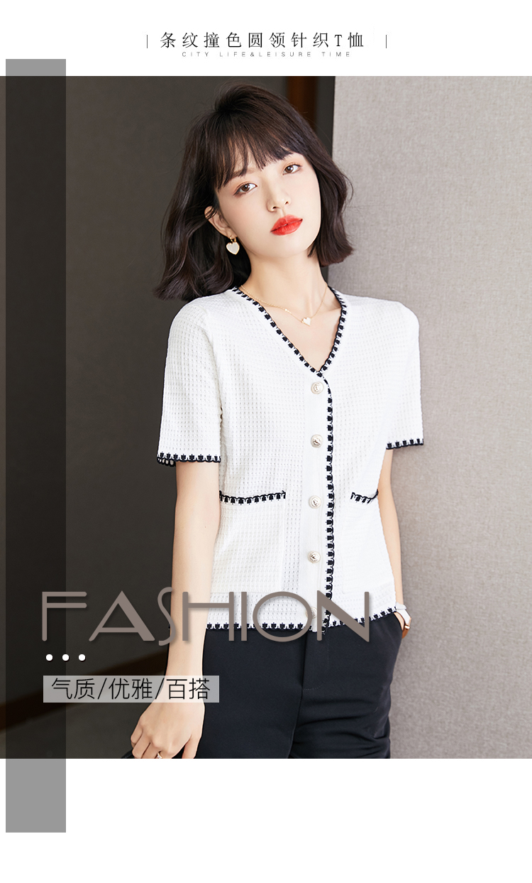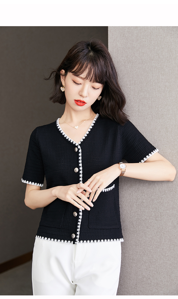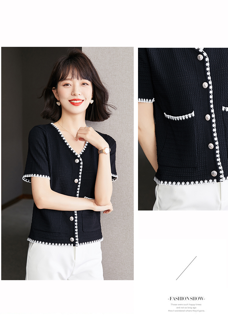 实拍#赫本小香风上衣白色t恤2021年新款开衫短款V领冰丝针织衫