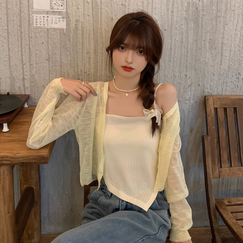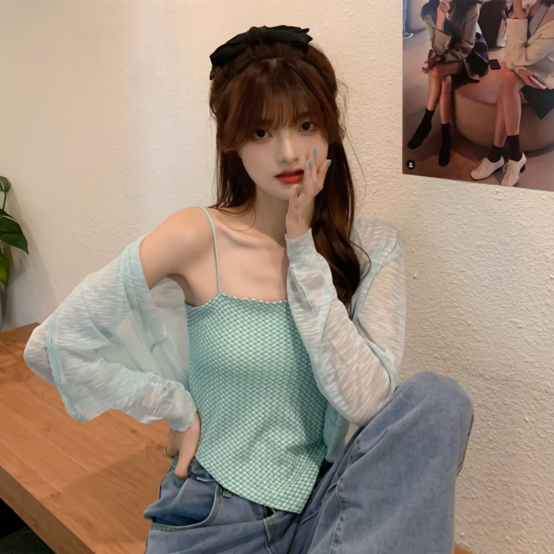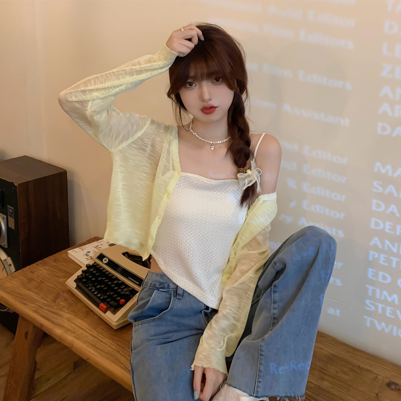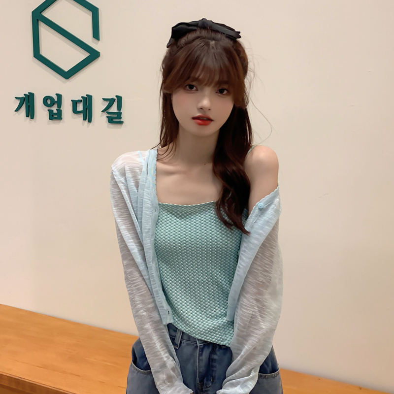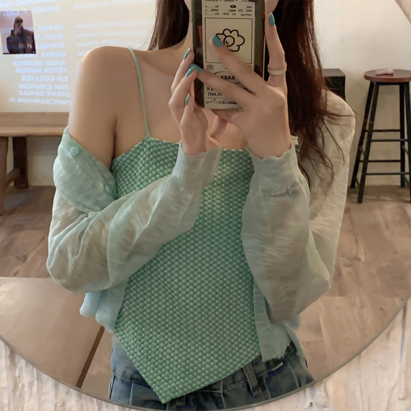 - 颜色:蓝色吊带 粉红色吊带 白色吊带 绿色吊带 浅蓝色开衫 白色开衫 绿色开衫 黄色开衫