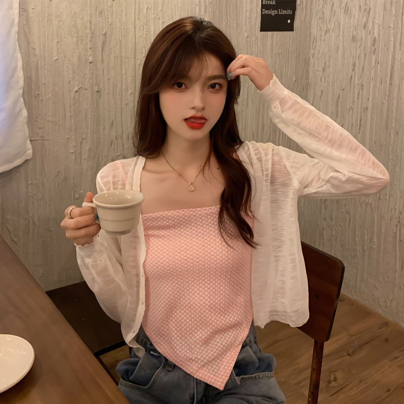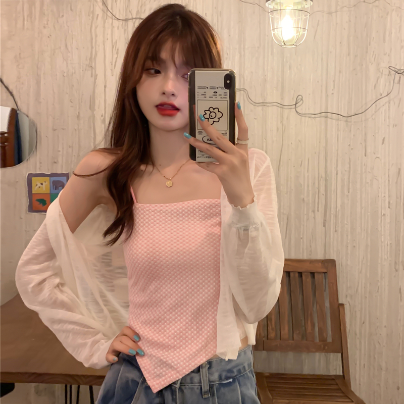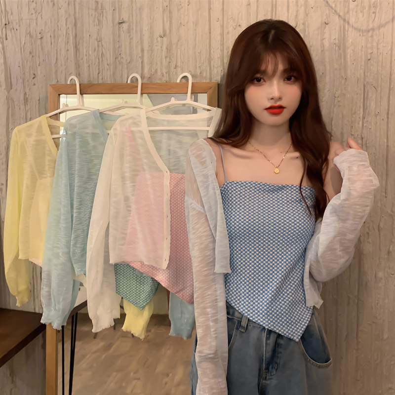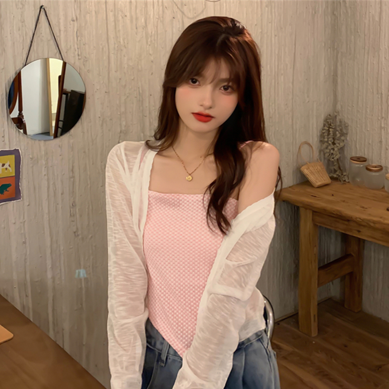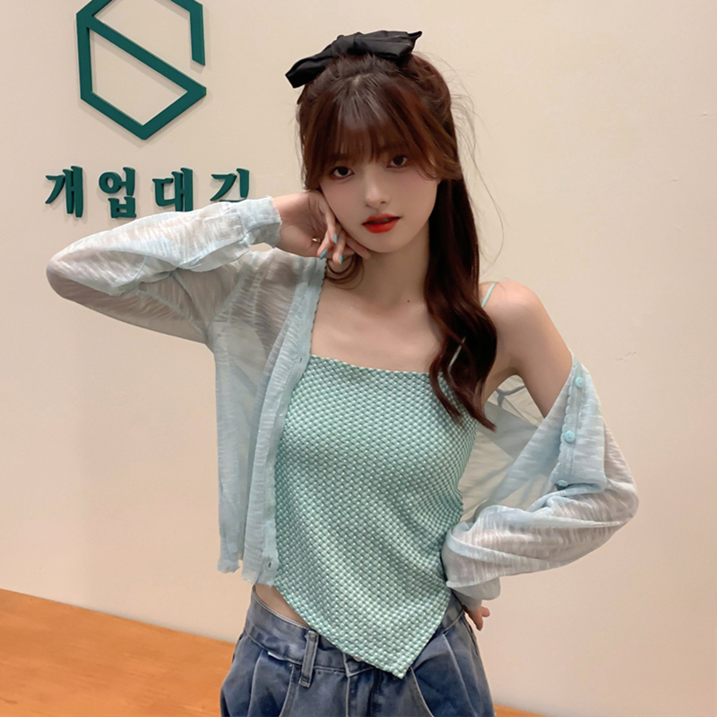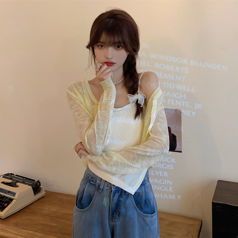 - 颜色:蓝色吊带 粉红色吊带 白色吊带 绿色吊带 浅蓝色开衫 白色开衫 绿色开衫 黄色开衫