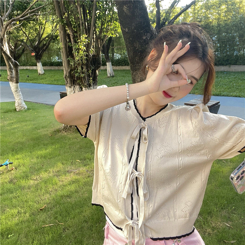 实拍实价气质淑女镂空麻花透气针织开衫短袖
