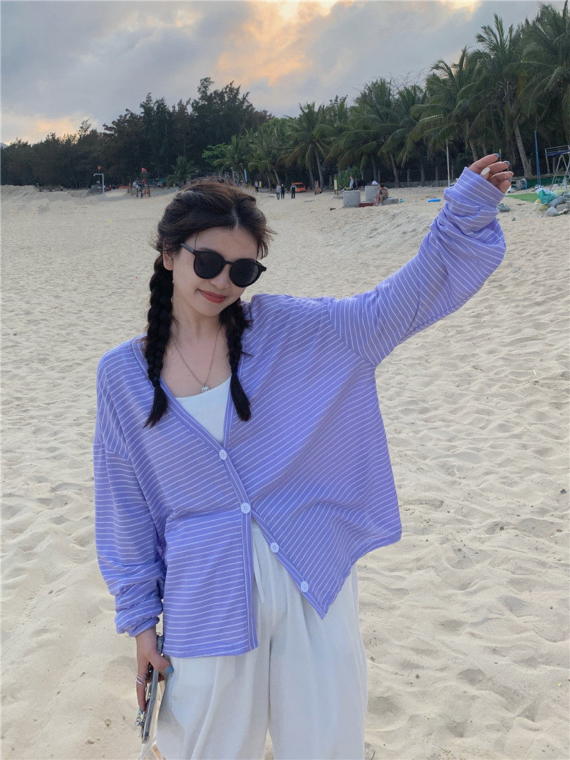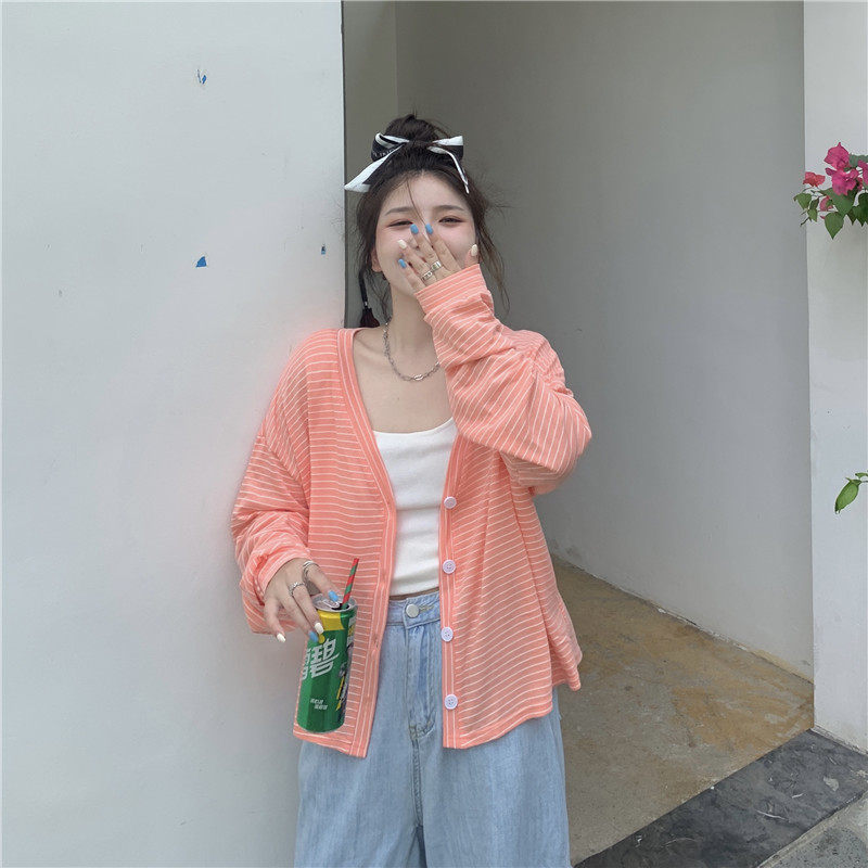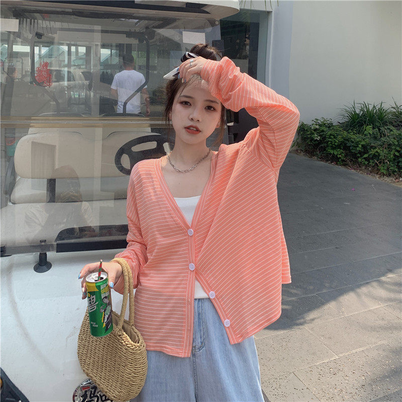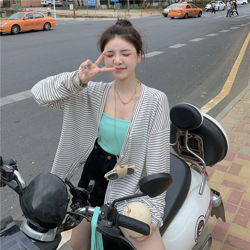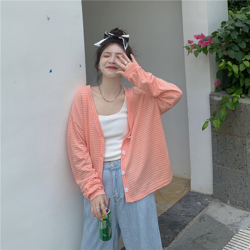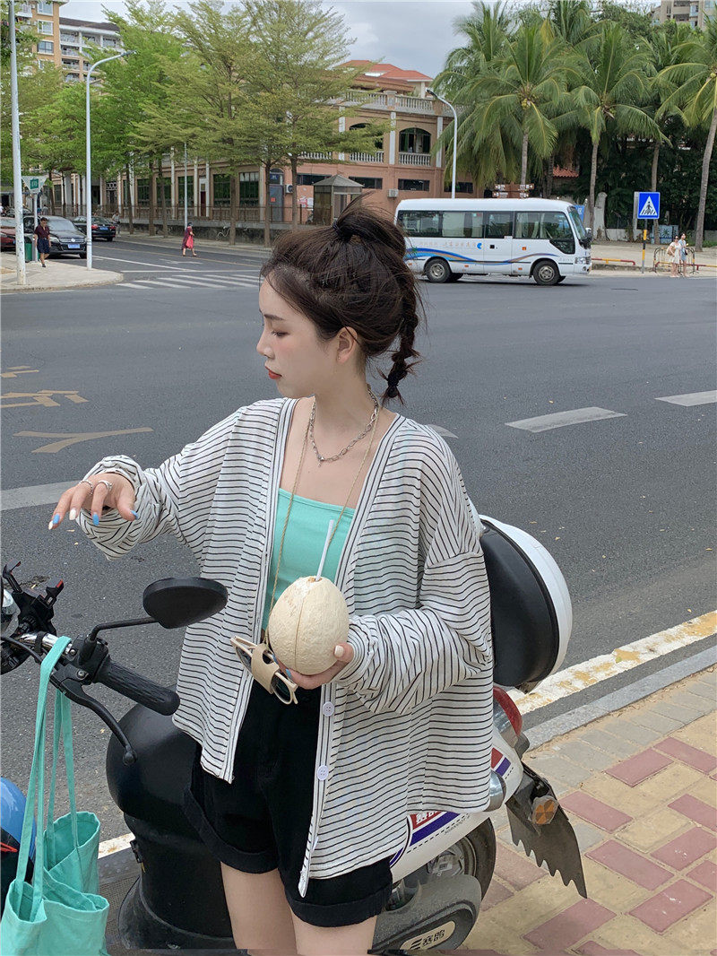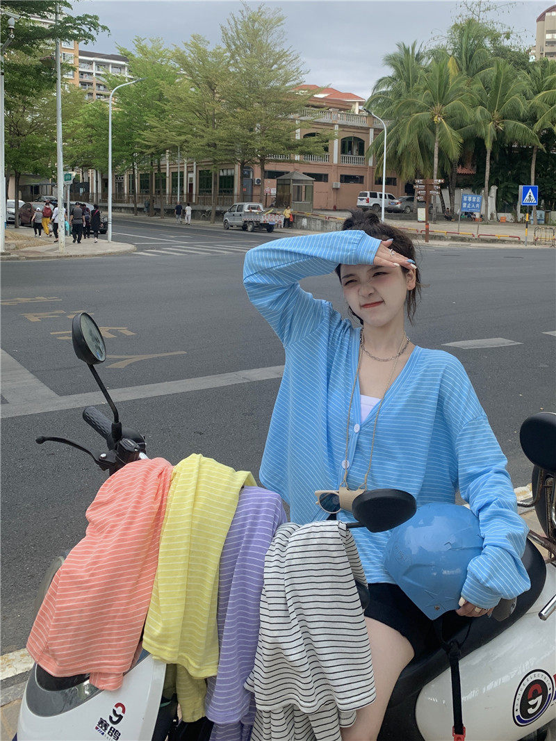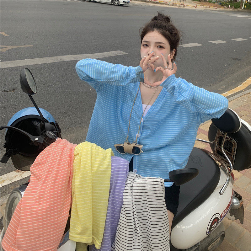 实拍实价 韩版宽松百搭夏季条纹多色开衫防晒衣