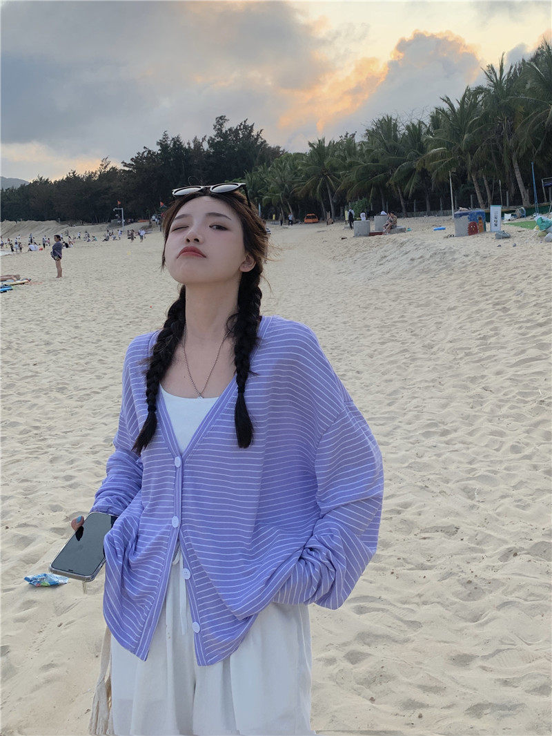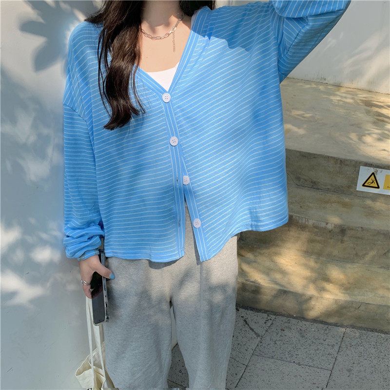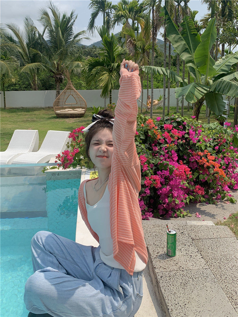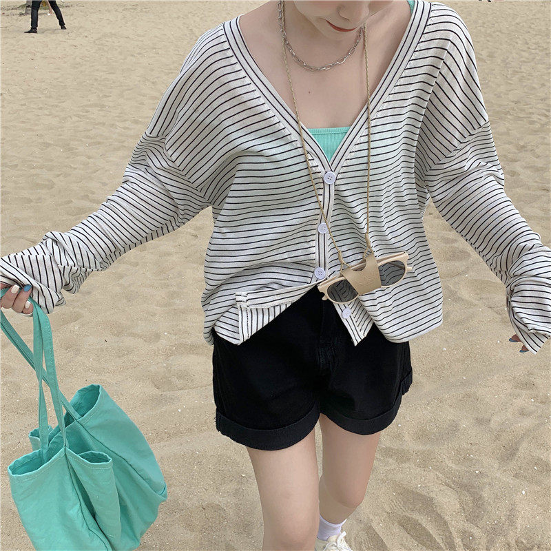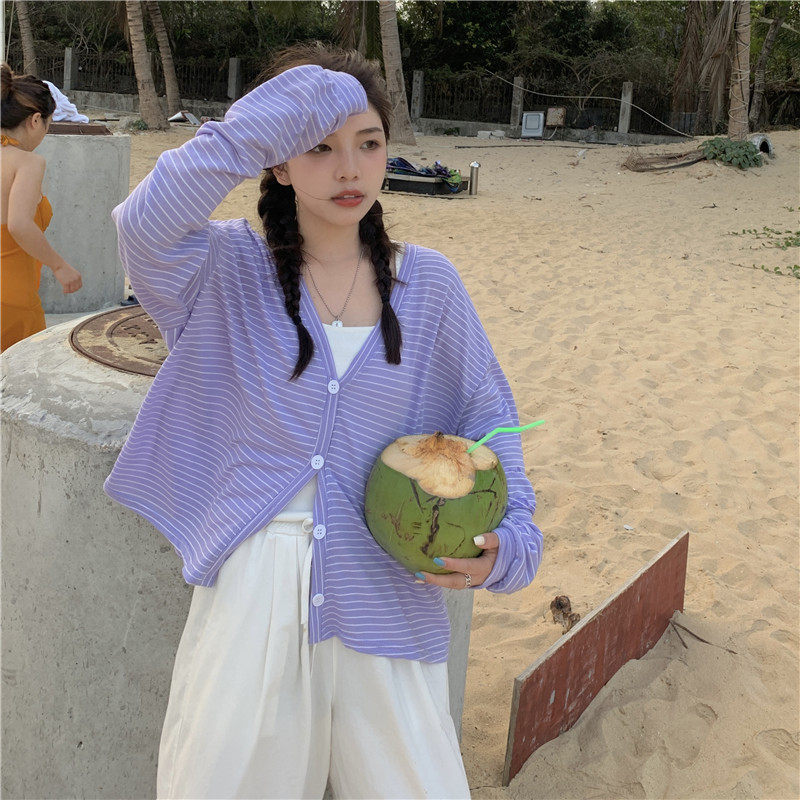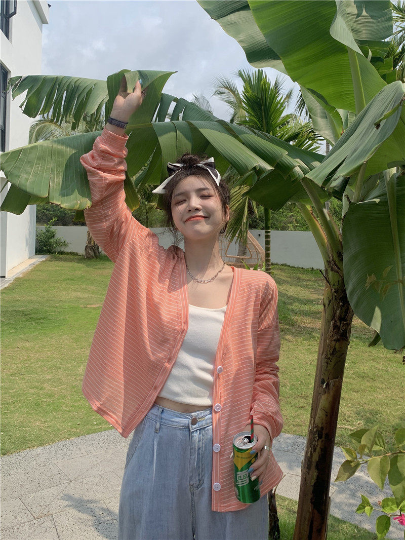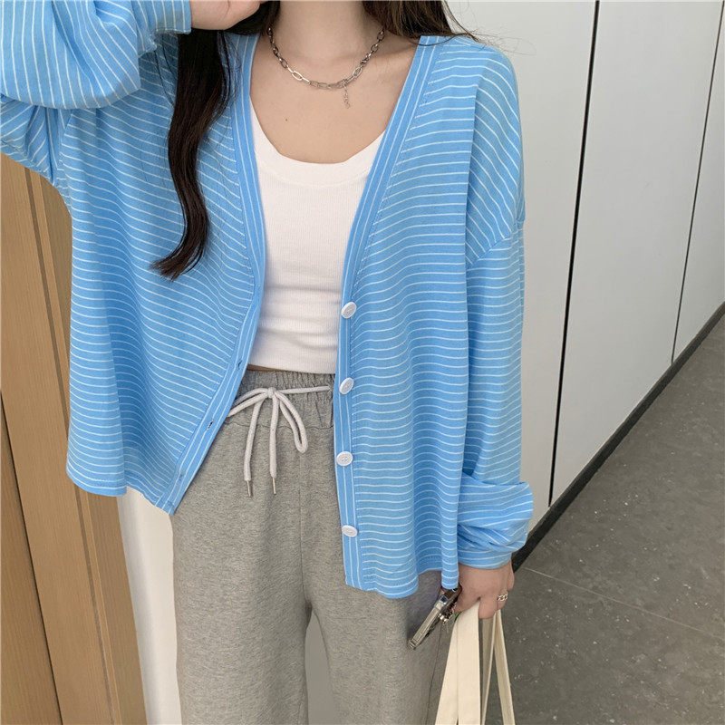 实拍实价 韩版宽松百搭夏季条纹多色开衫防晒衣