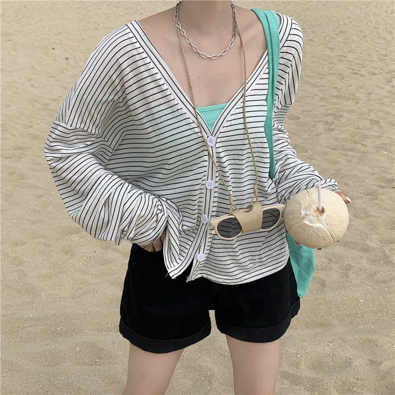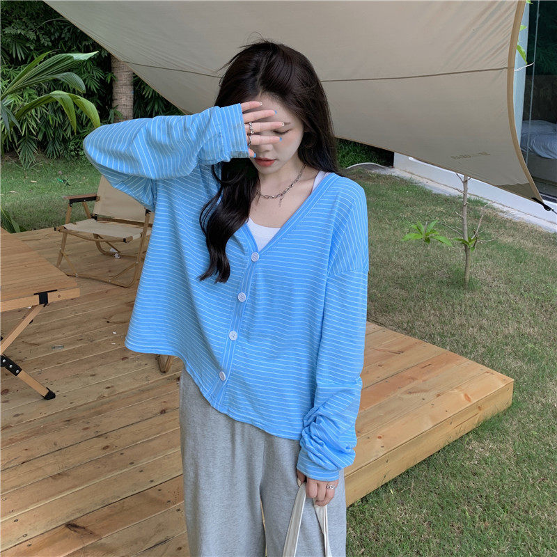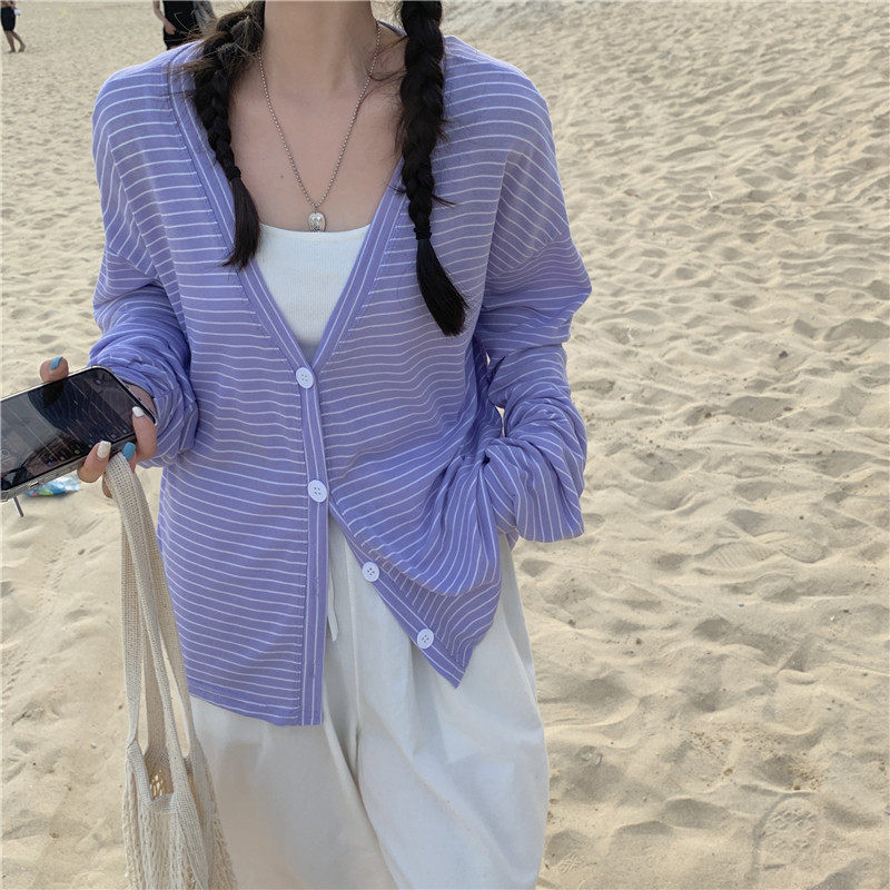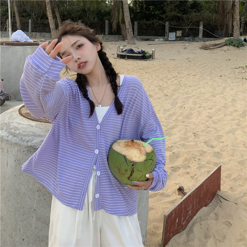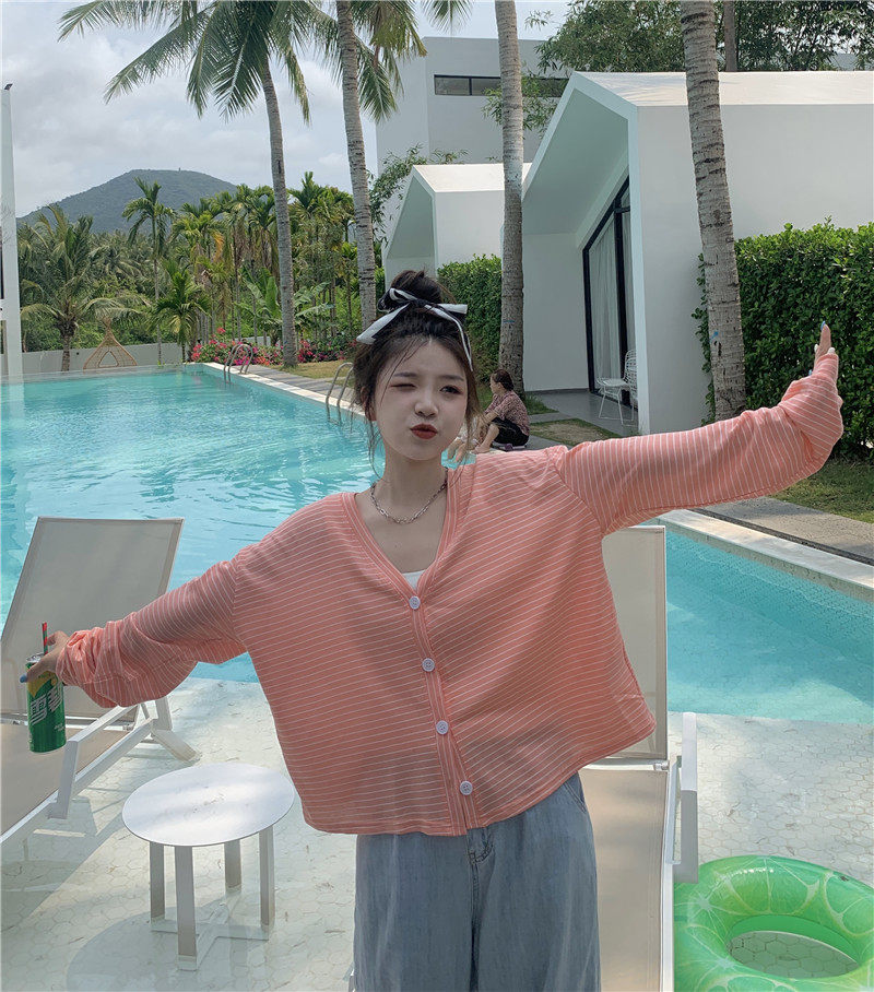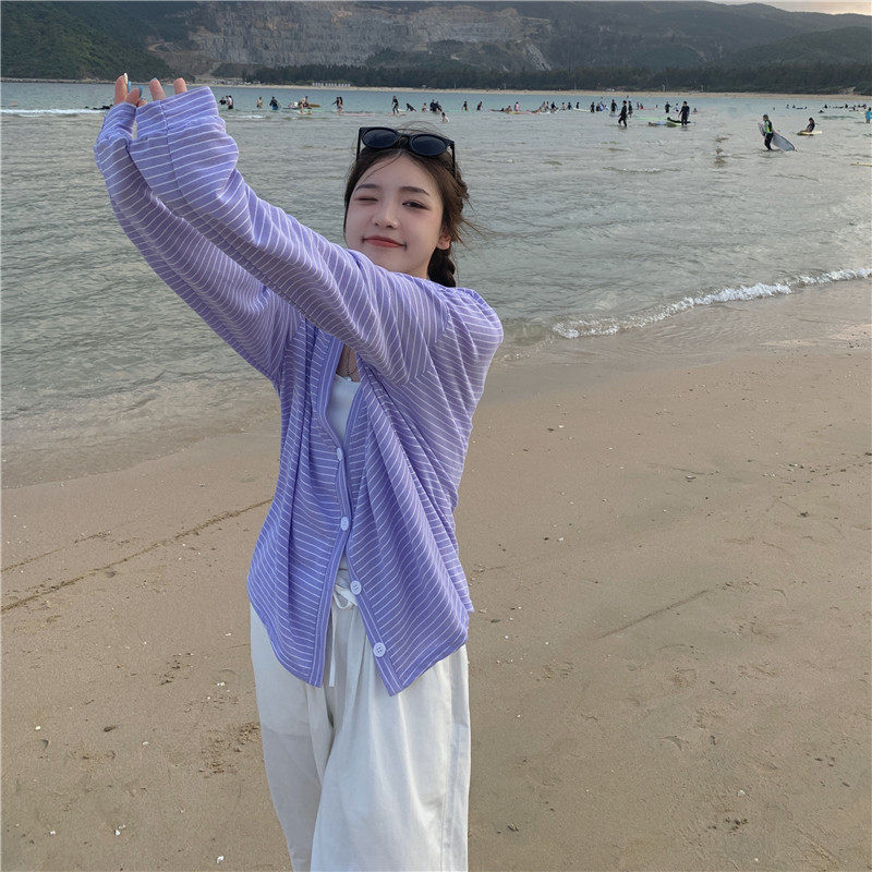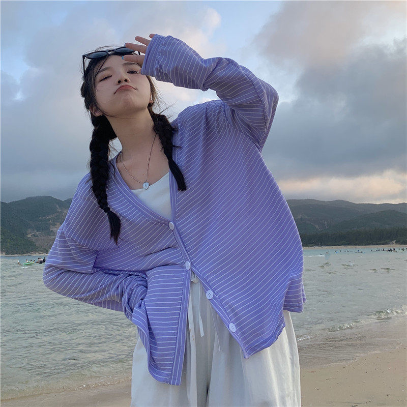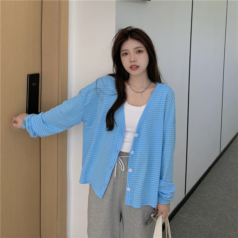实拍实价 韩版宽松百搭夏季条纹多色开衫防晒衣