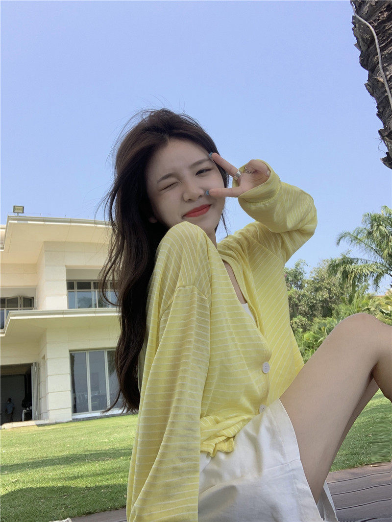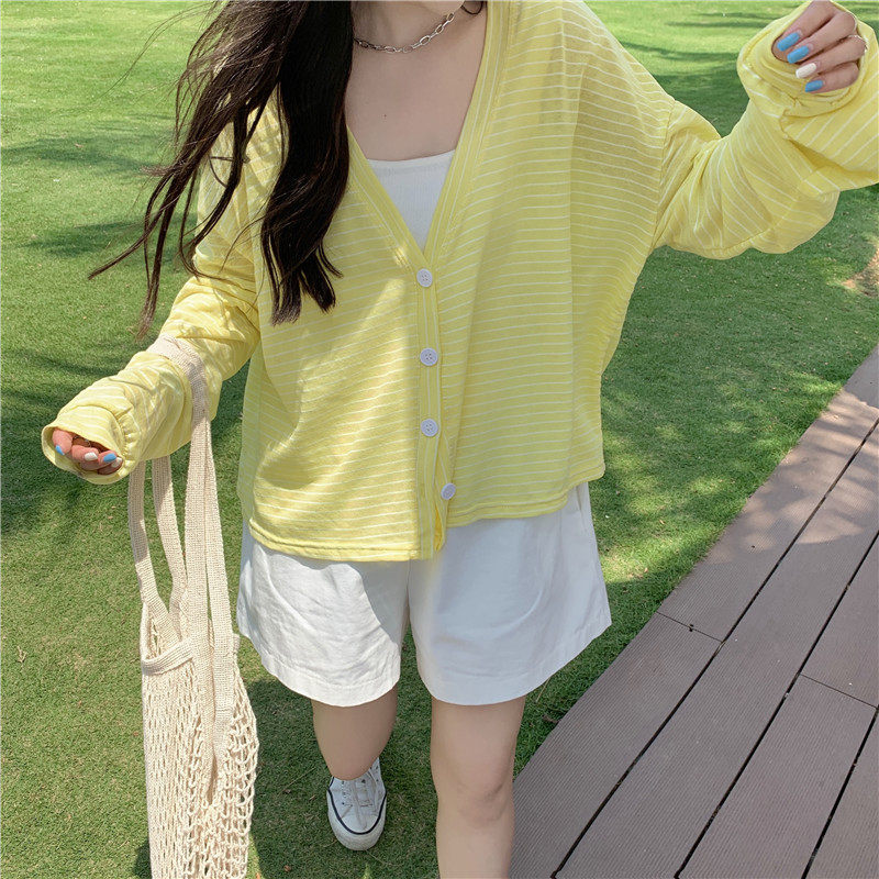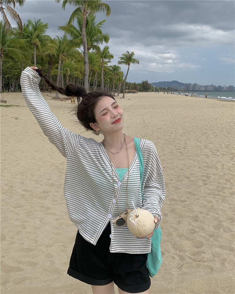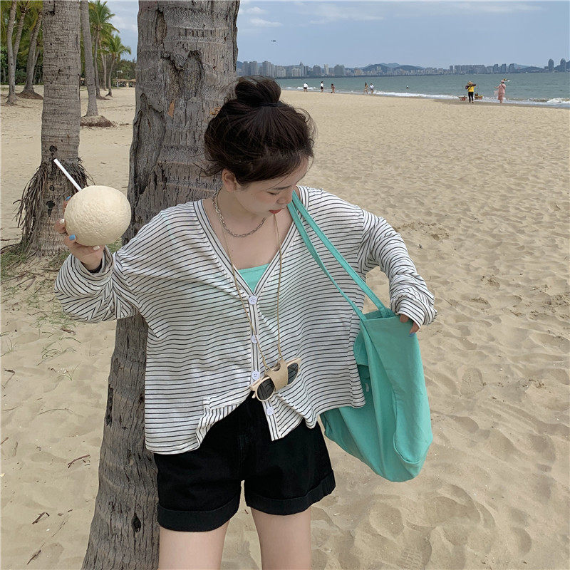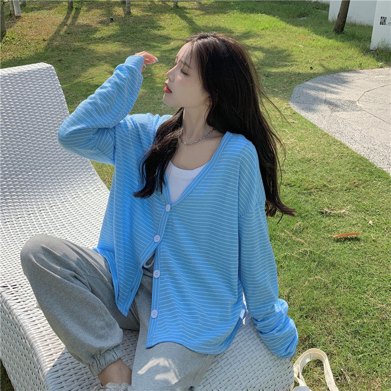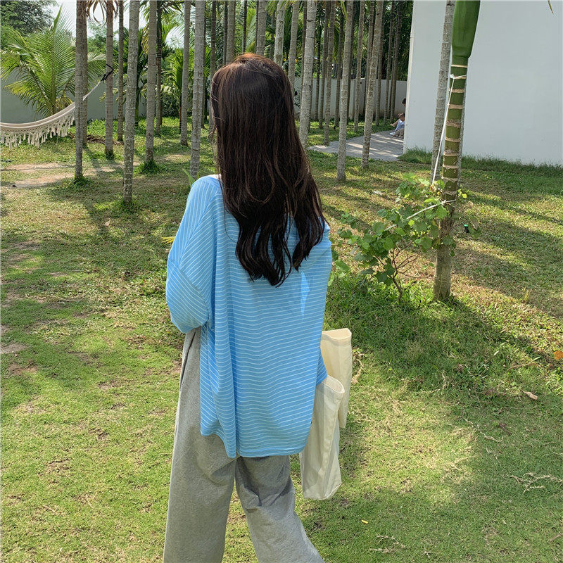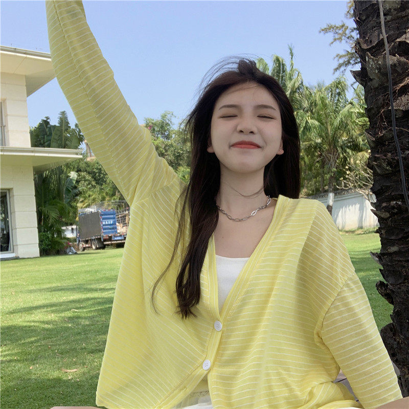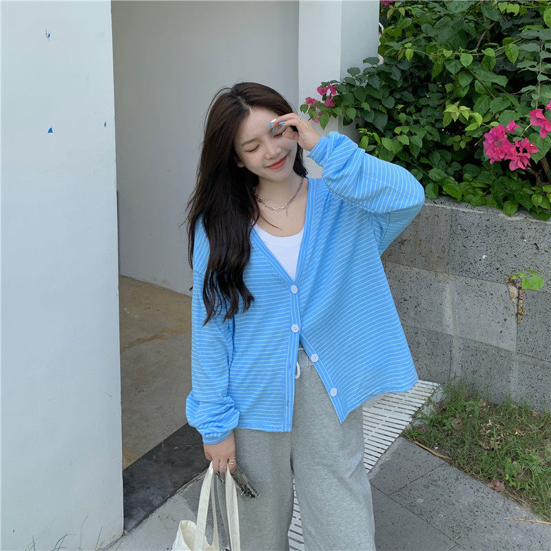 实拍实价 韩版宽松百搭夏季条纹多色开衫防晒衣