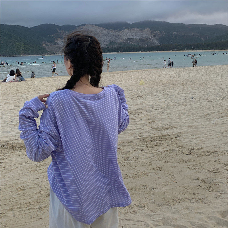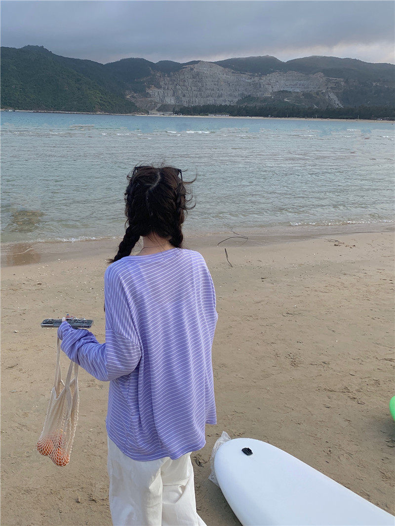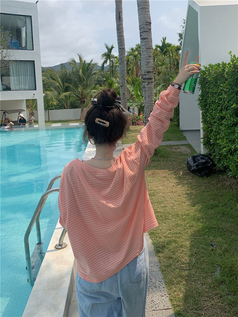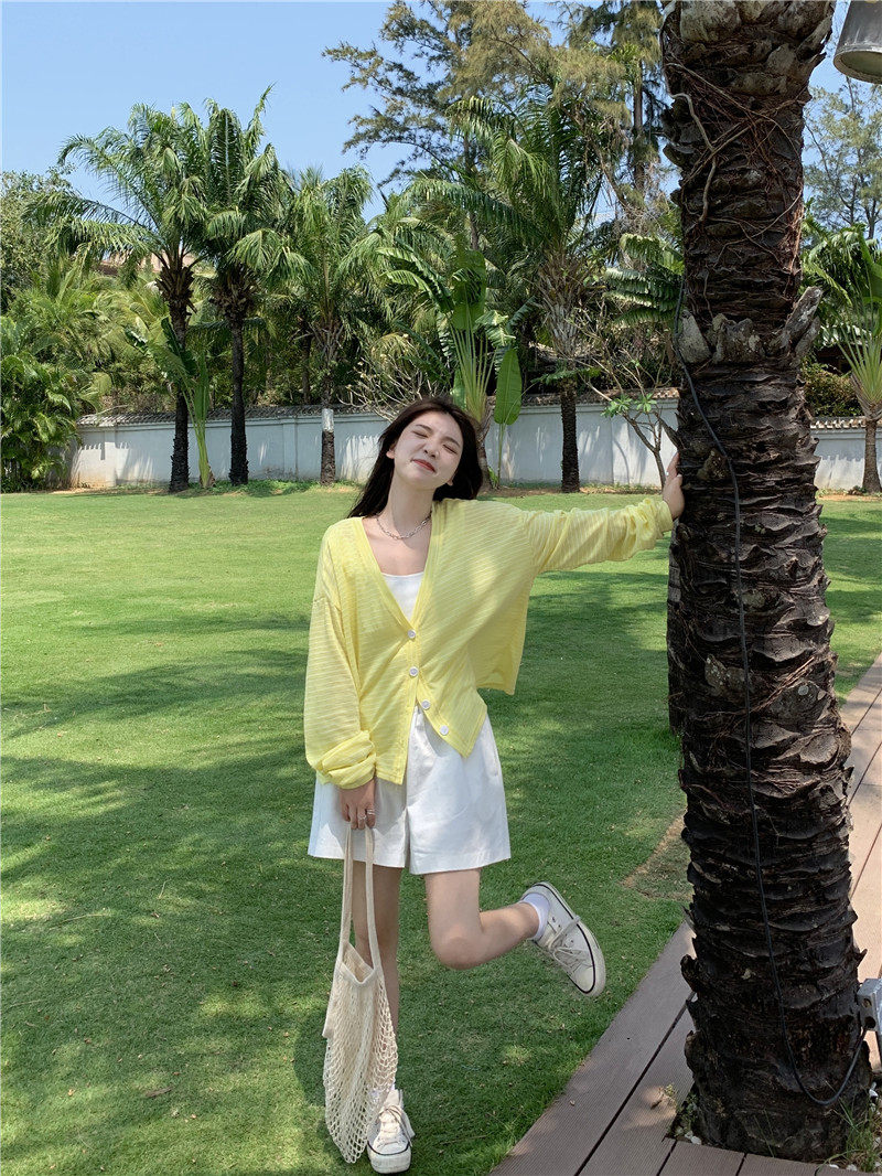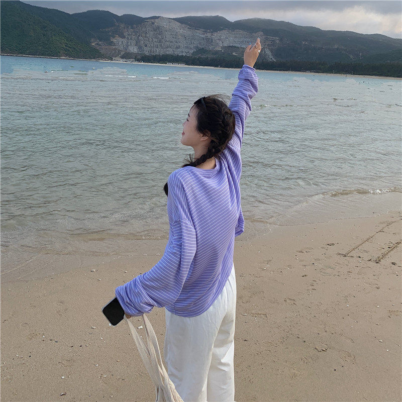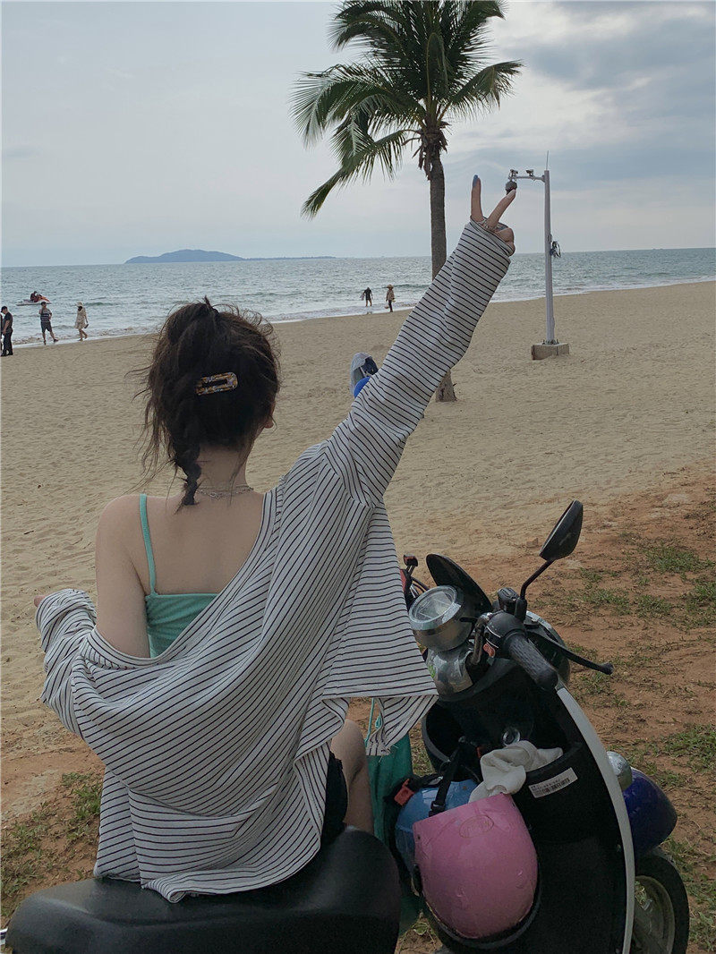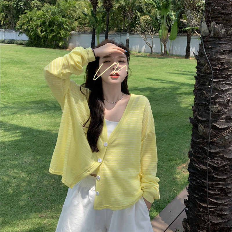 实拍实价 韩版宽松百搭夏季条纹多色开衫防晒衣