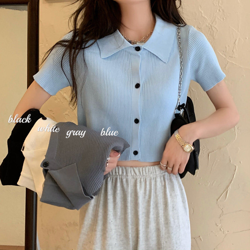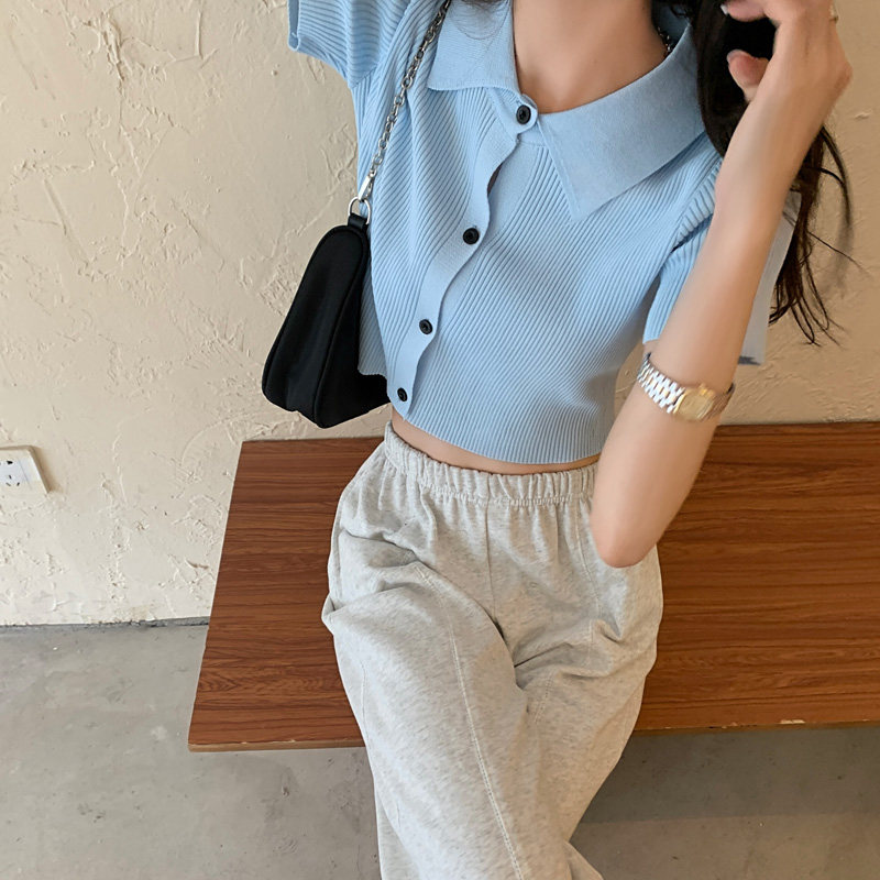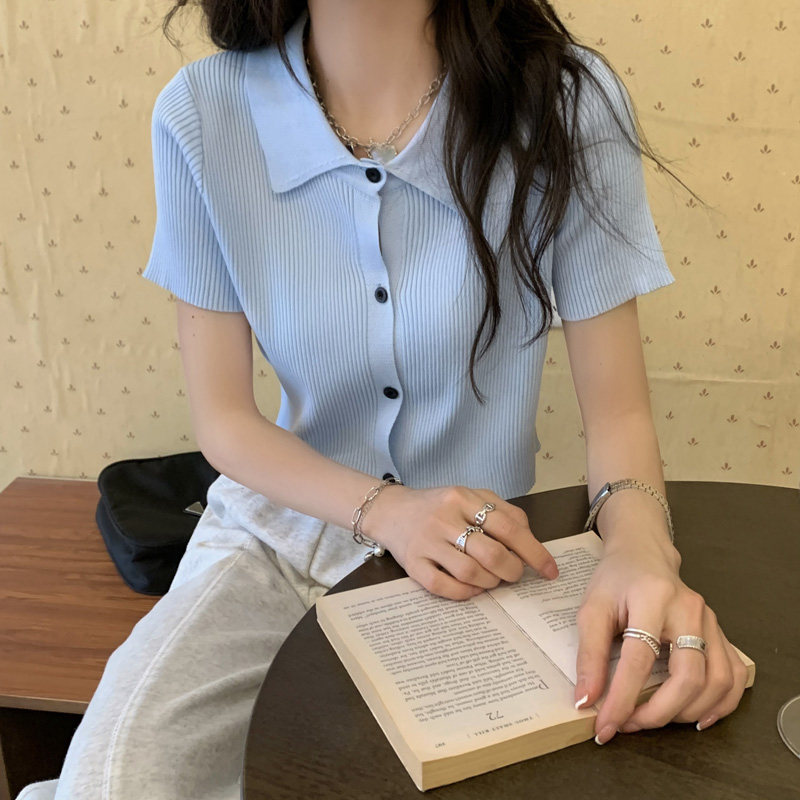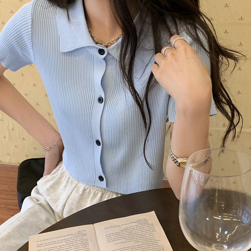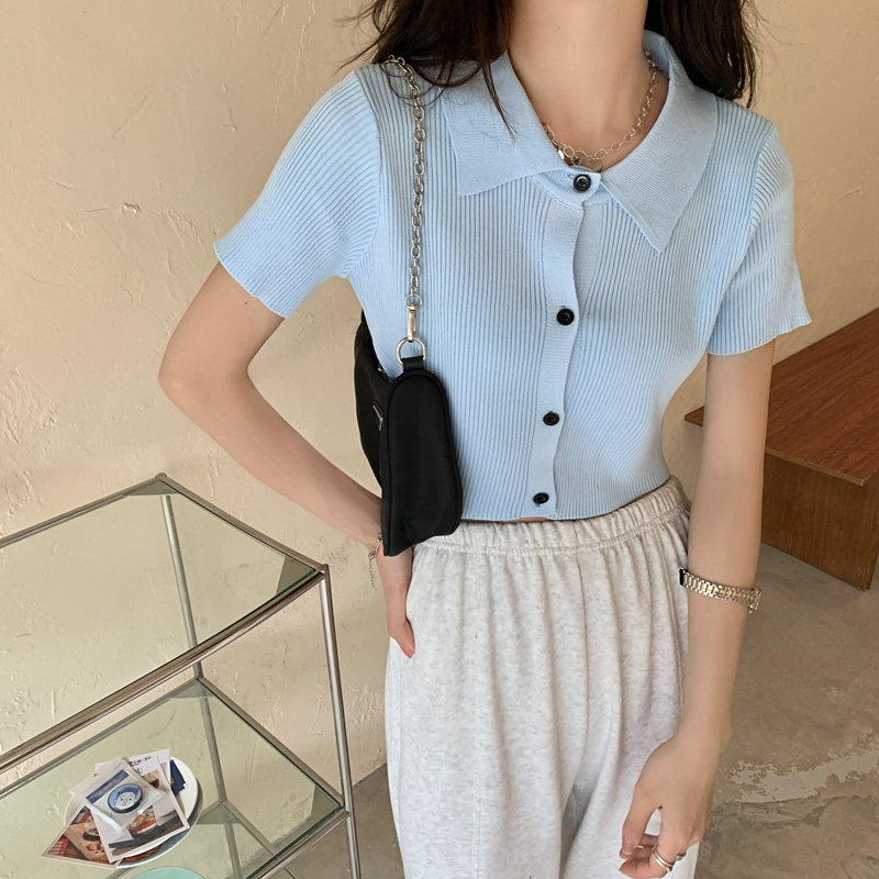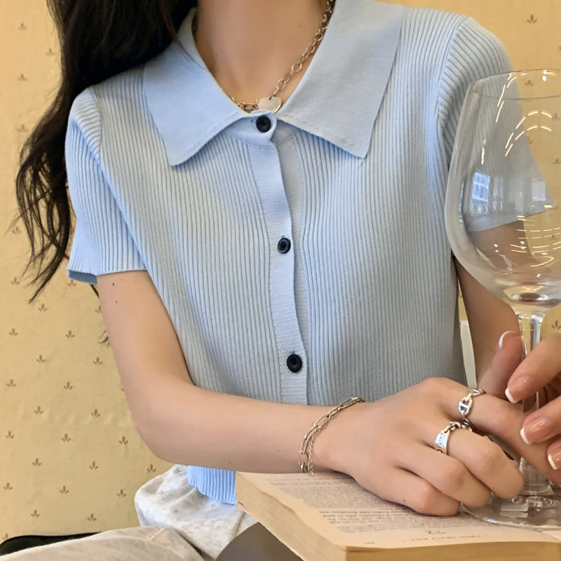实拍实价 2021夏季新款复古百搭短袖针织衫女polo衫气质显瘦上衣t