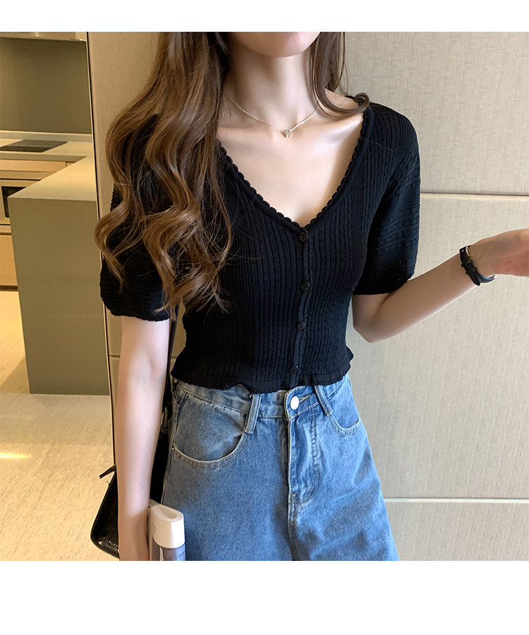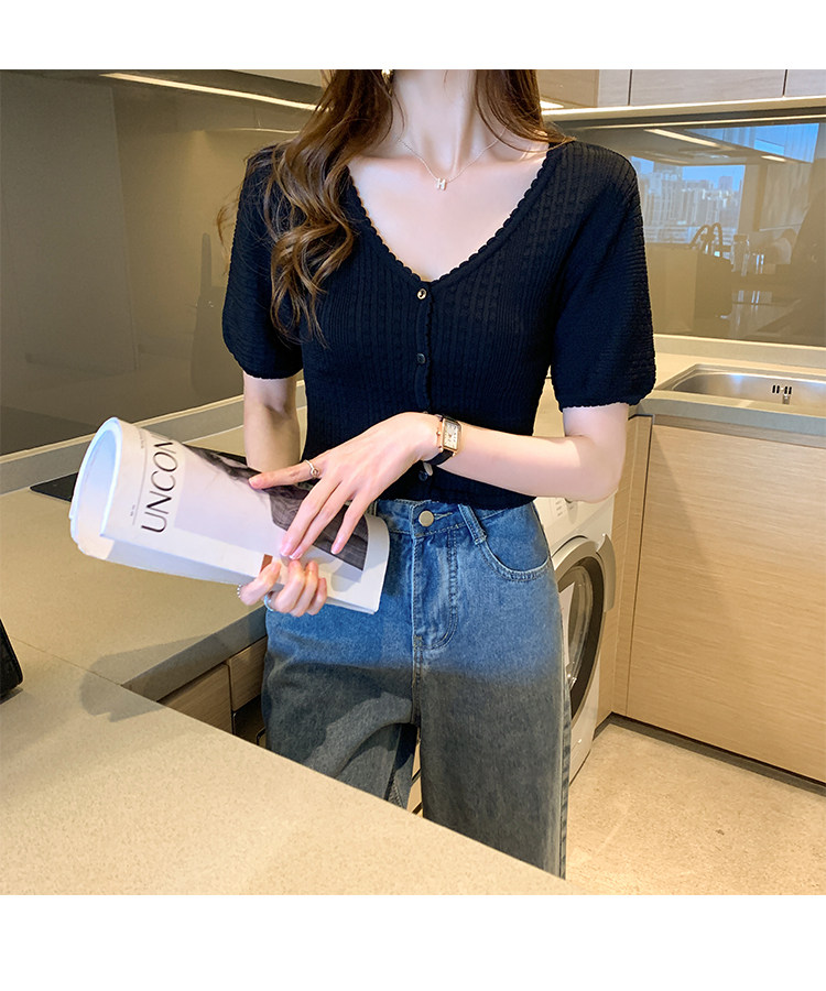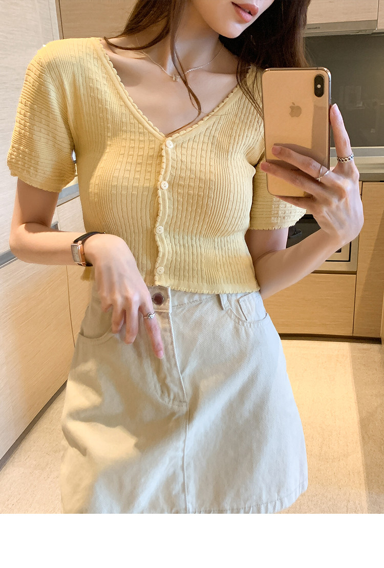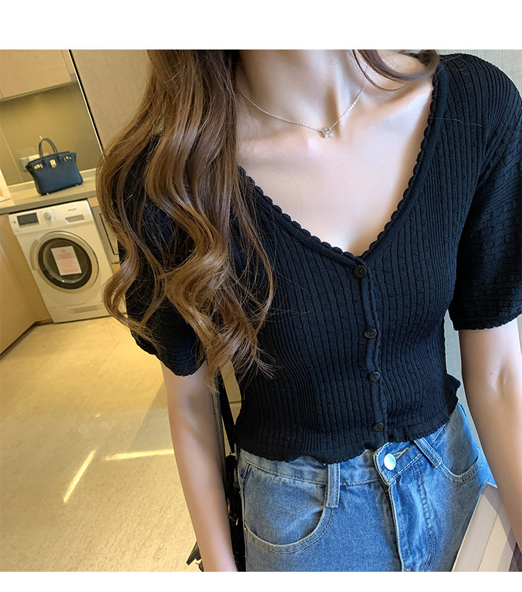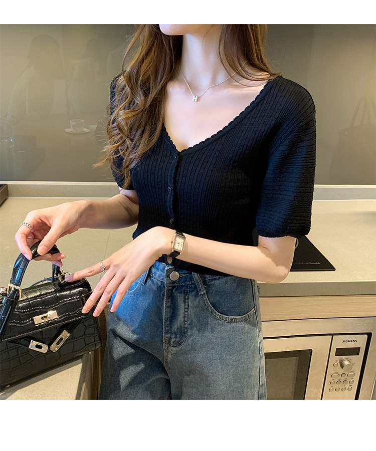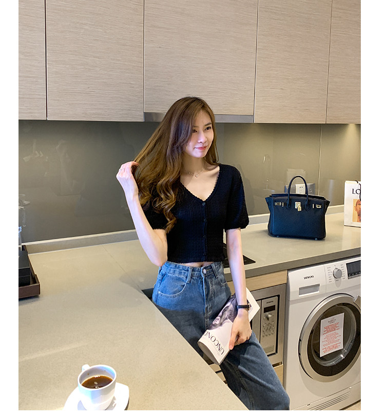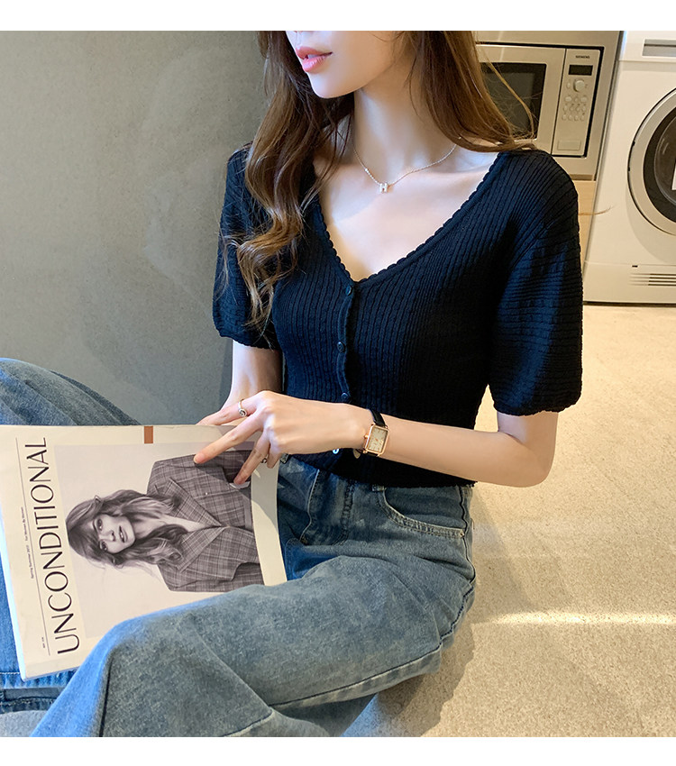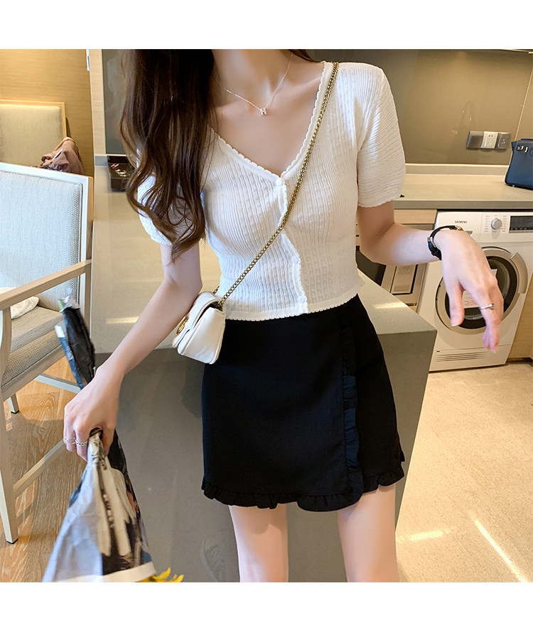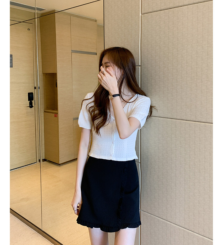 实拍2021春夏新款短袖薄针织小开衫女温柔风显瘦T恤短款高腰上衣