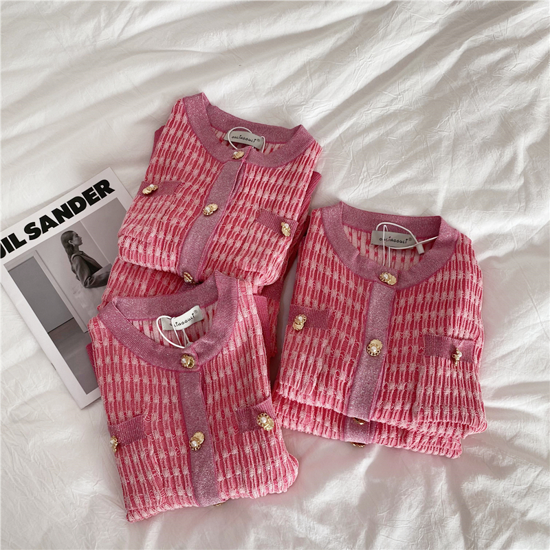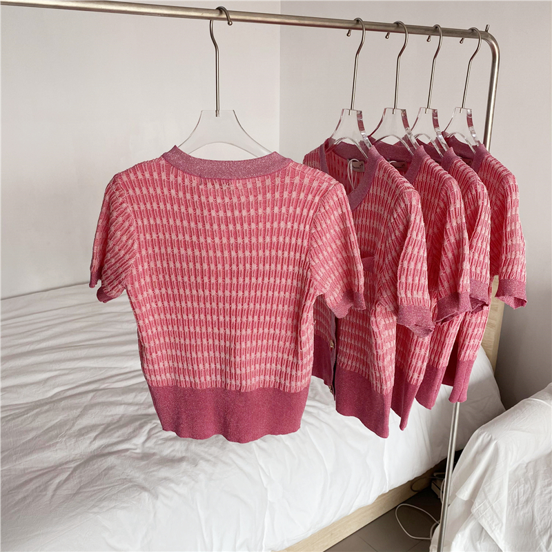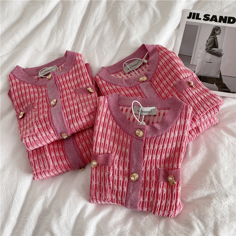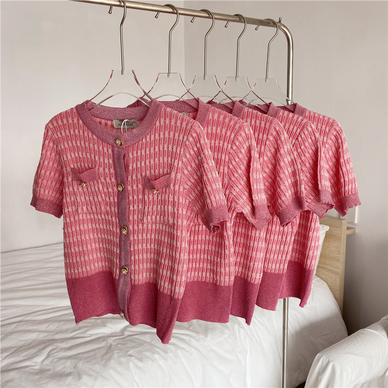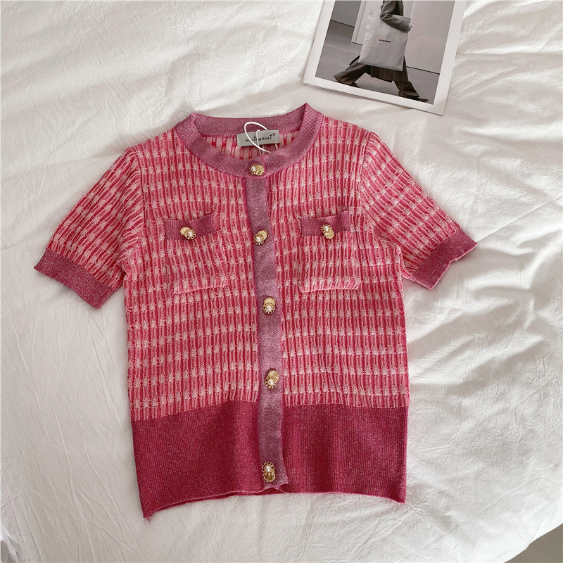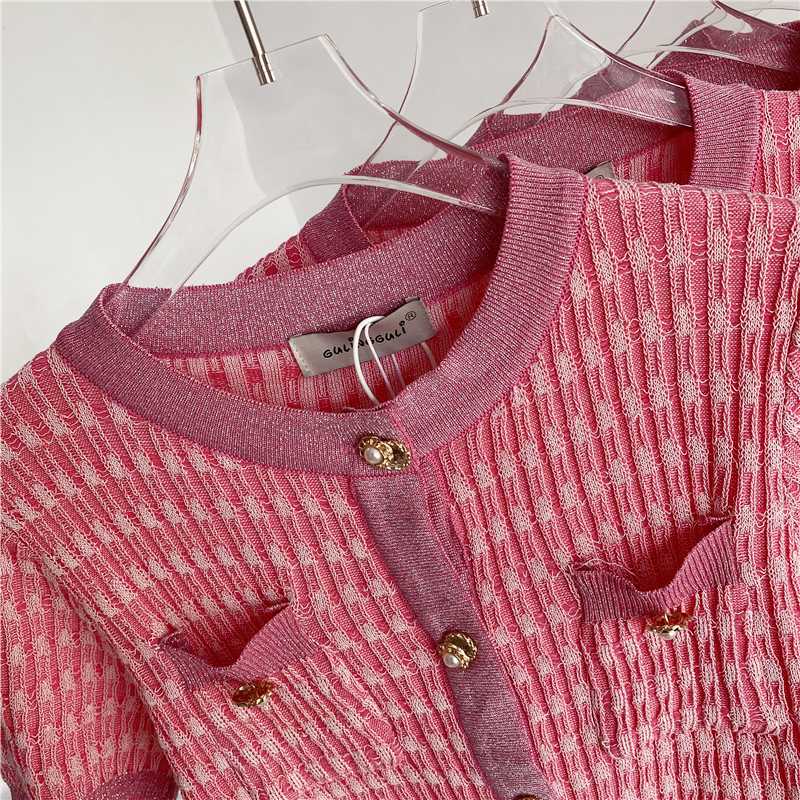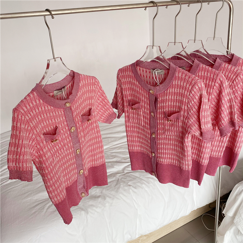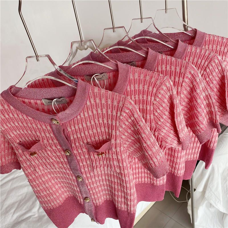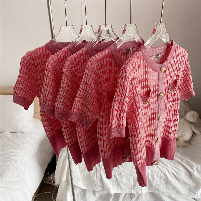 薄款冰丝小香风针织衫开衫短袖短款上衣女夏季设计感小众2021新款
