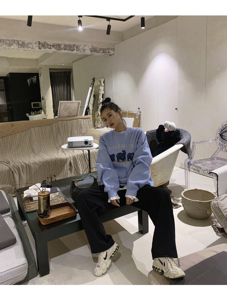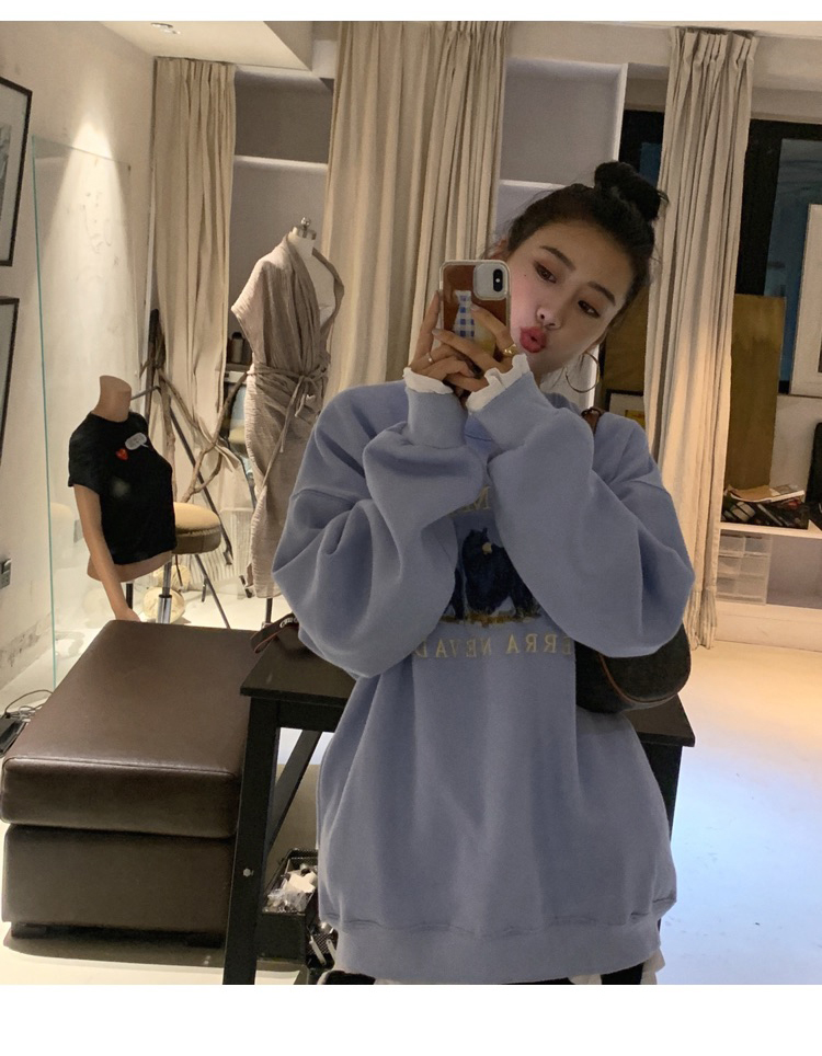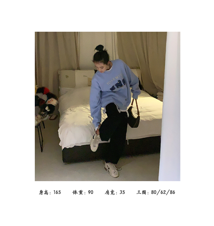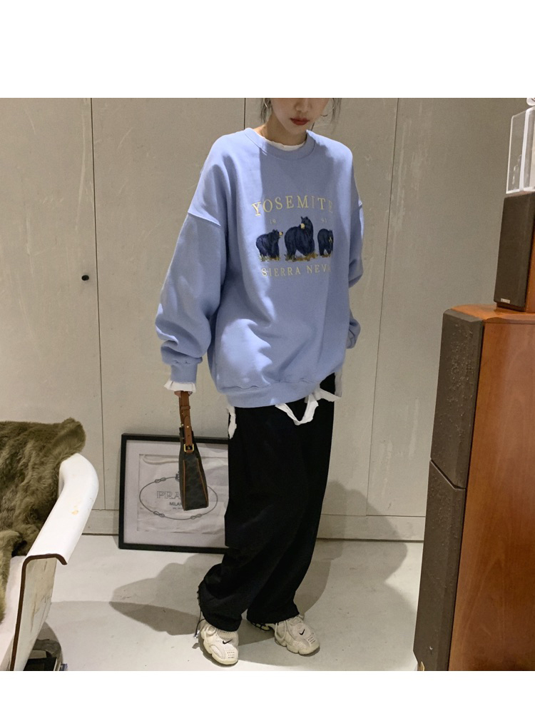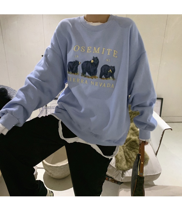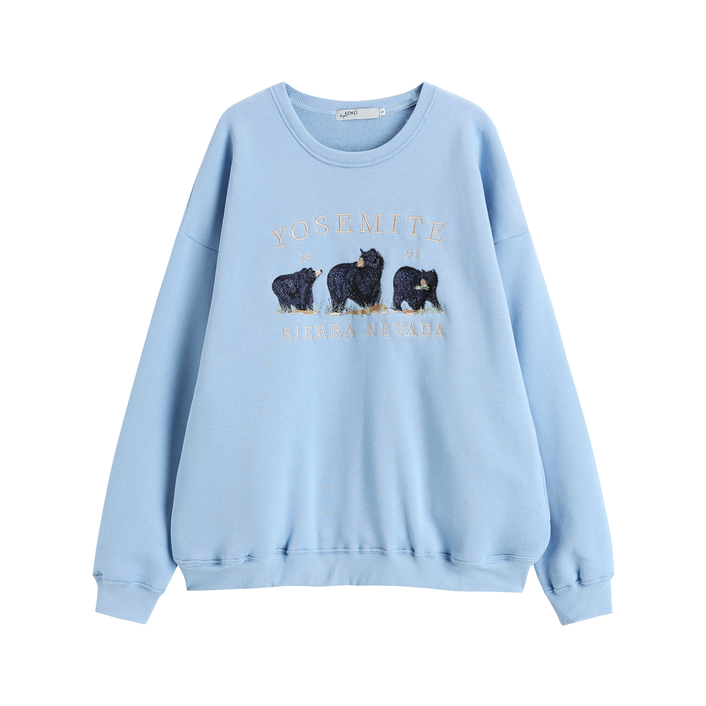 实拍 2020秋冬季新韩版加绒宽松刺绣圆领三只熊卡通卫衣女潮ins