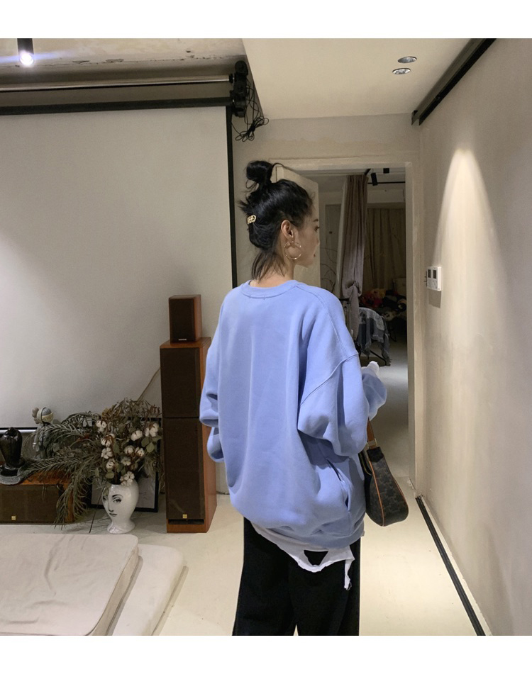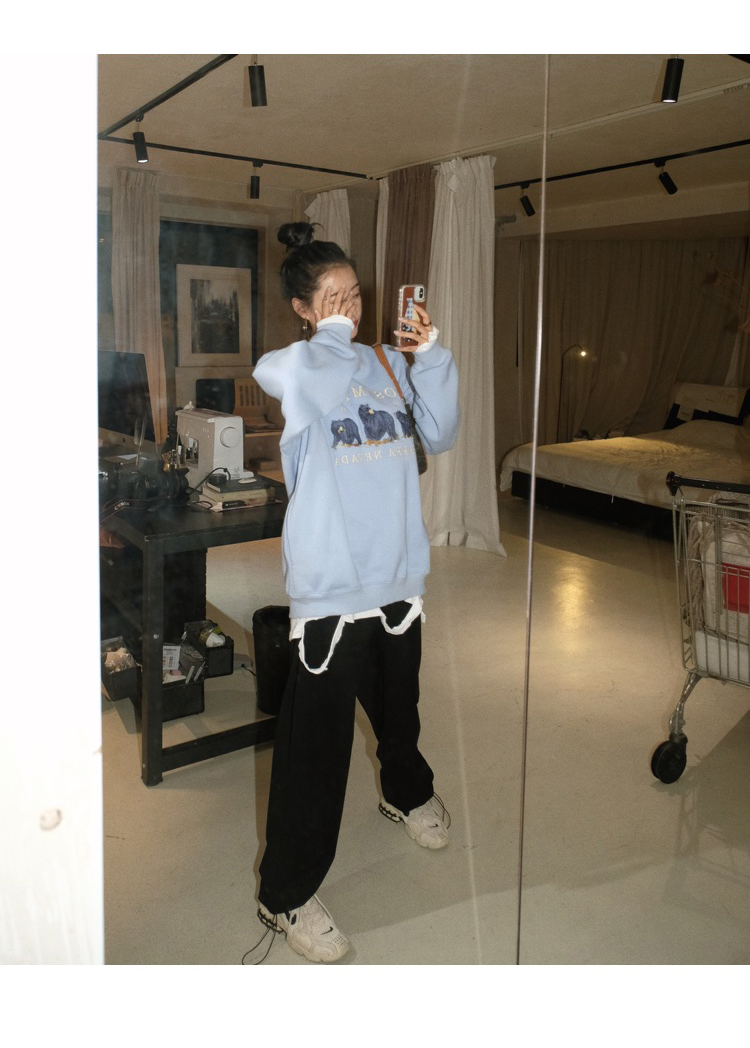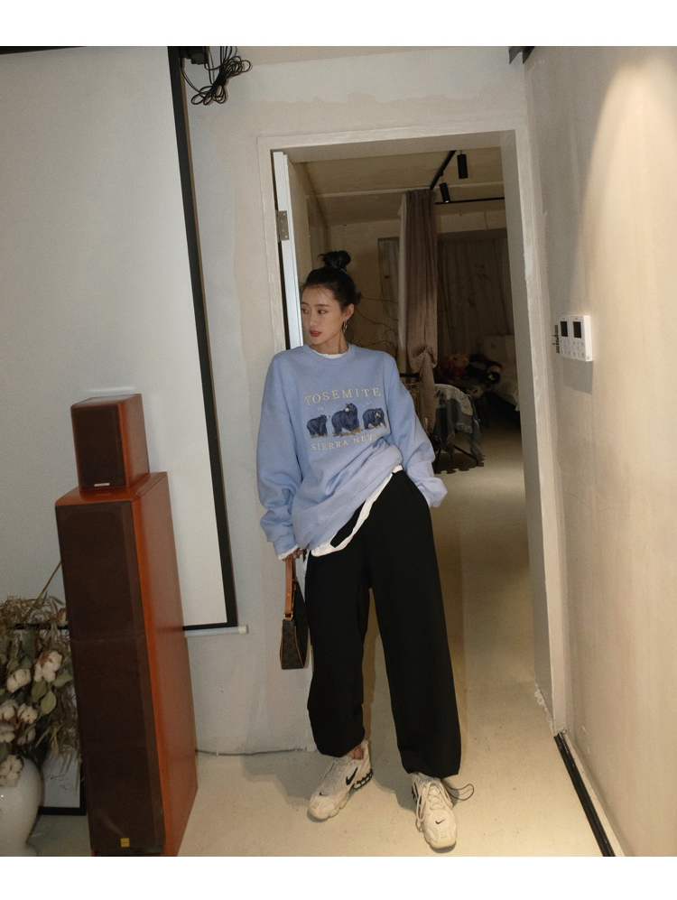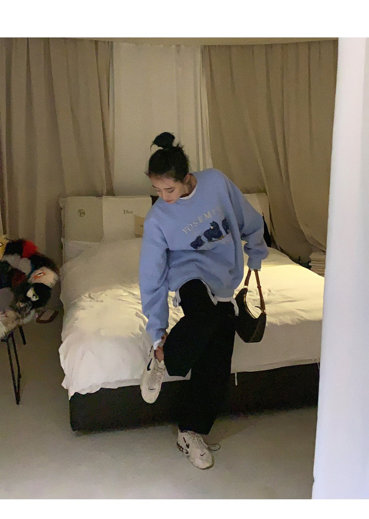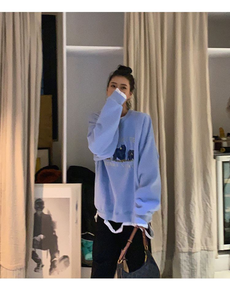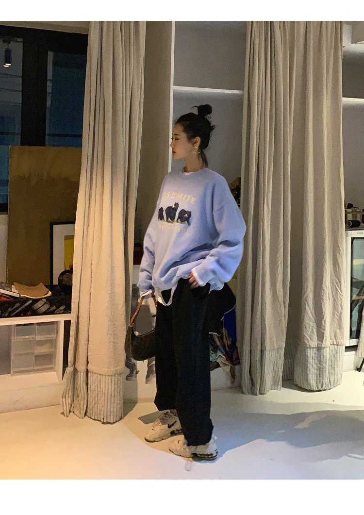 实拍 2020秋冬季新韩版加绒宽松刺绣圆领三只熊卡通卫衣女潮ins
