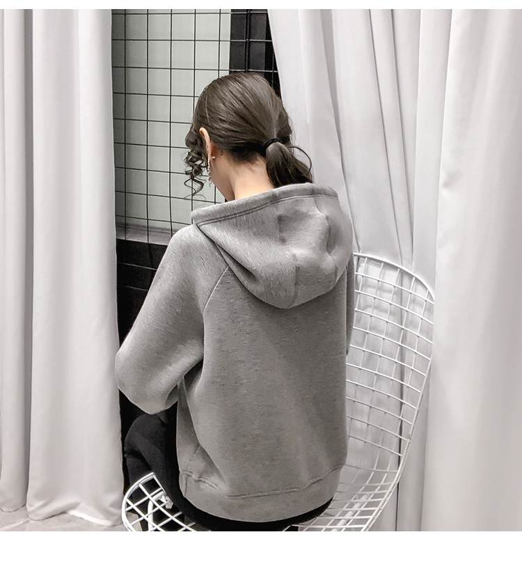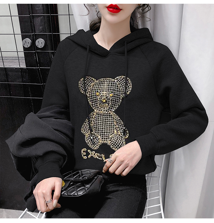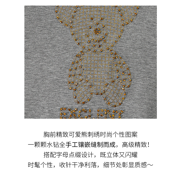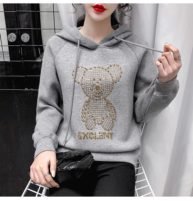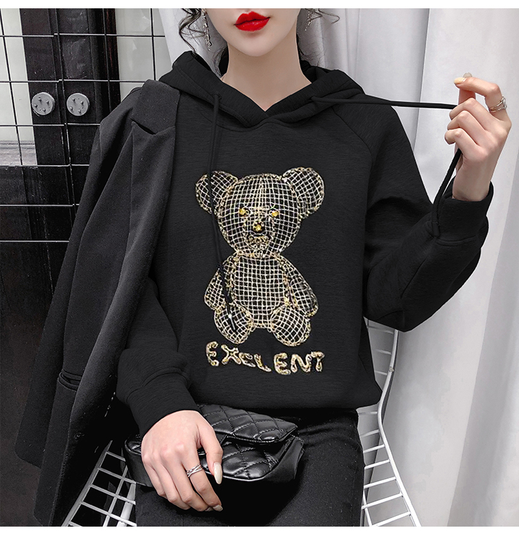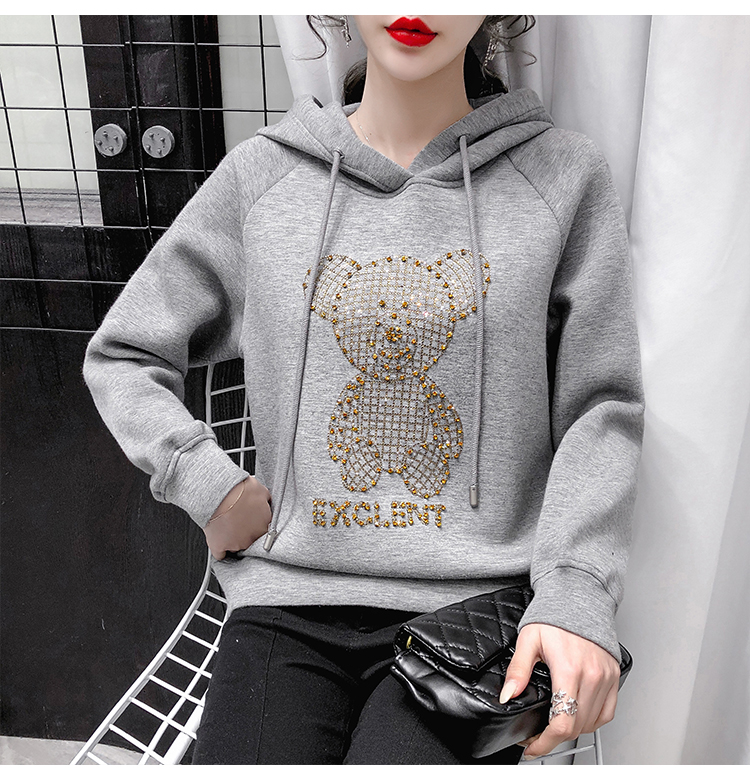 现货实拍 太空棉连帽卫衣女2021早春新款宽松短款重工镶钻上衣