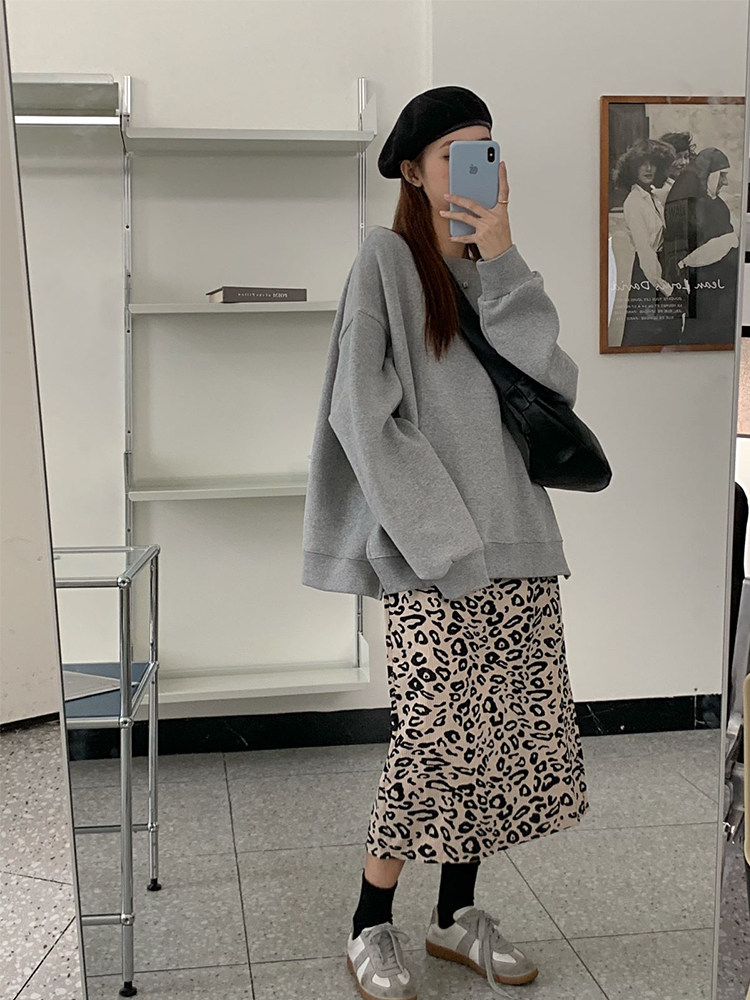 晚秋和寒冬都可以穿的卫衣+豹纹裙