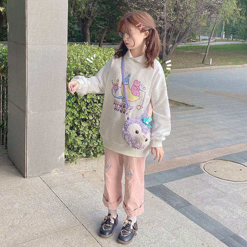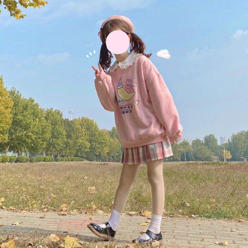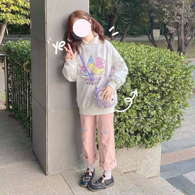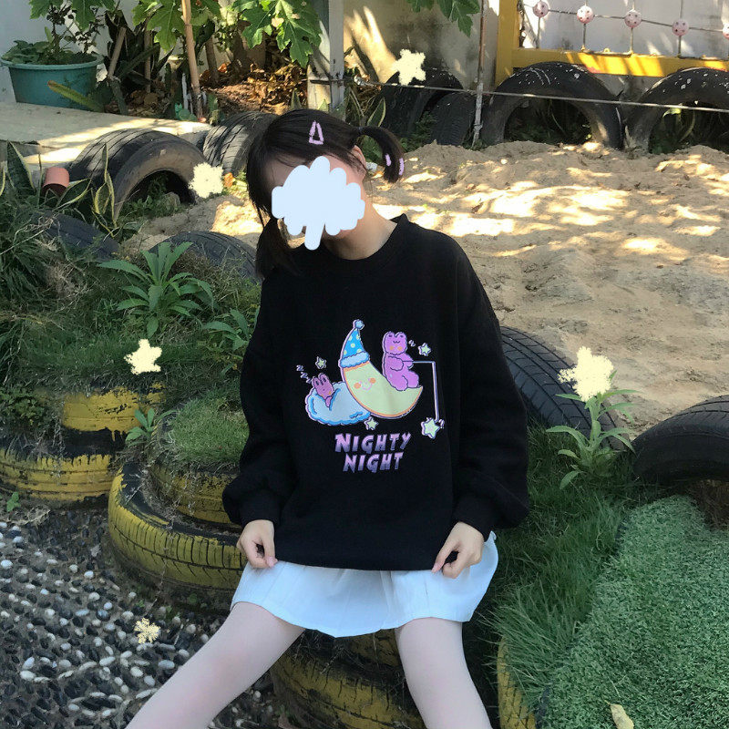 实拍实价 原创设计睡眠熊加绒加厚长袖卫衣