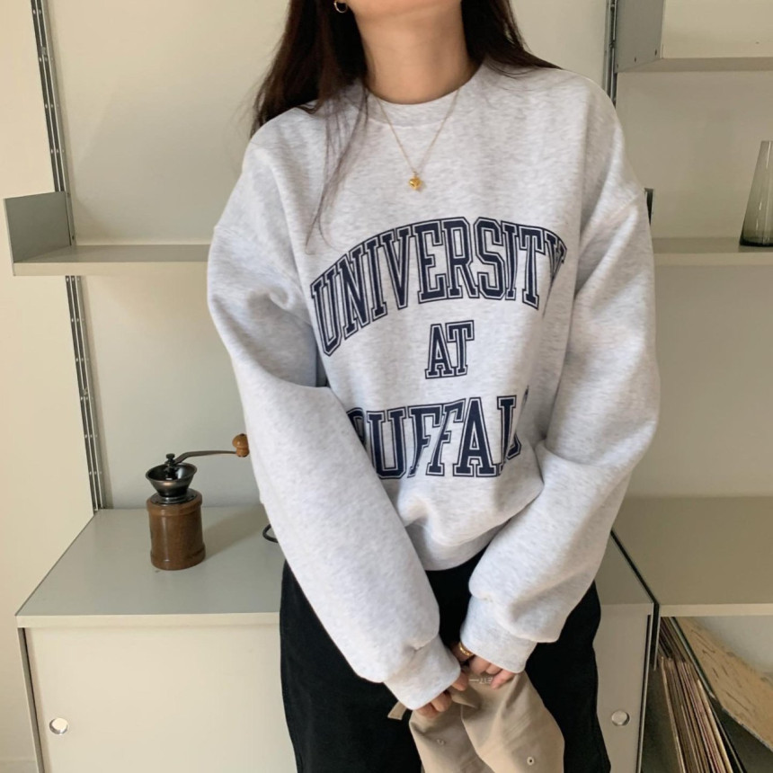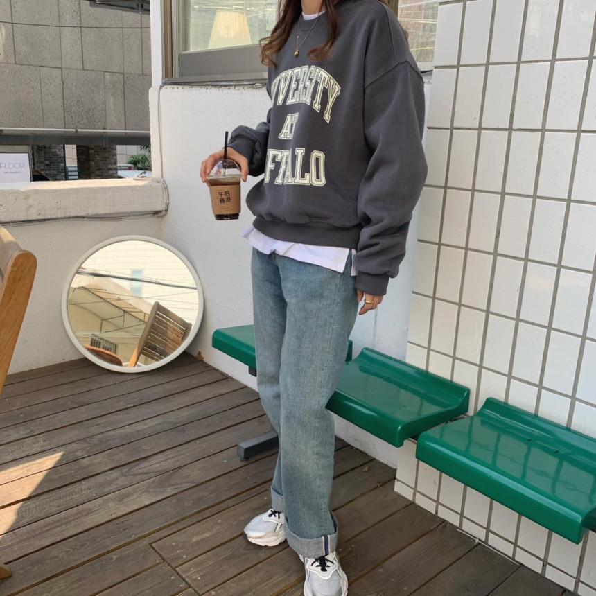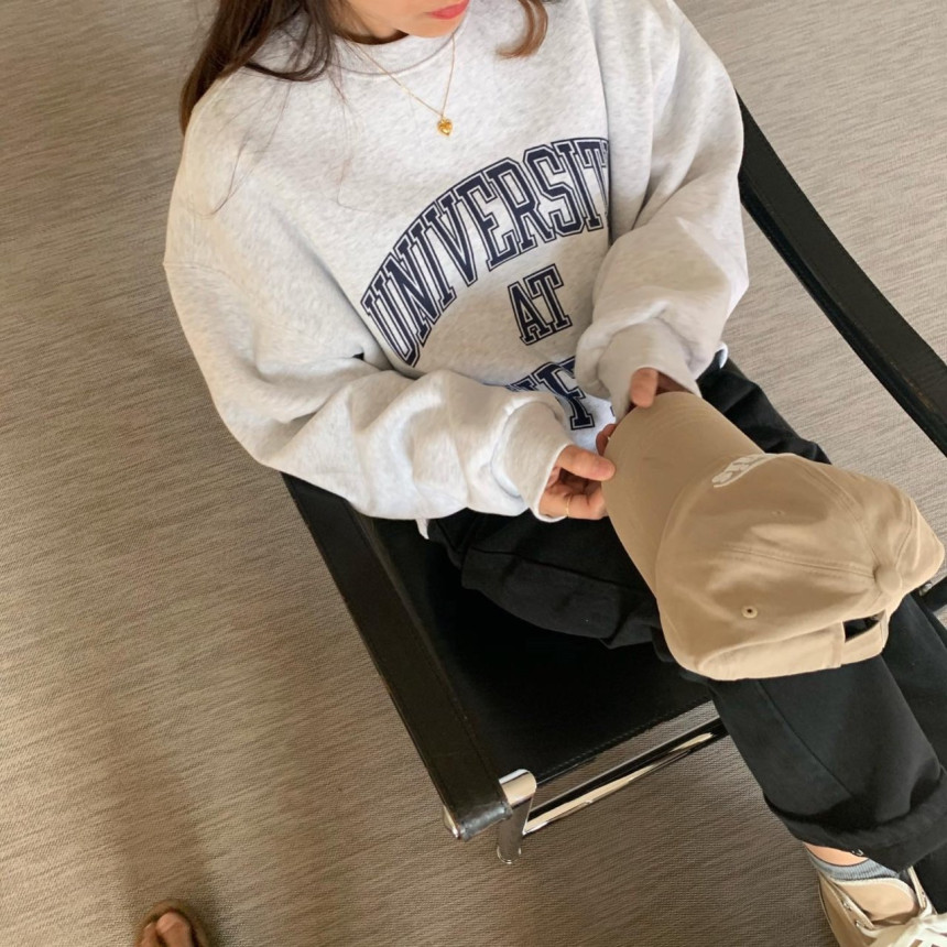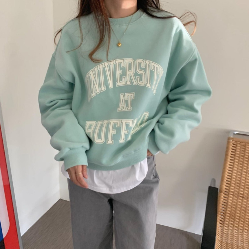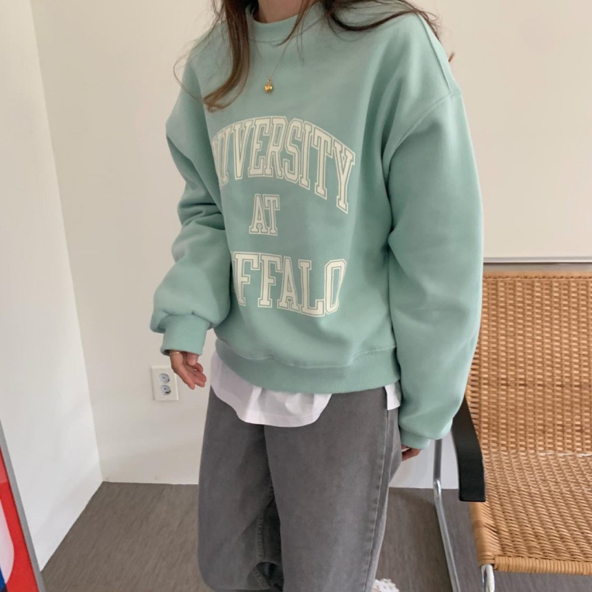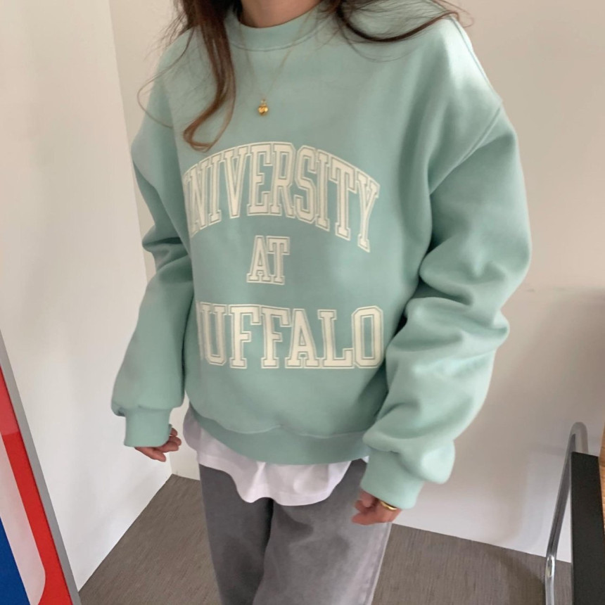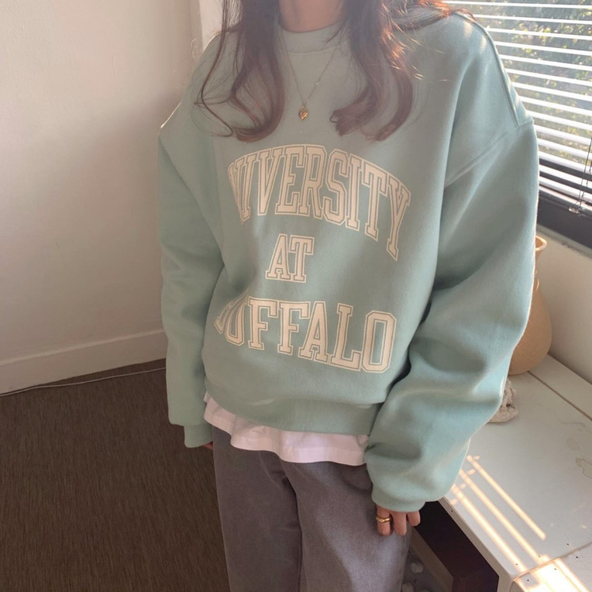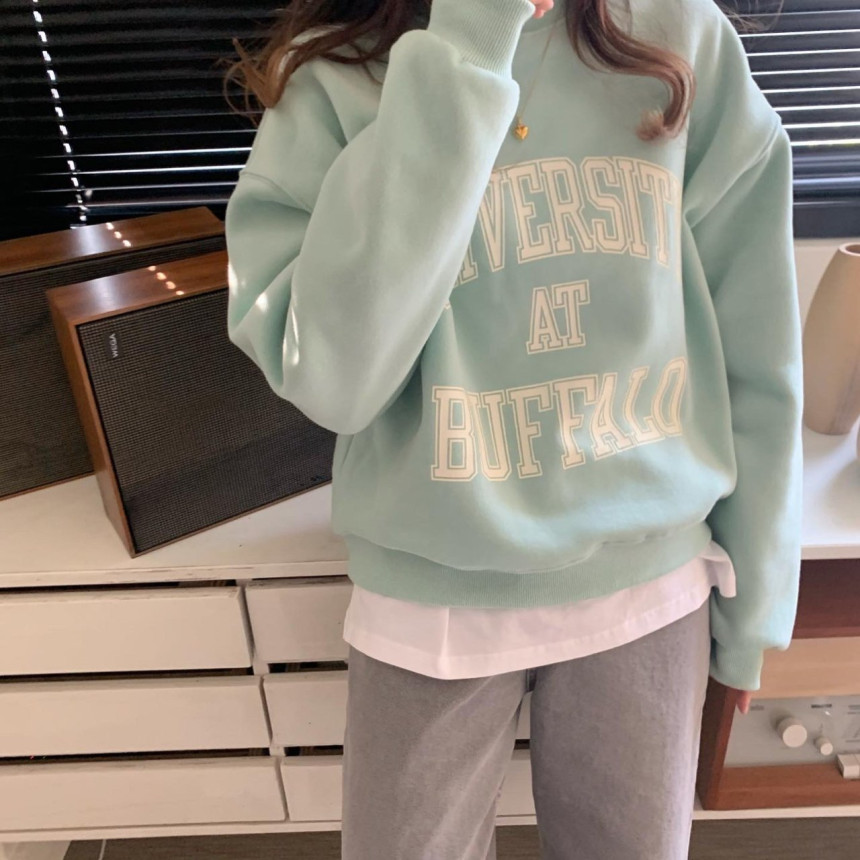 韩国chic 减龄薄荷绿字母印花卫衣 加绒