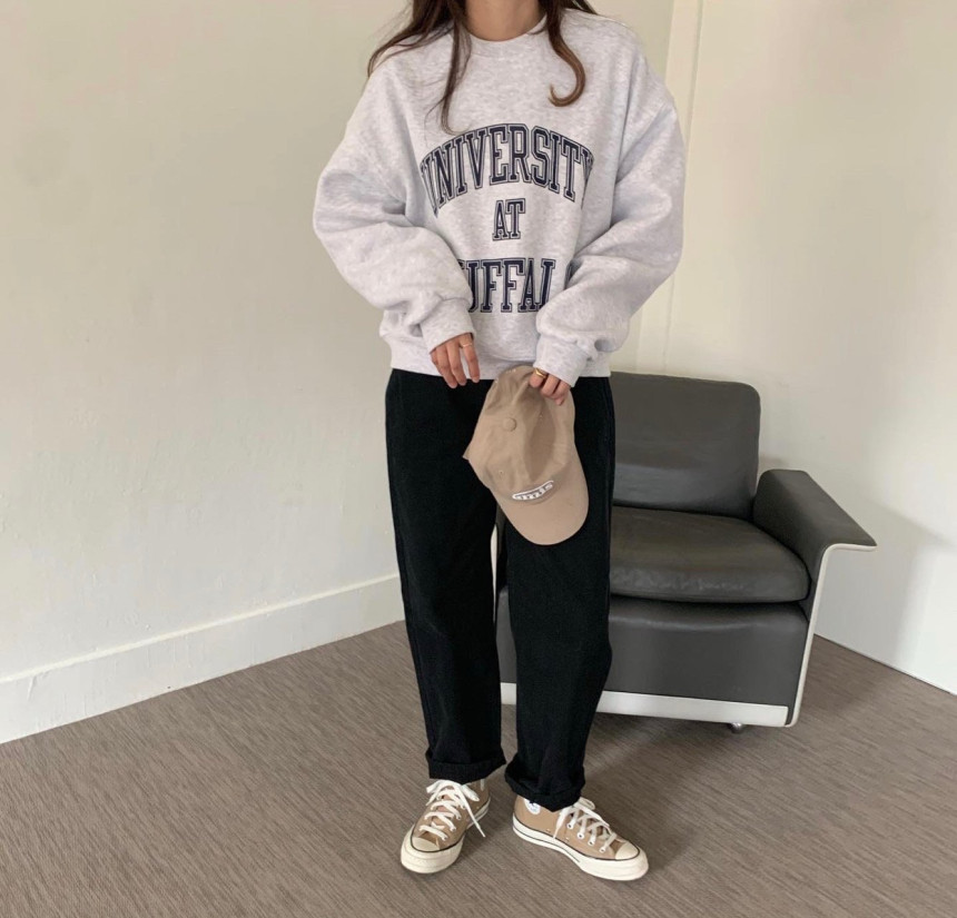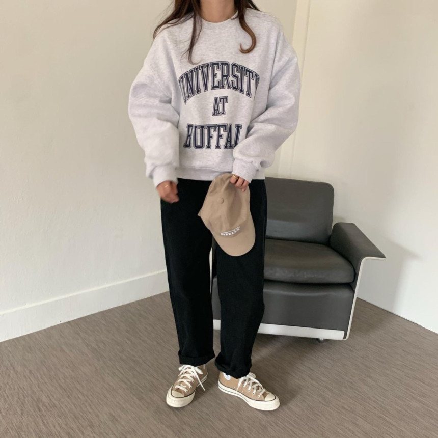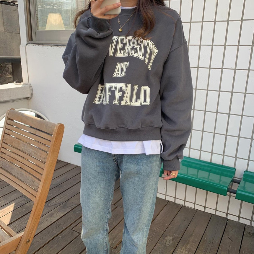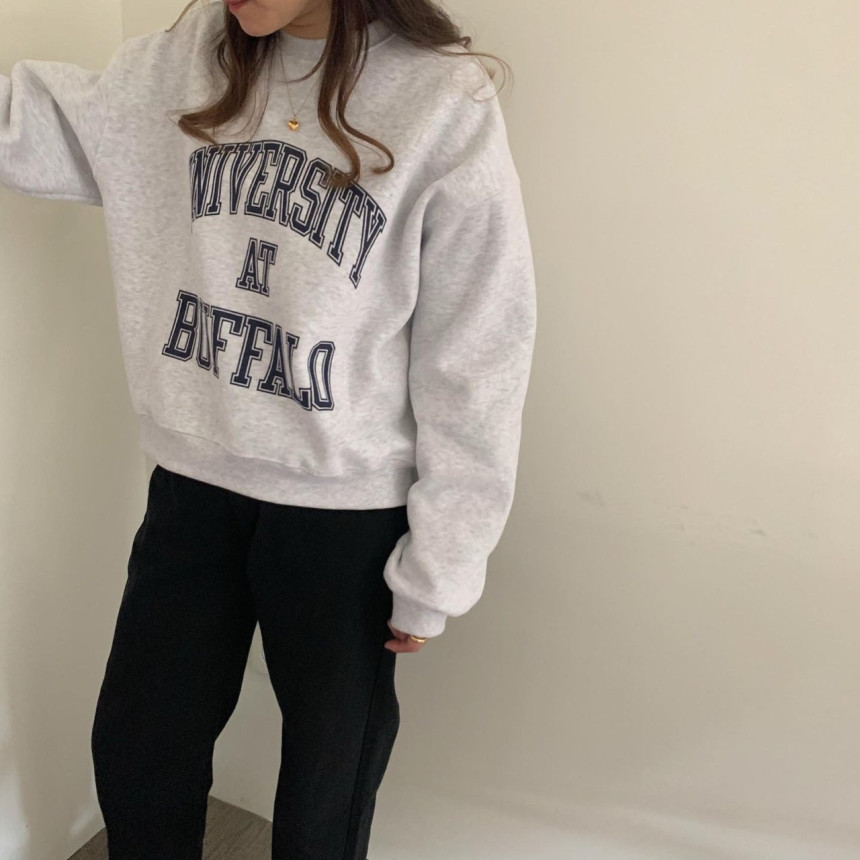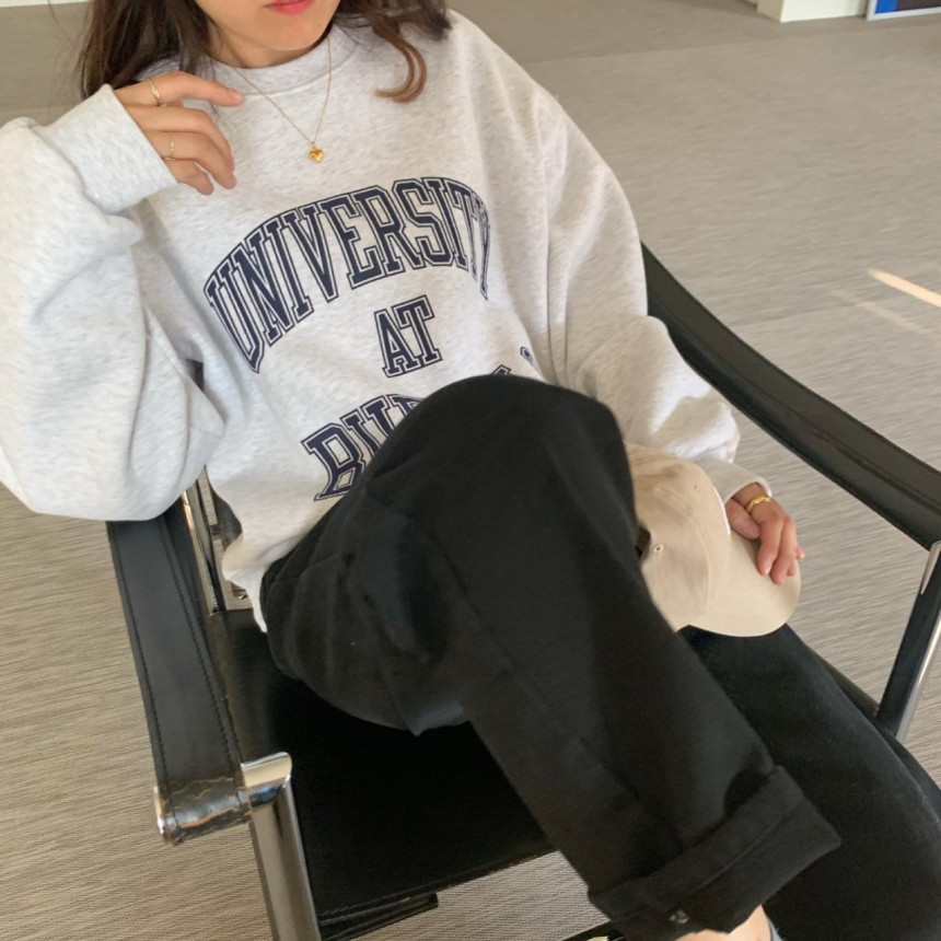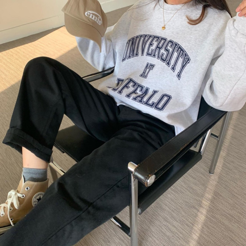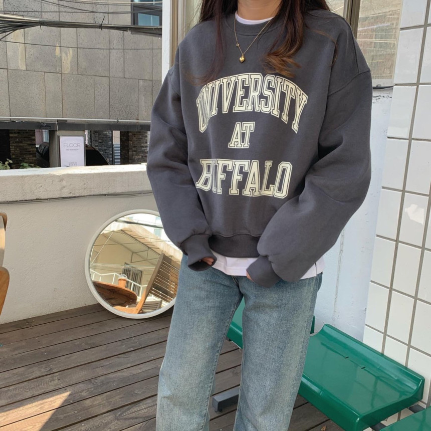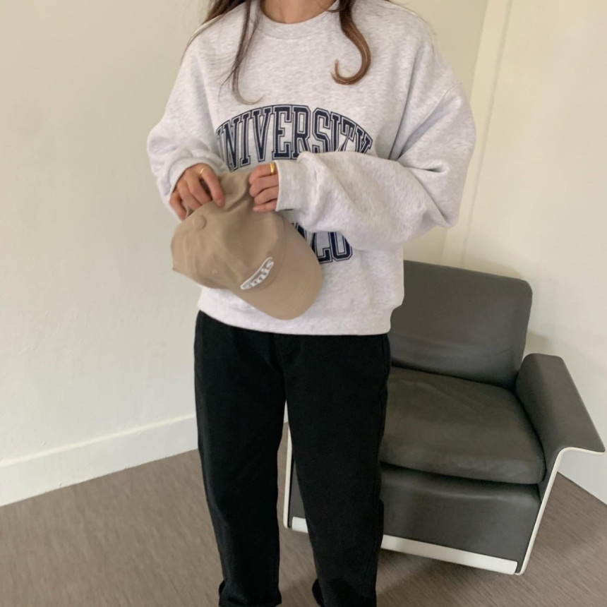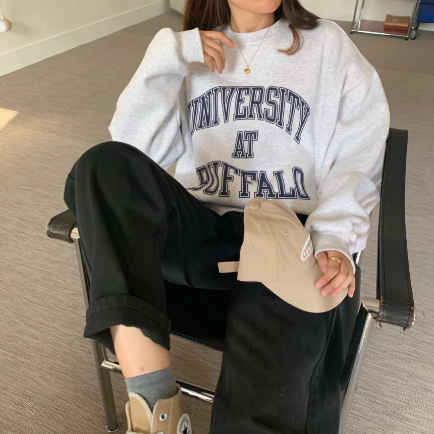 韩国chic 减龄薄荷绿字母印花卫衣 加绒
