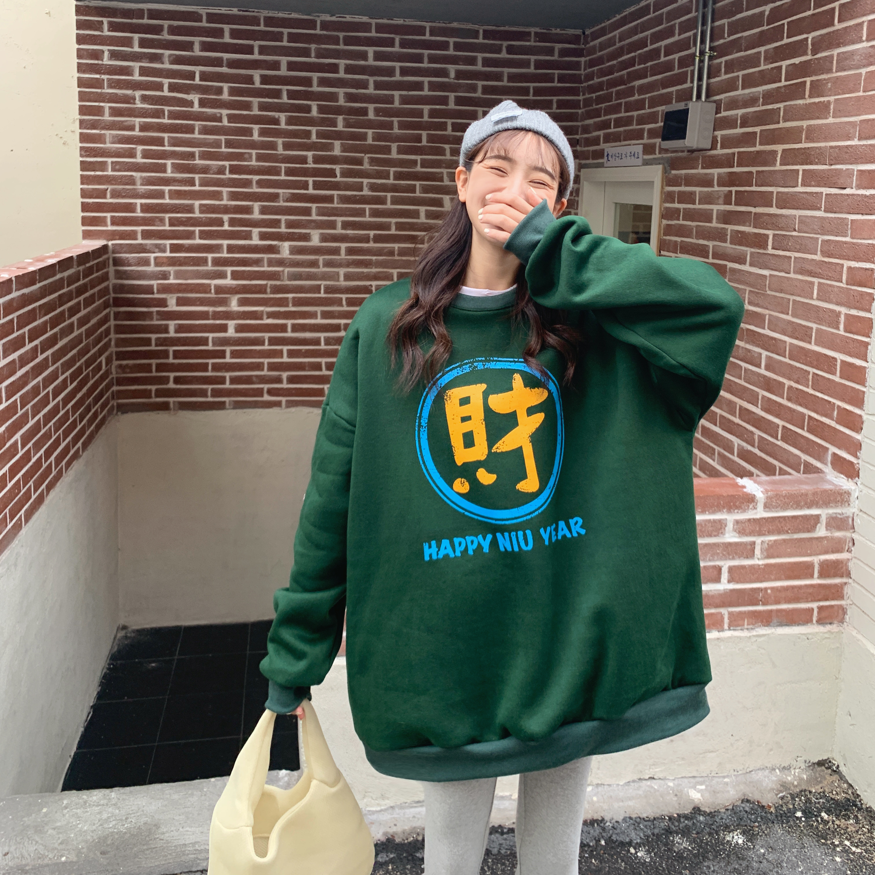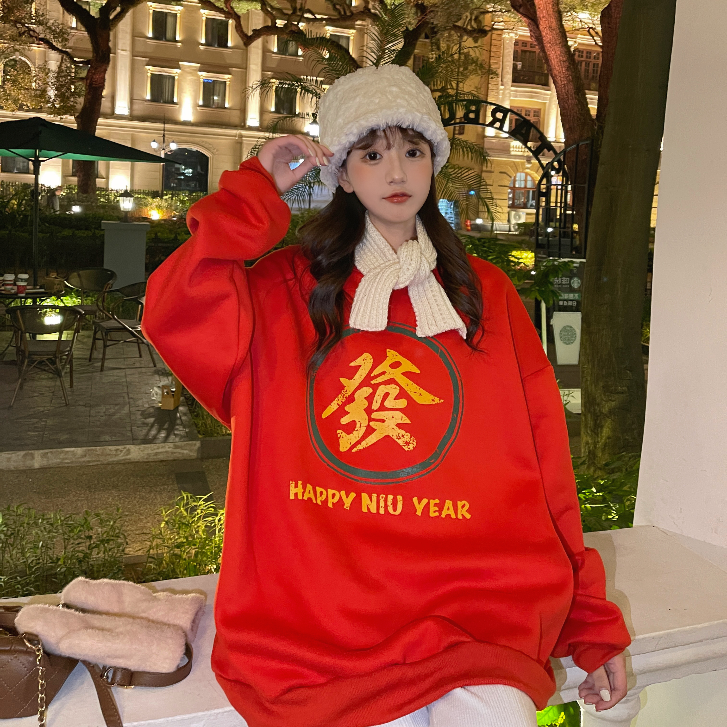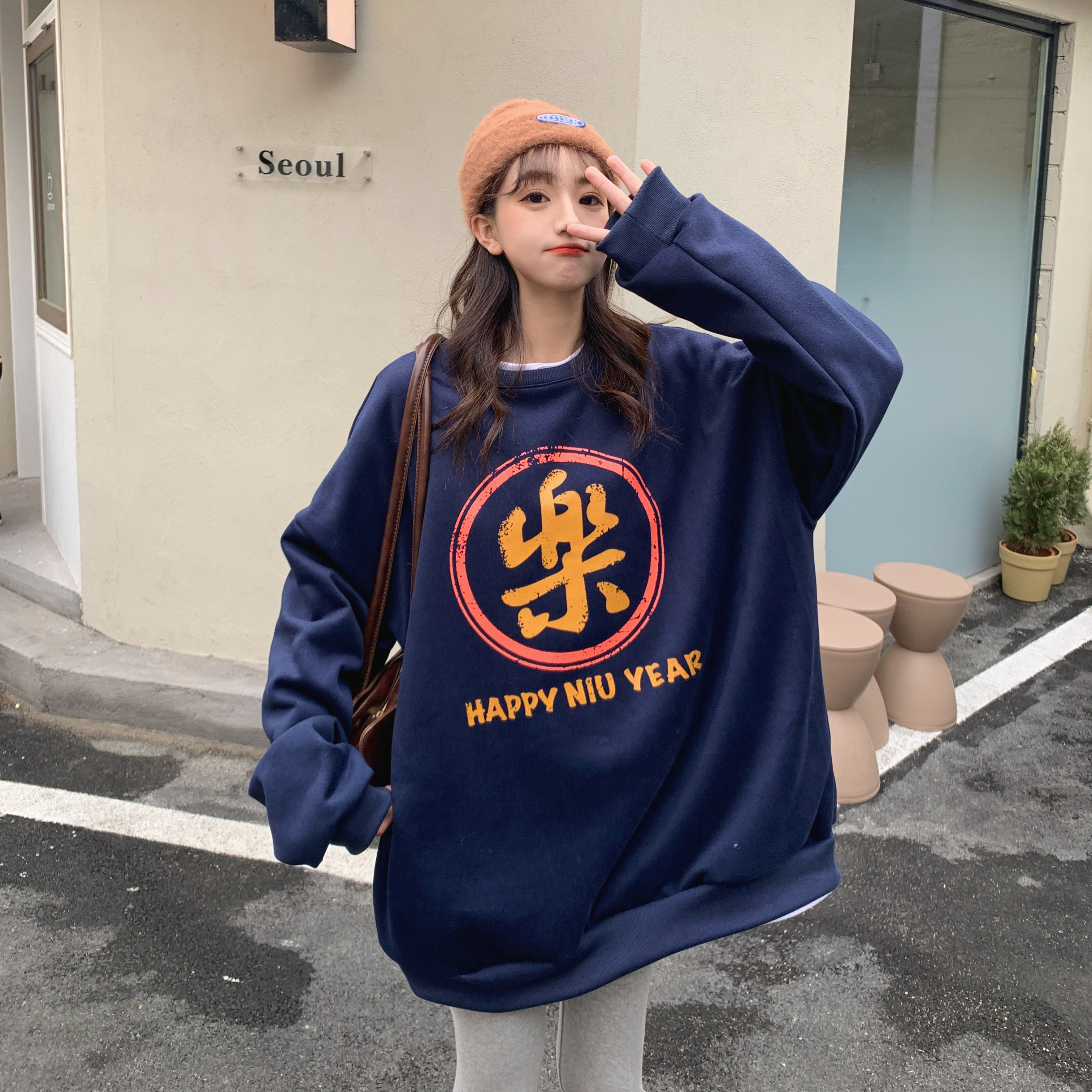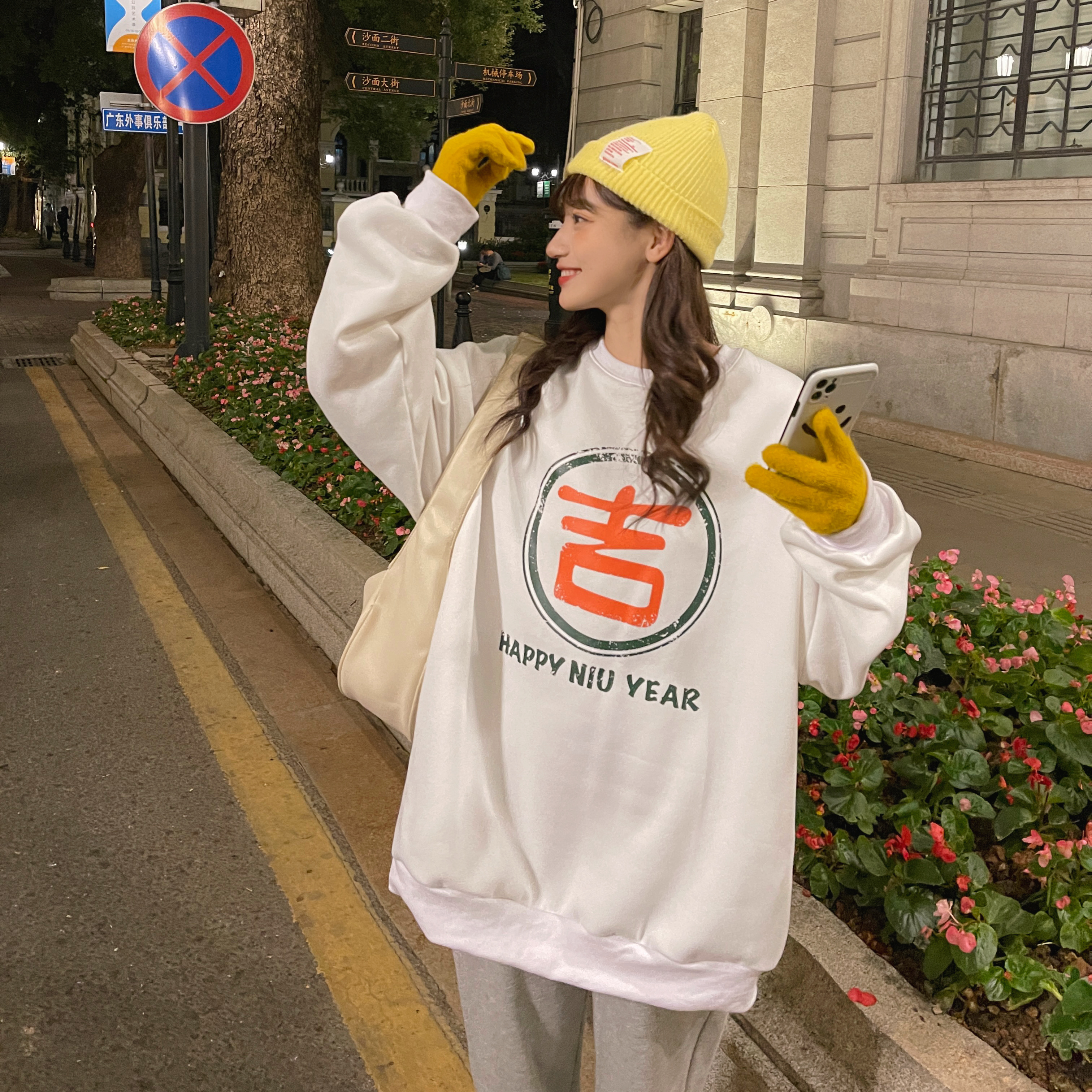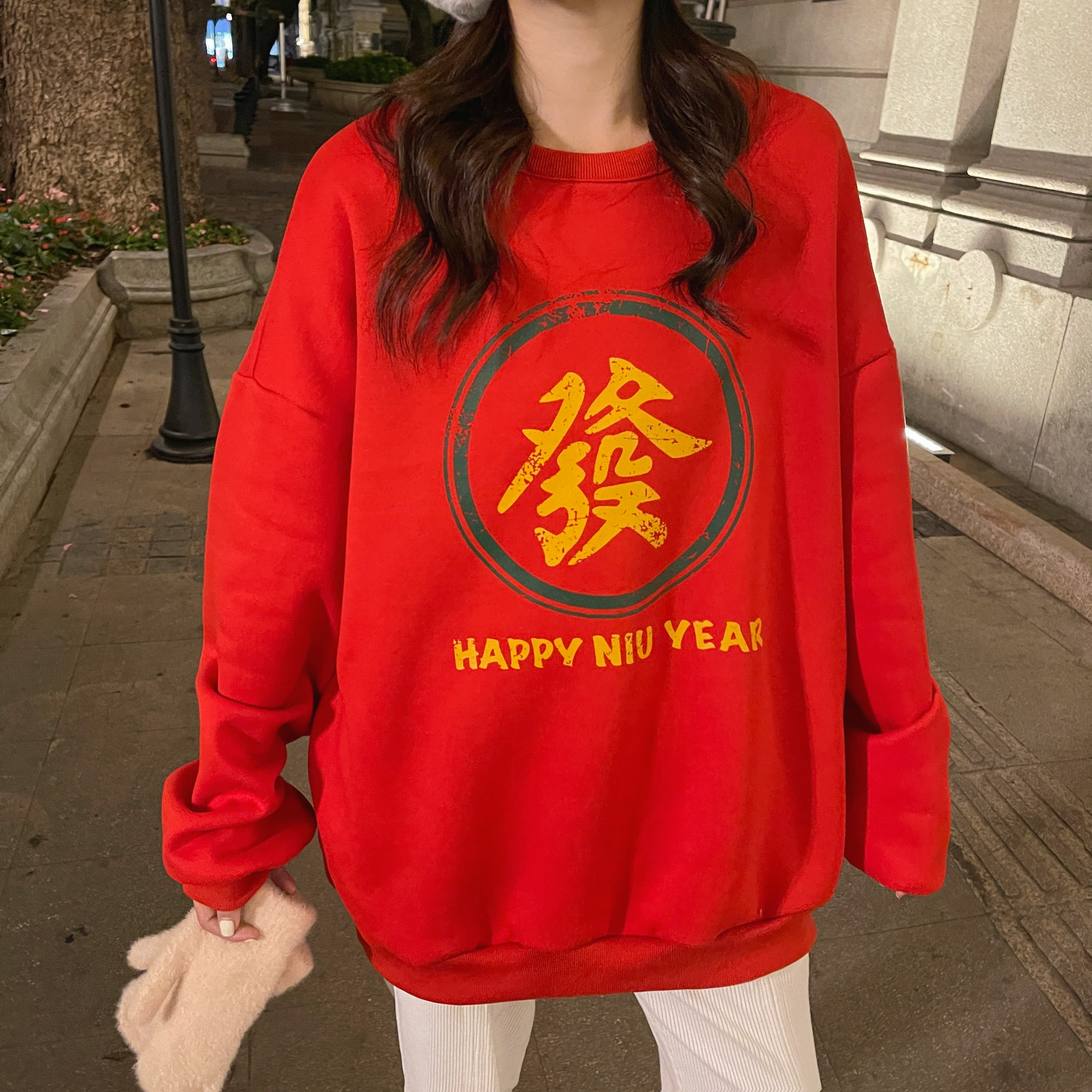 实拍实价~新年圣诞happy“牛”year圆领套头加绒卫衣