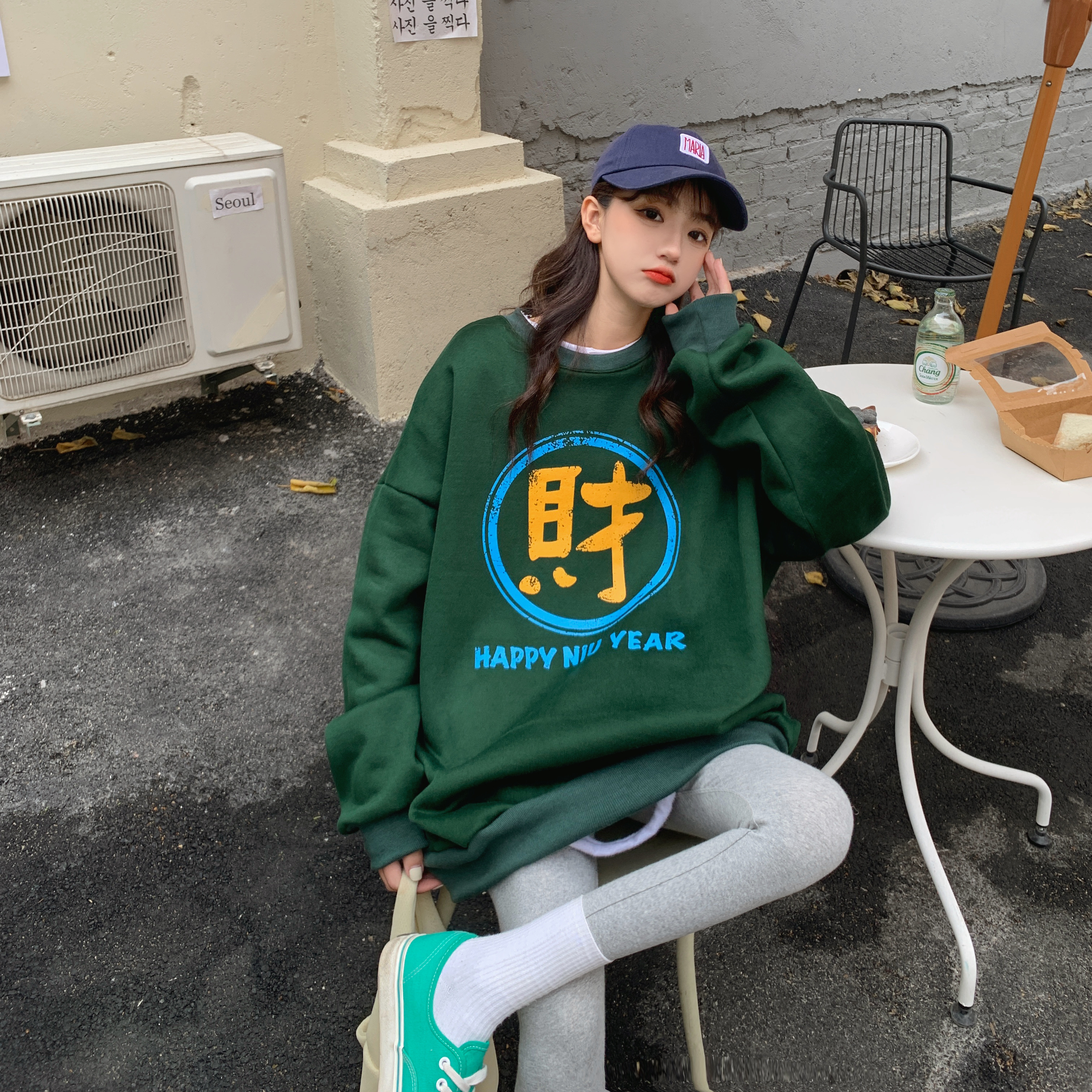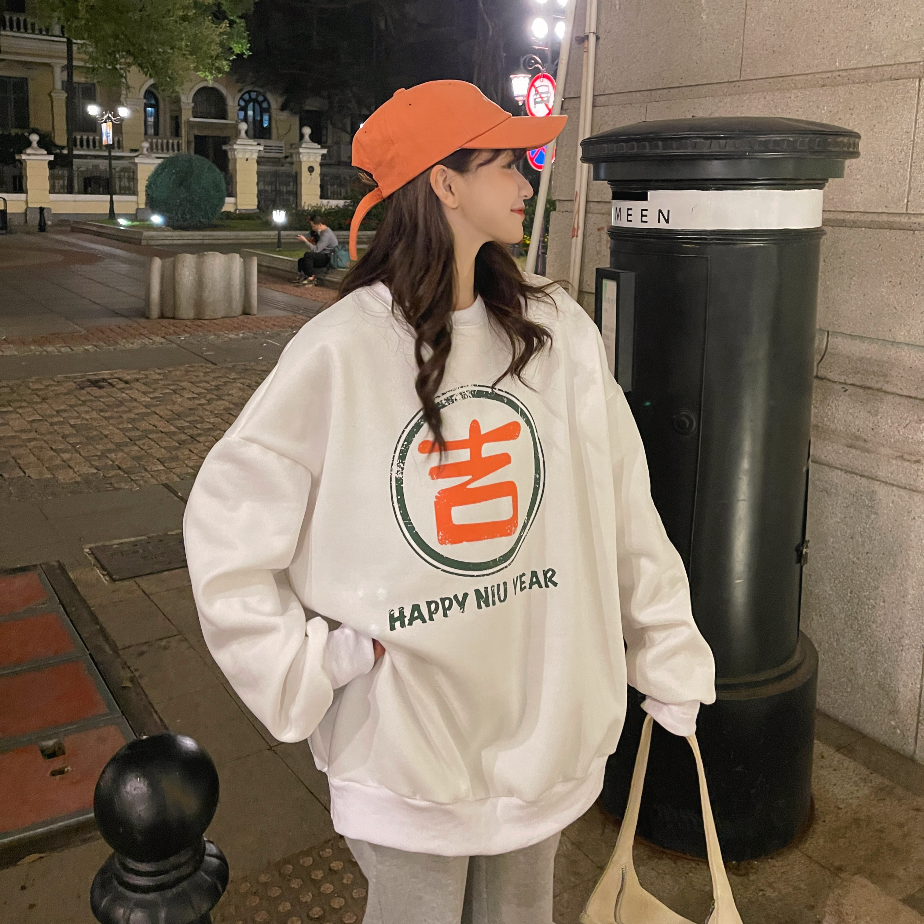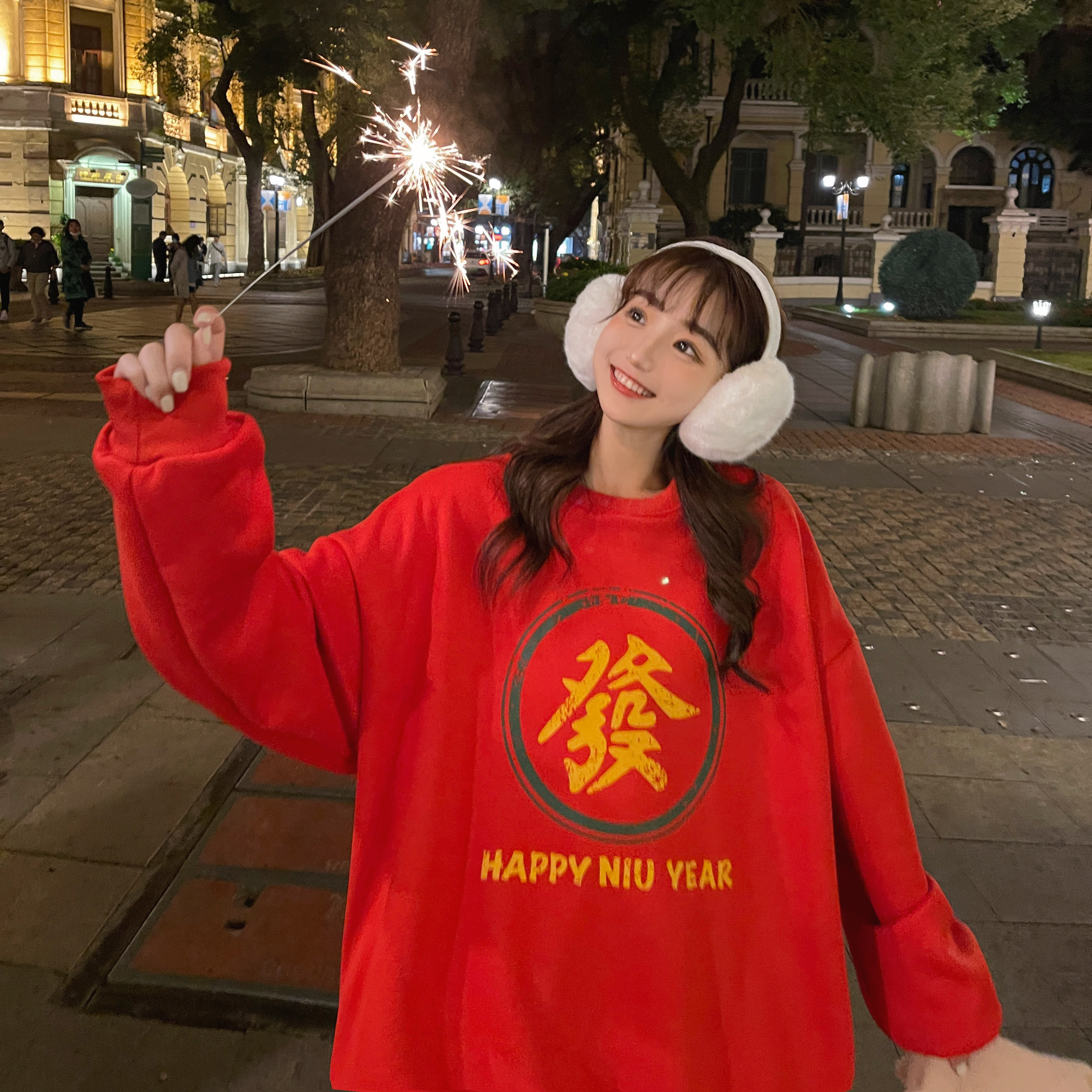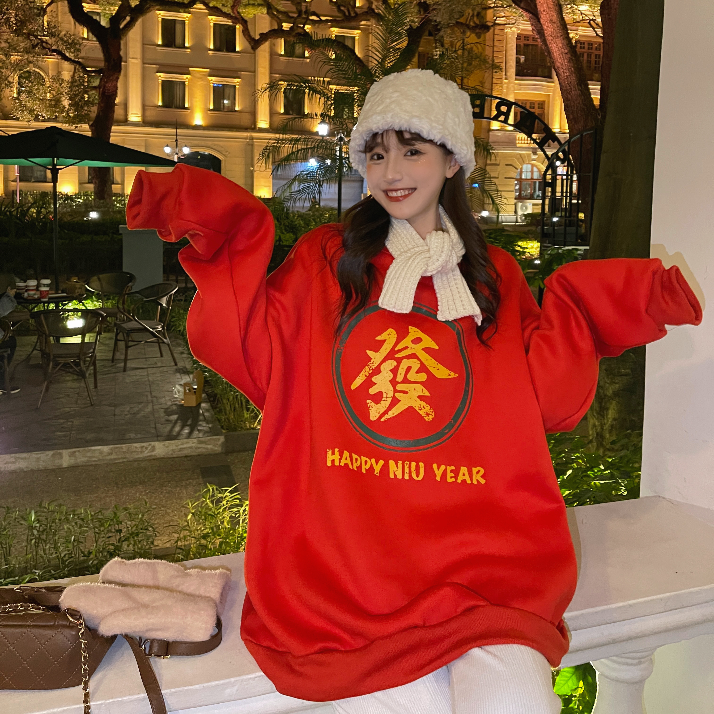 实拍实价~新年圣诞happy“牛”year圆领套头加绒卫衣