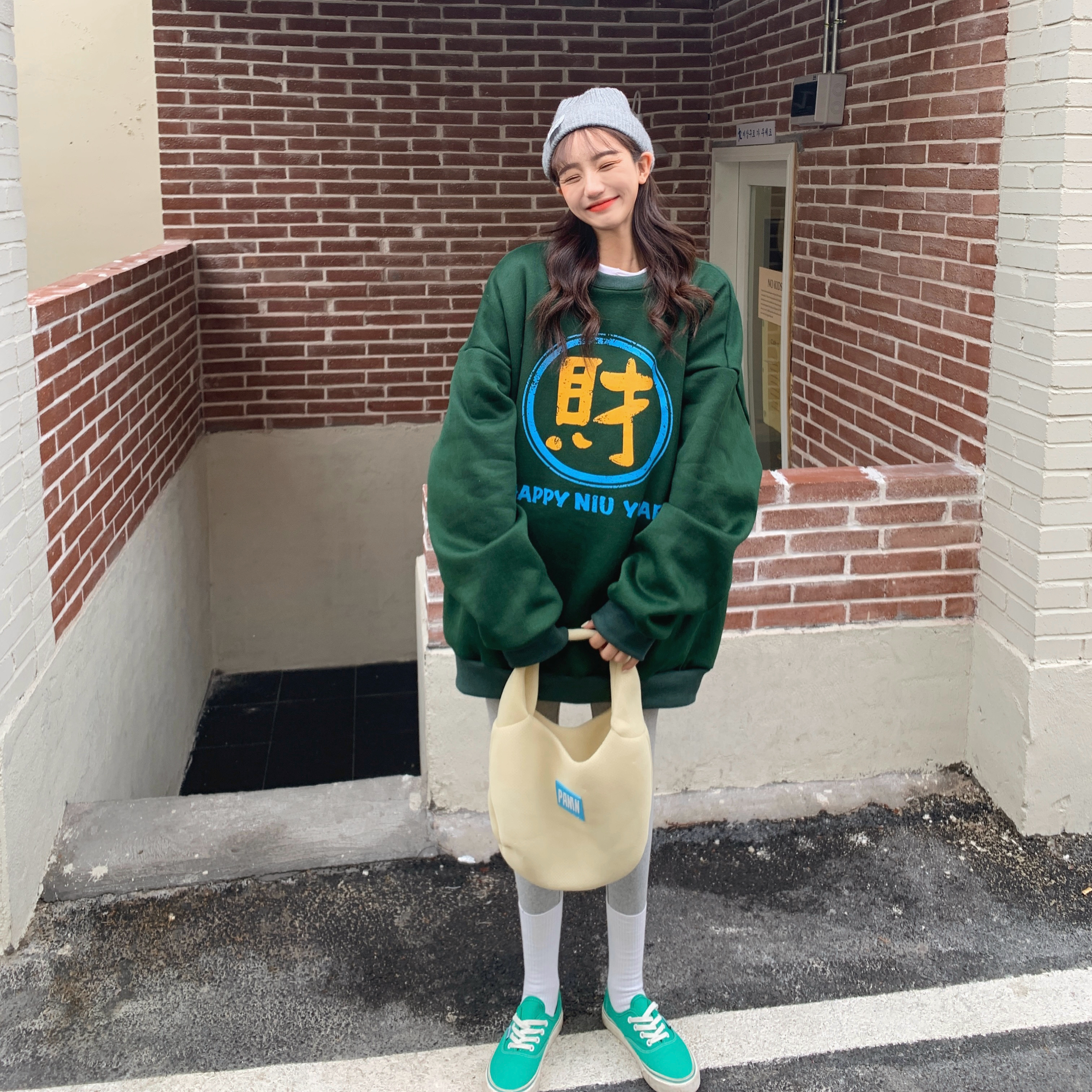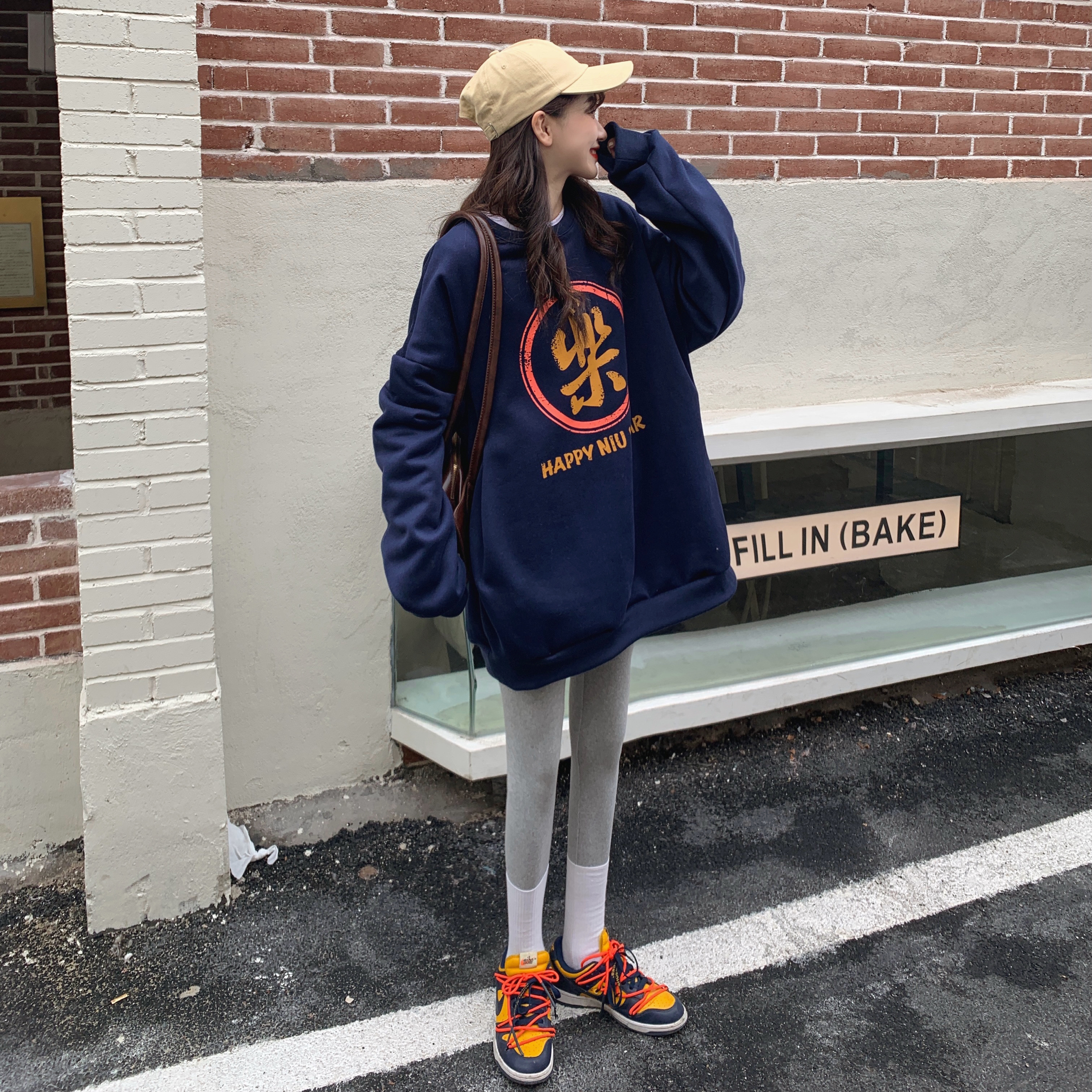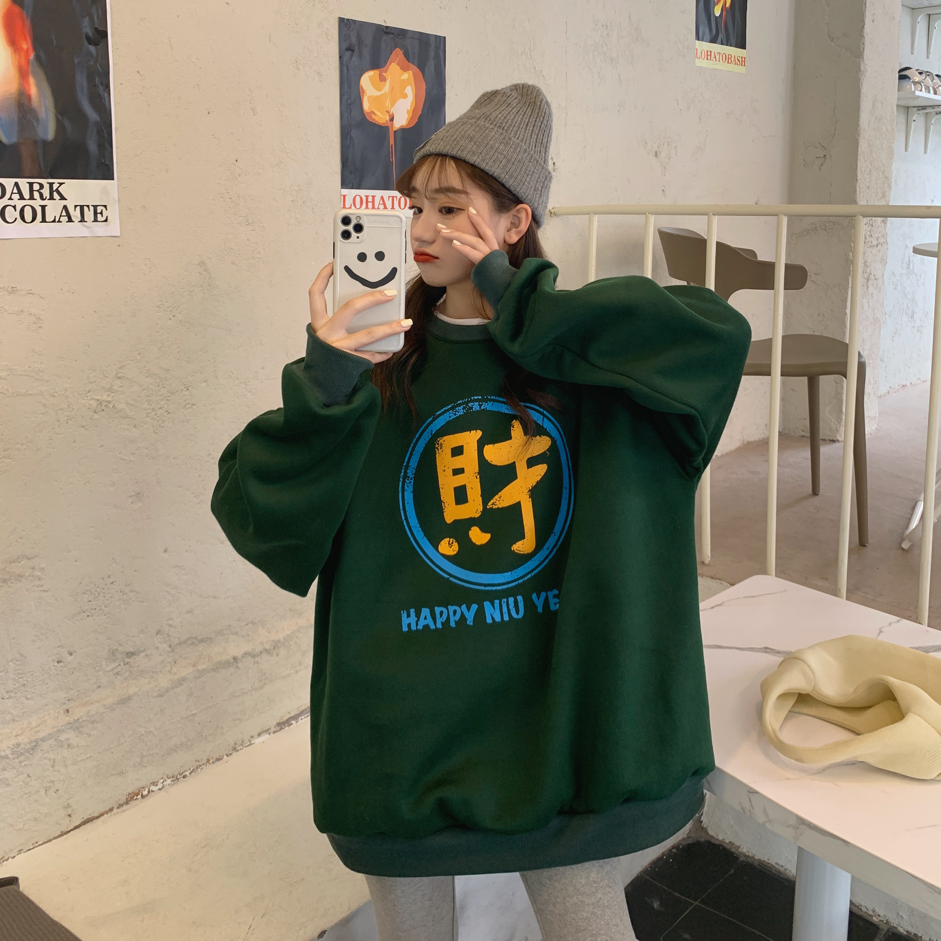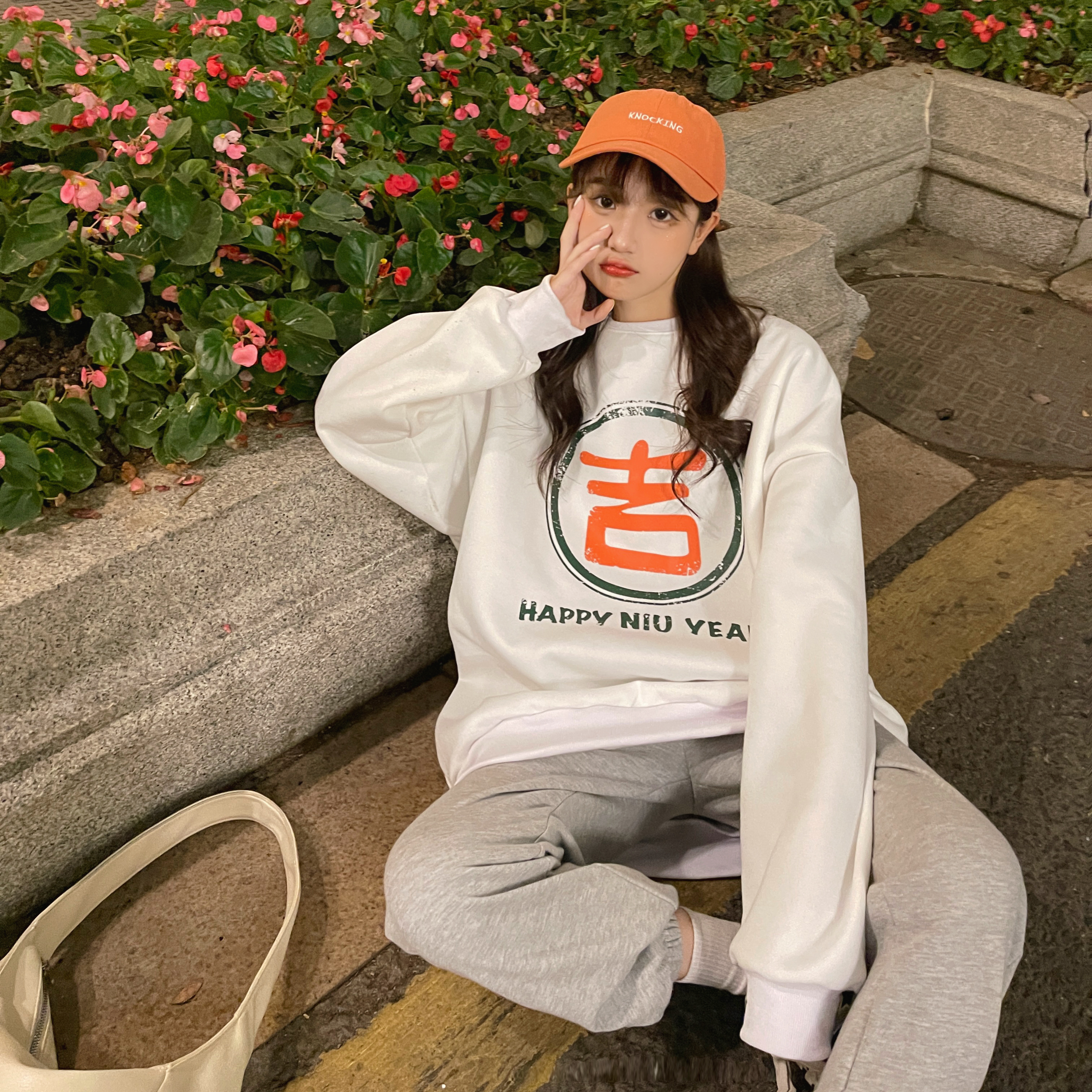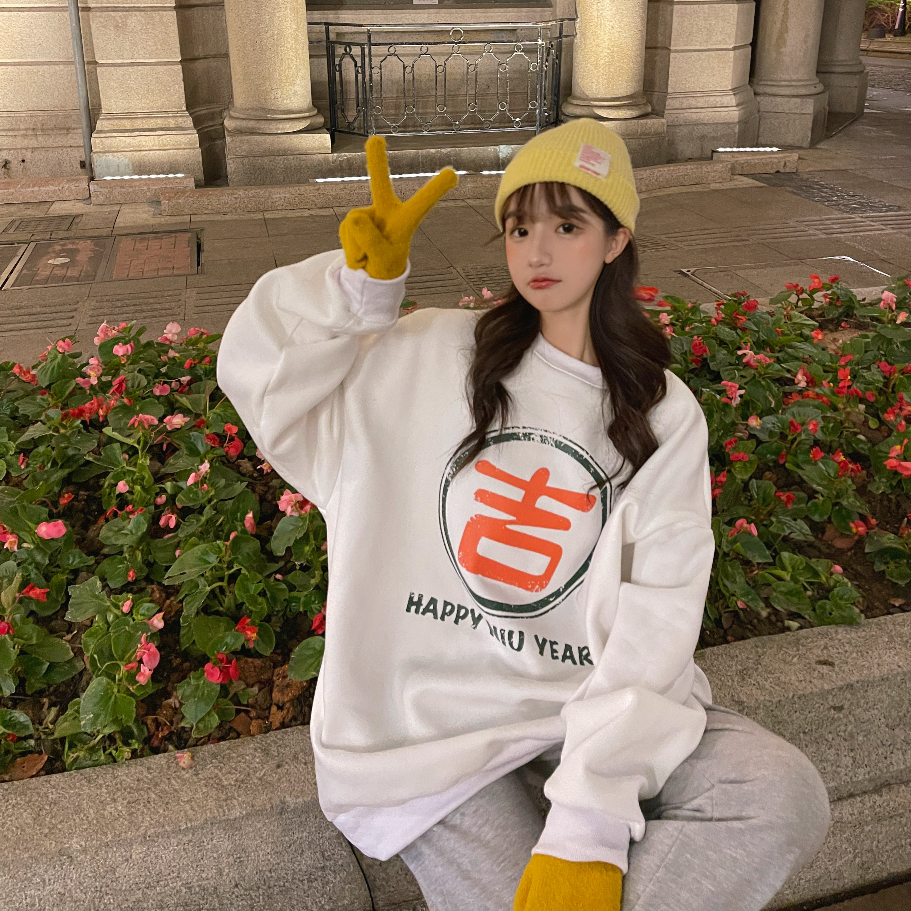 实拍实价~新年圣诞happy“牛”year圆领套头加绒卫衣