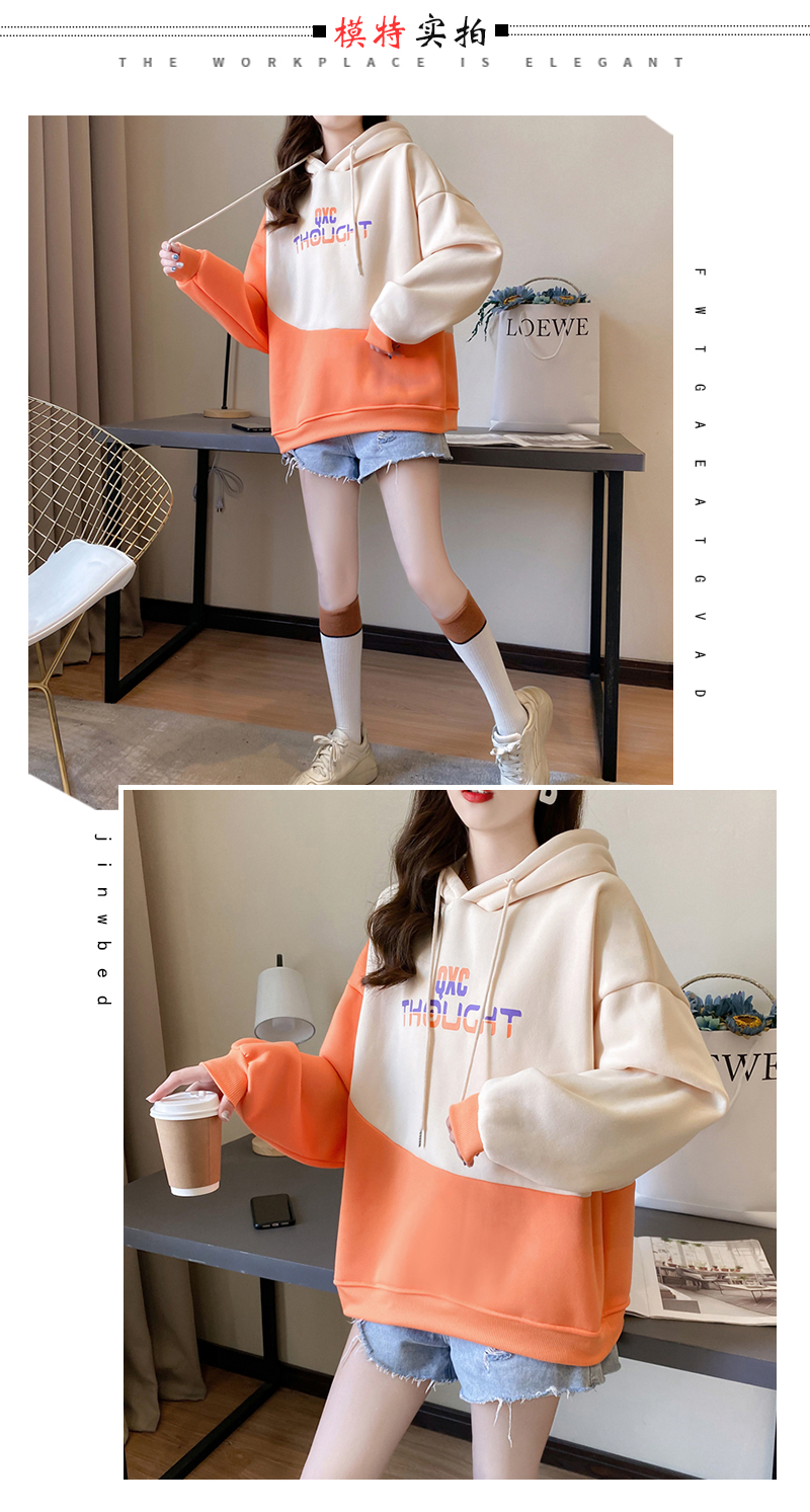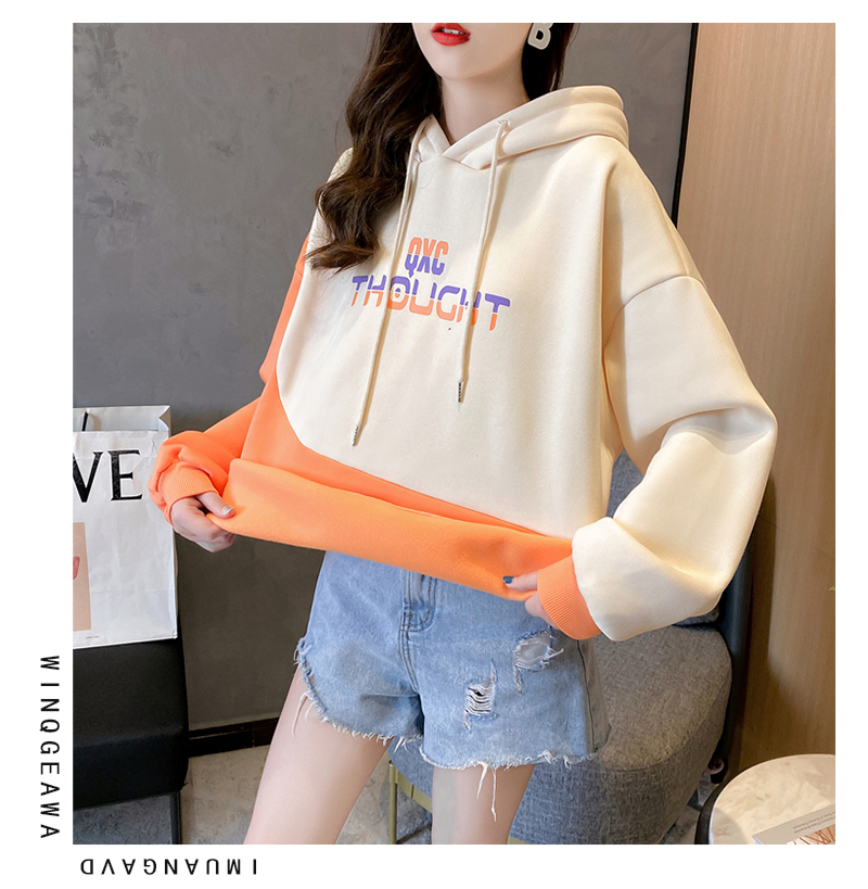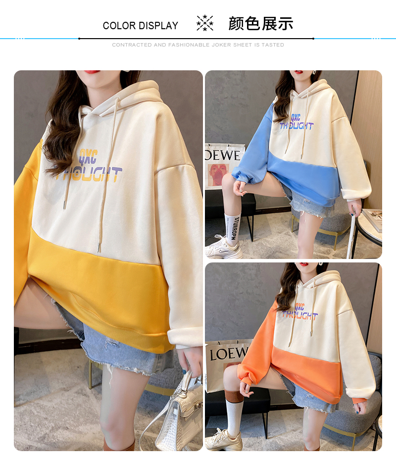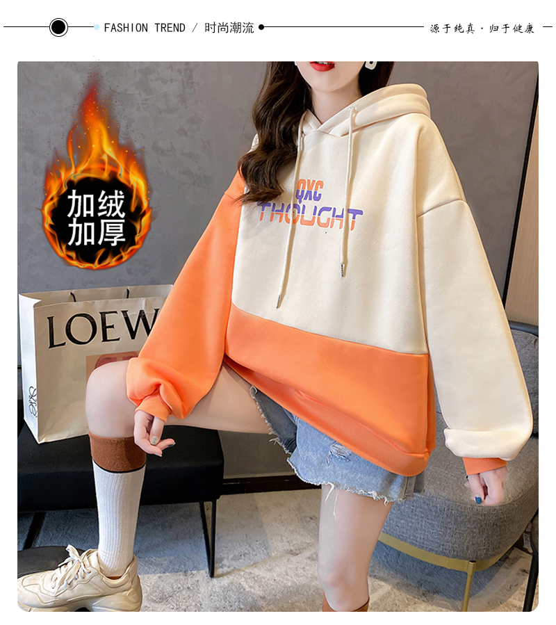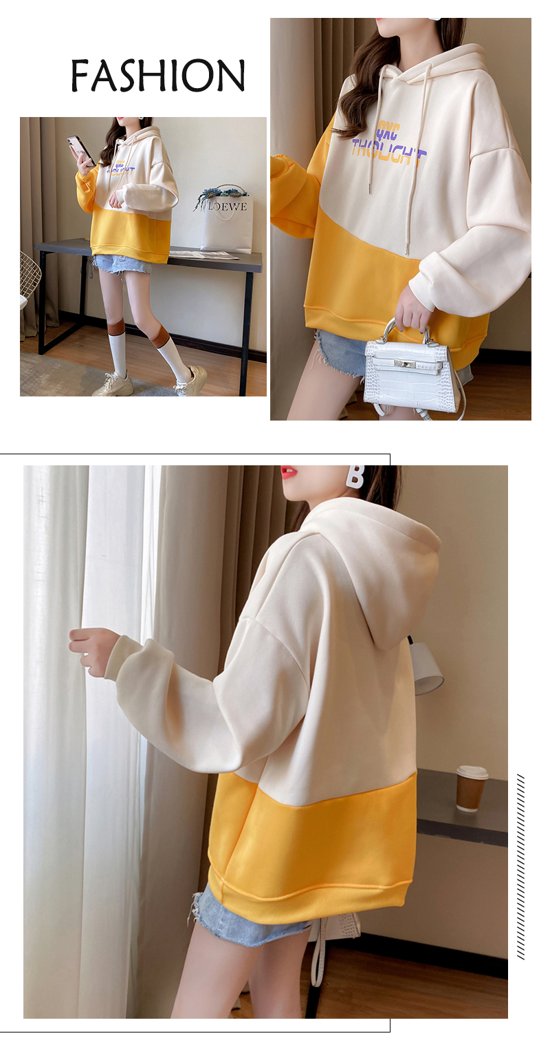 实拍 加绒卫衣女士秋冬新款2020韩版宽松字母假两件连帽卫衣ins潮