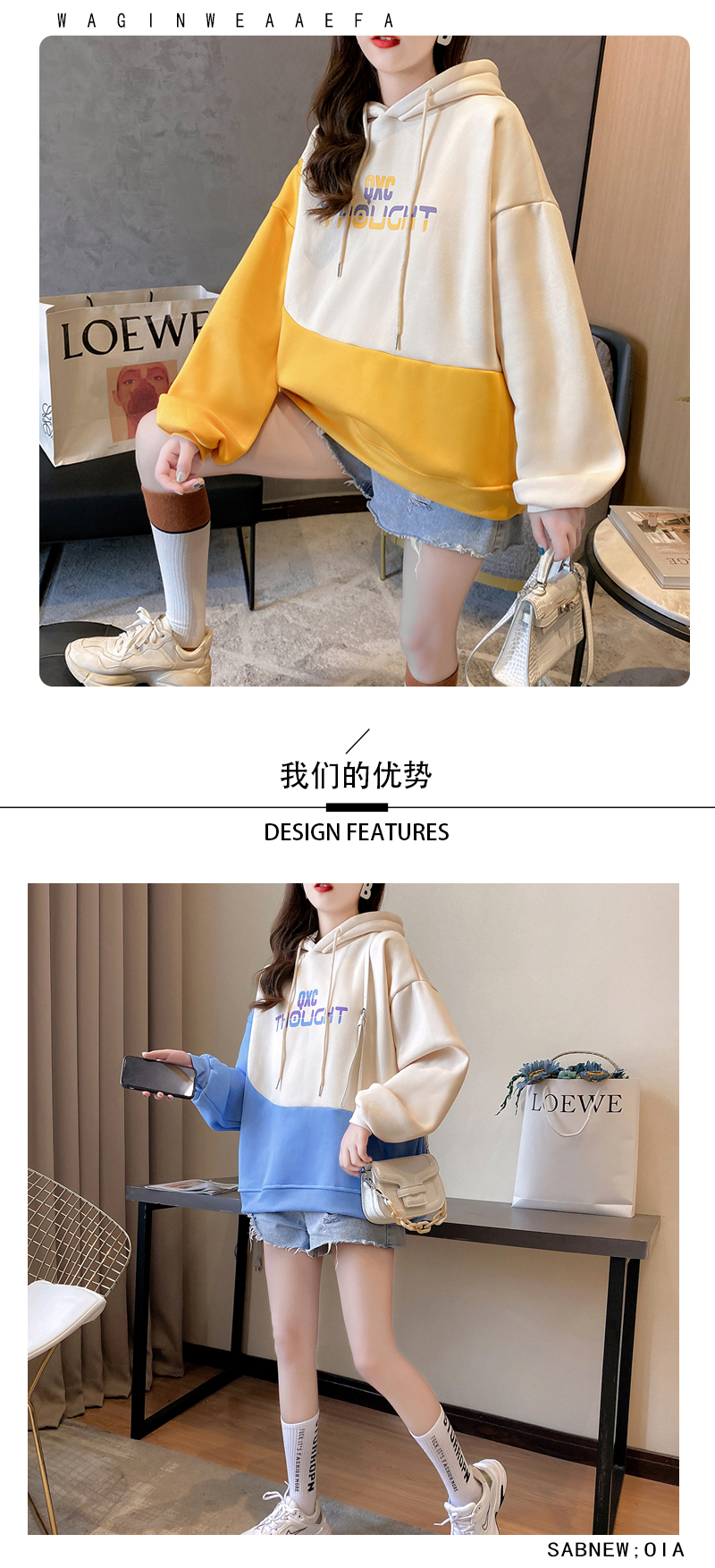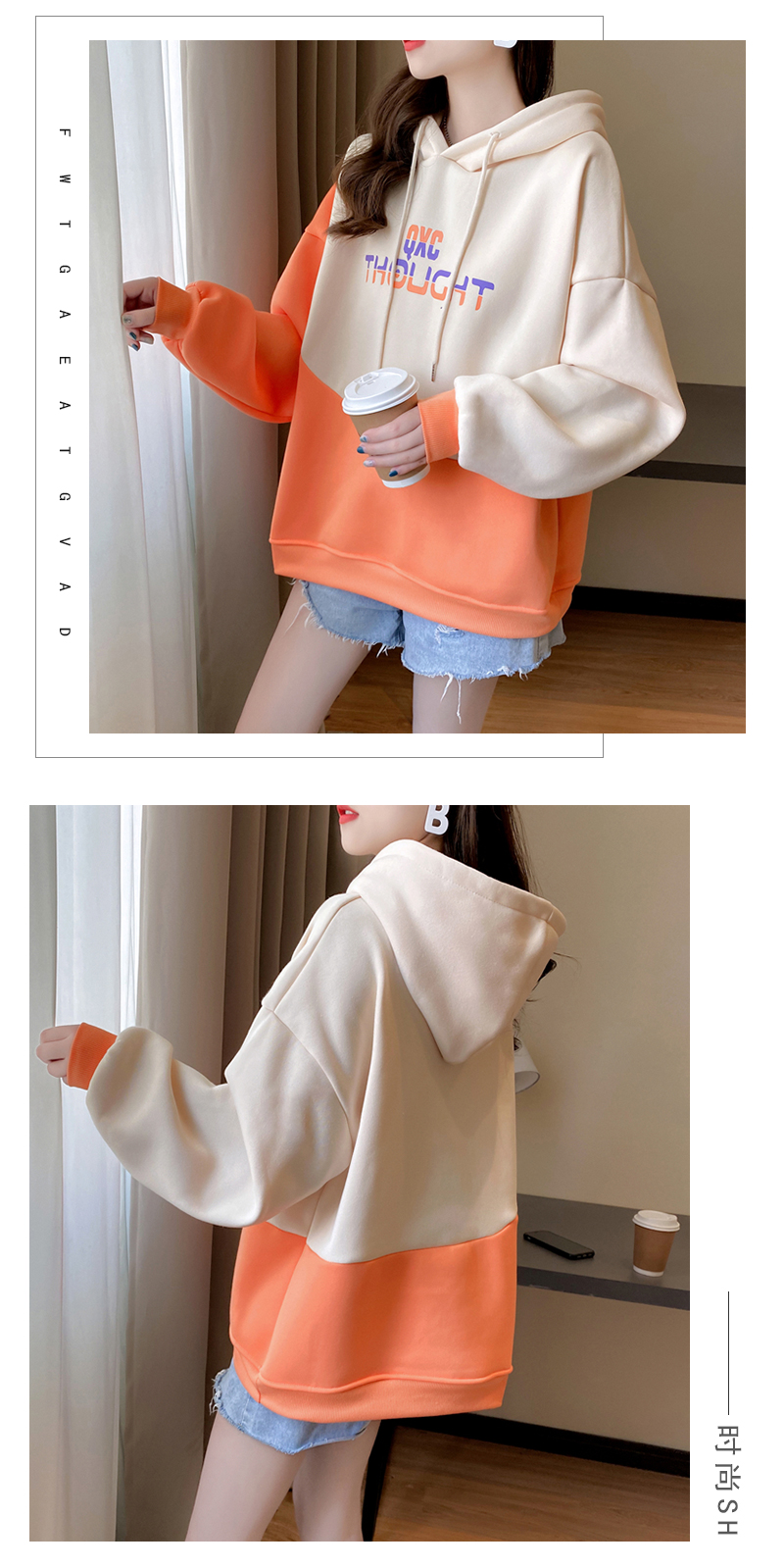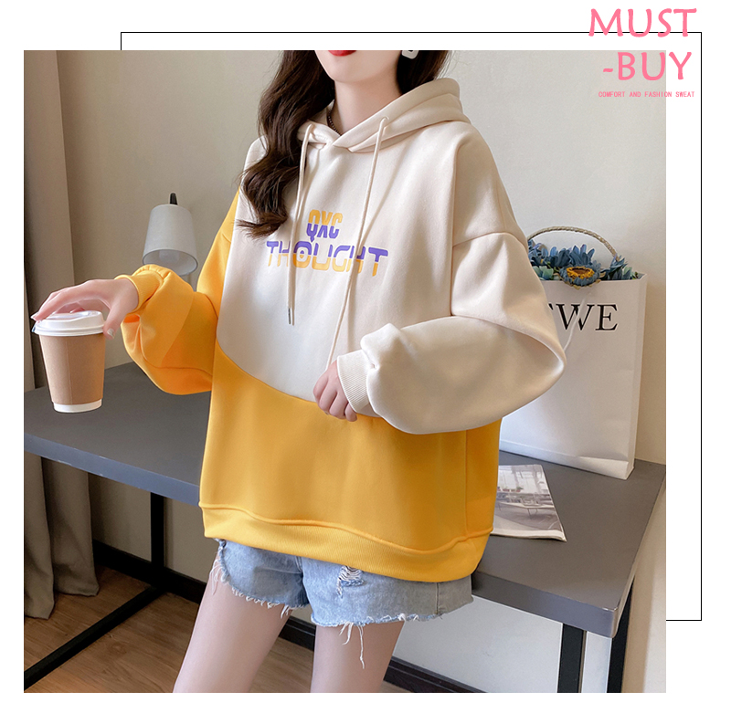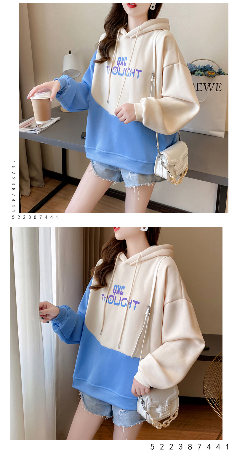 实拍 加绒卫衣女士秋冬新款2020韩版宽松字母假两件连帽卫衣ins潮