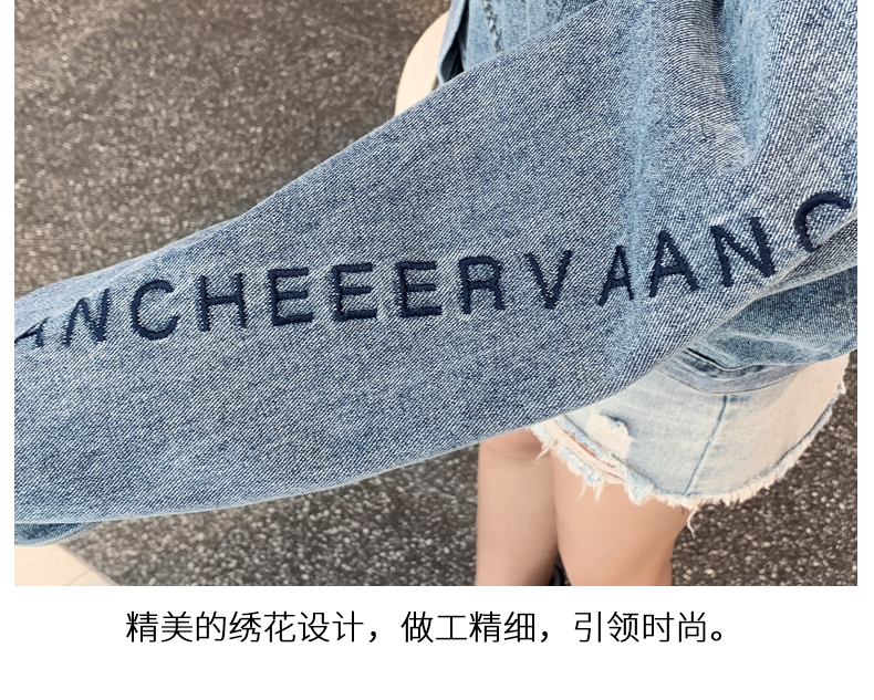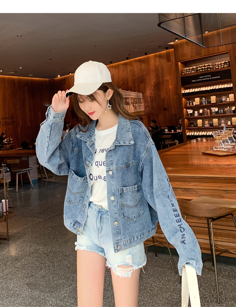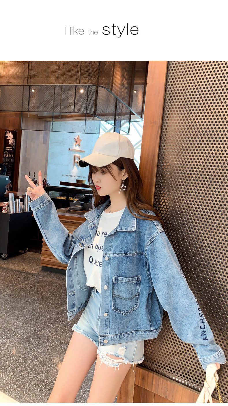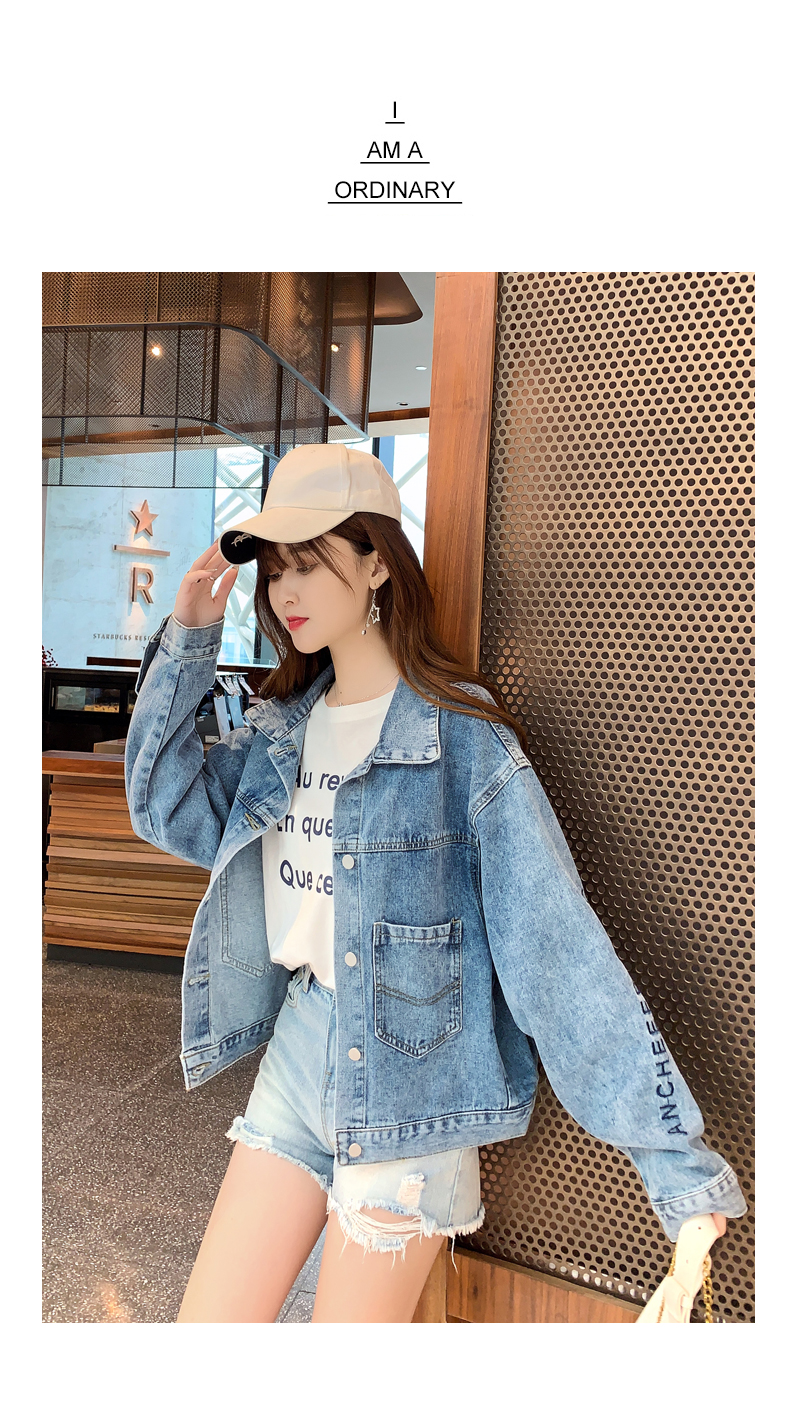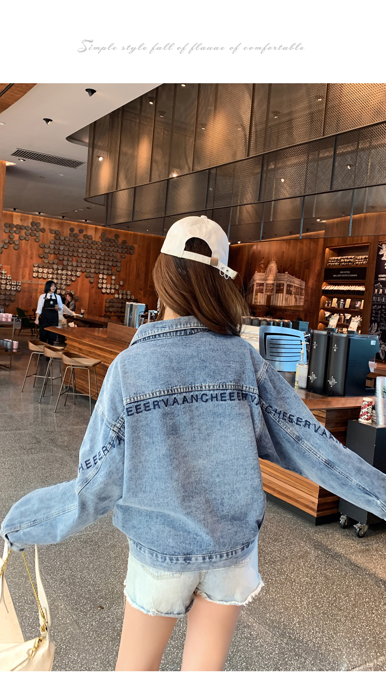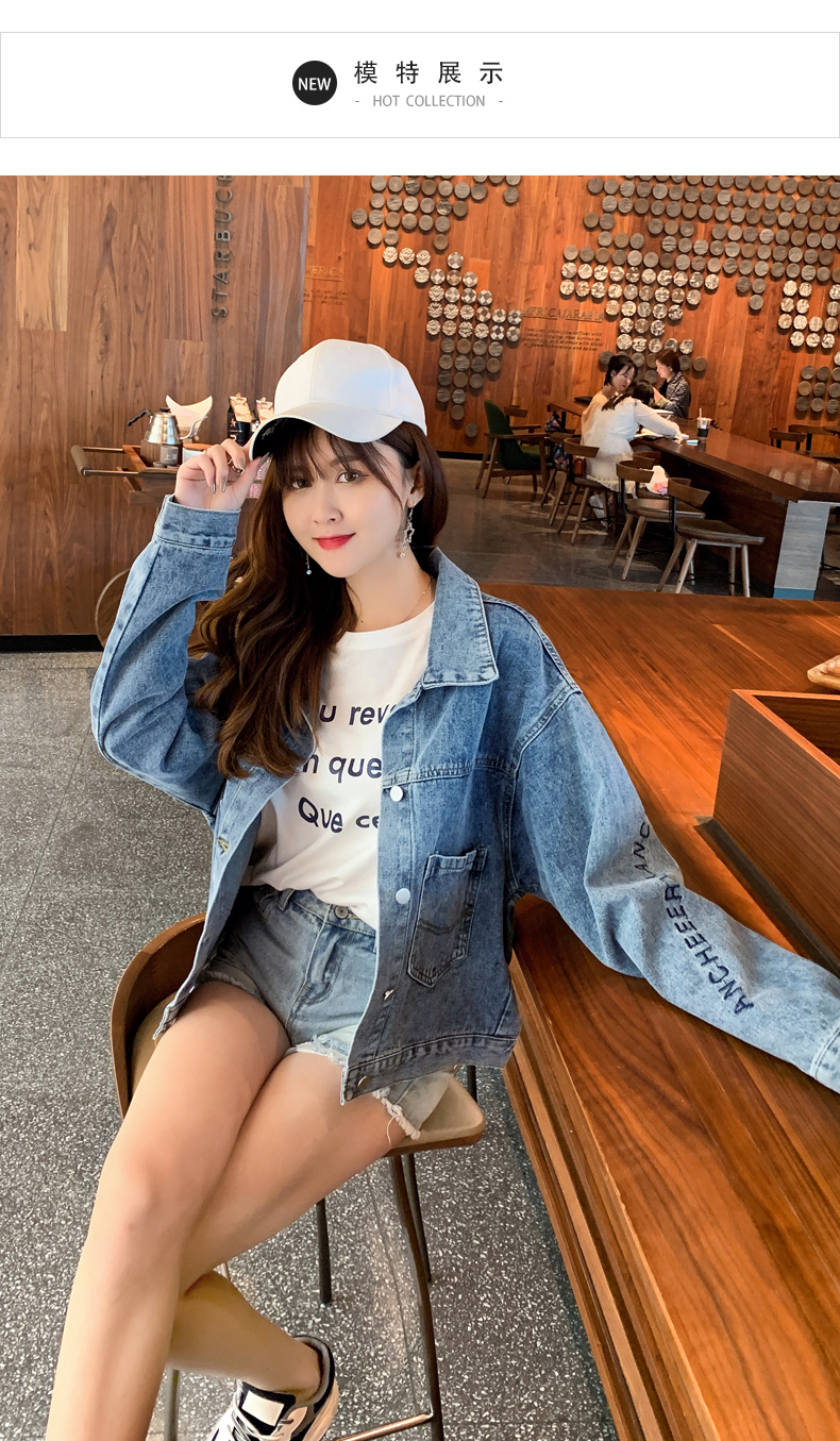 现货实拍春季新款刺绣字母牛仔外套女百搭长袖短款韩版牛仔衣夹克