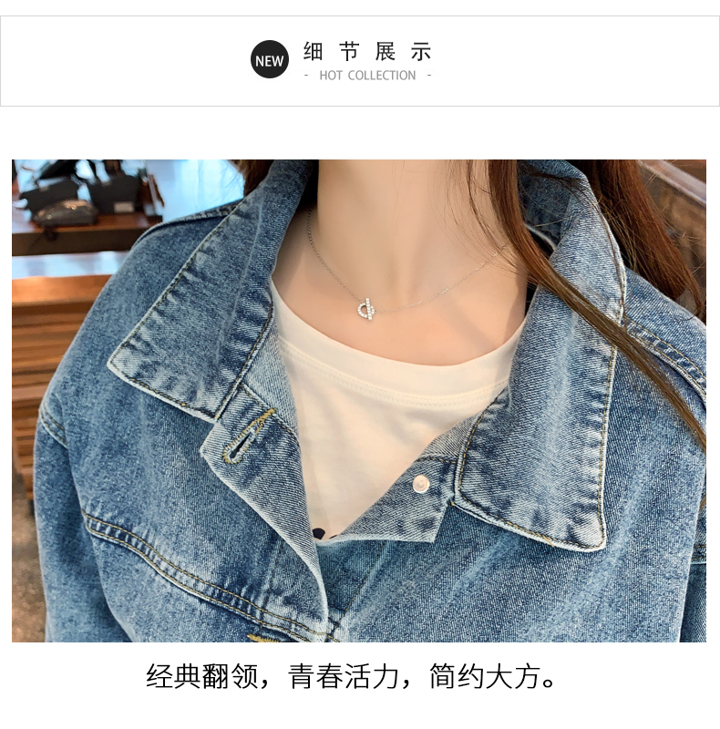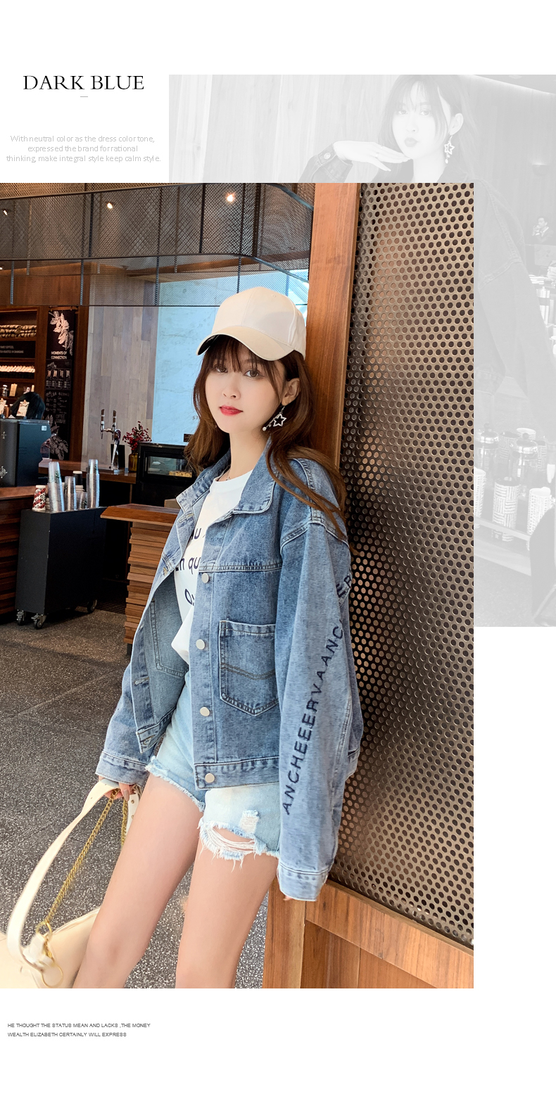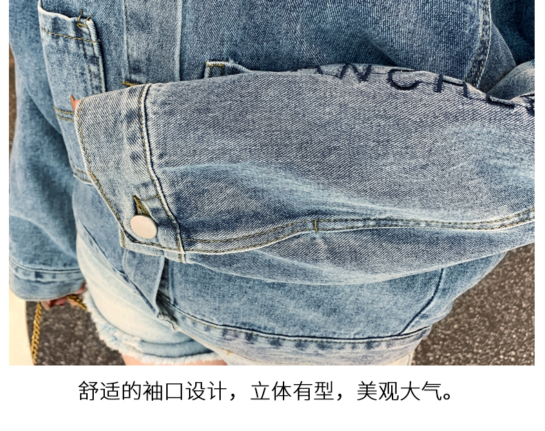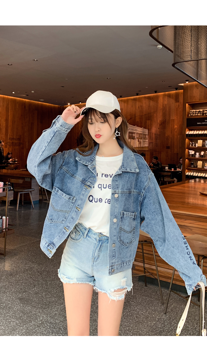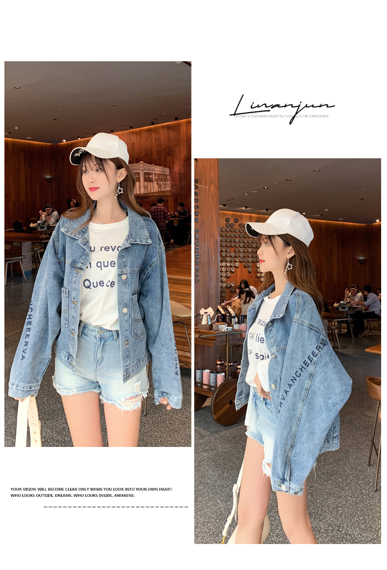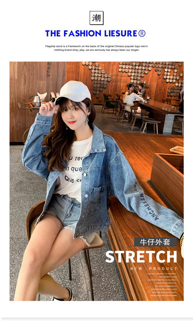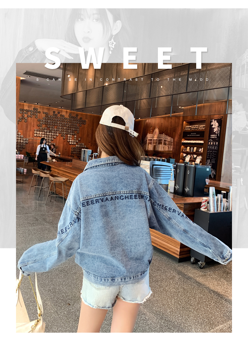 现货实拍春季新款刺绣字母牛仔外套女百搭长袖短款韩版牛仔衣夹克