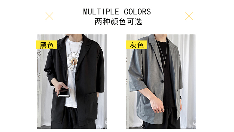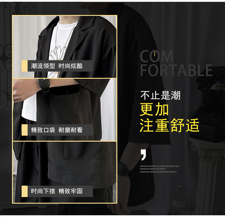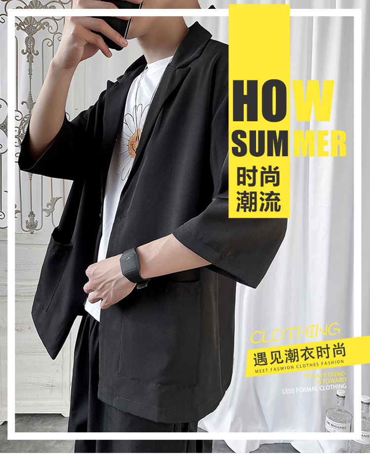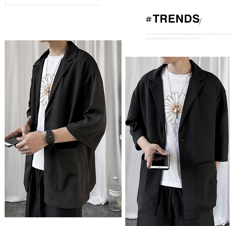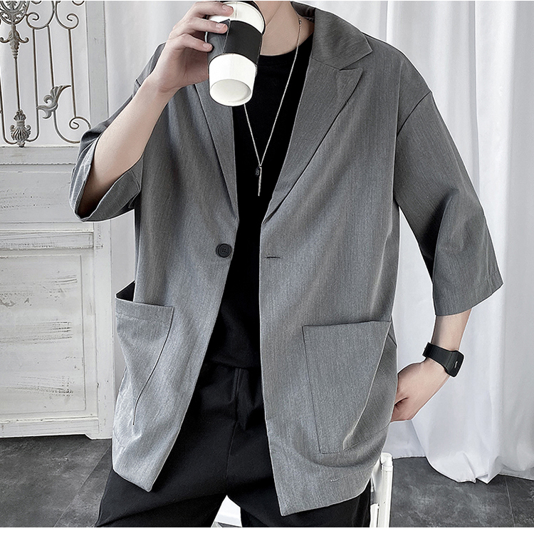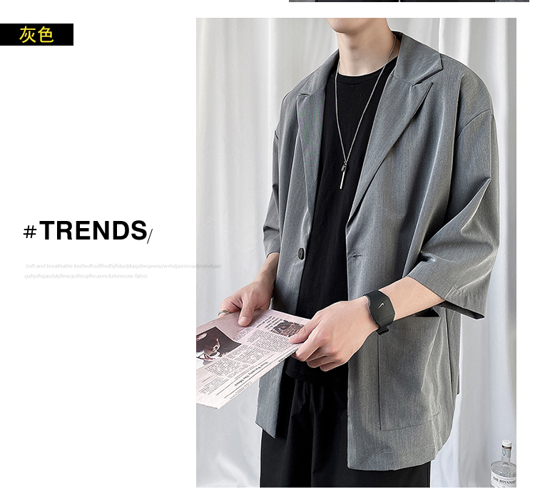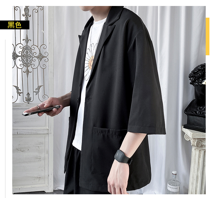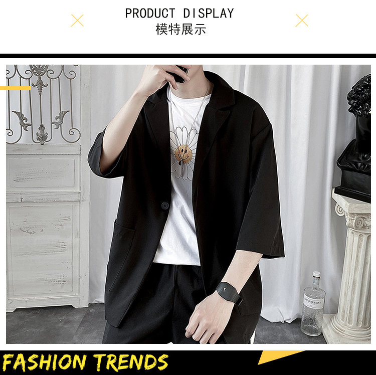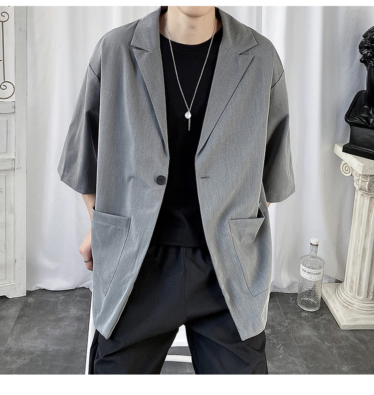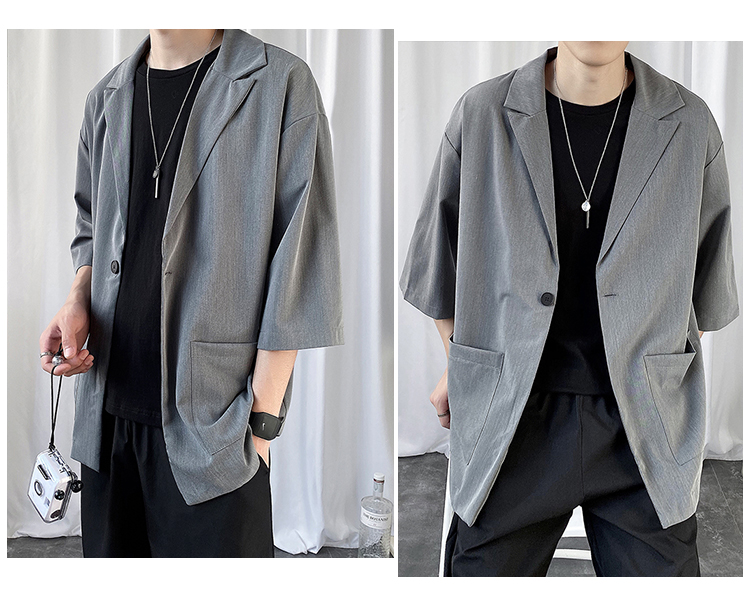 夏季高级感七分袖衬衫男大码宽松五分袖西服外套冰丝短袖西装上衣