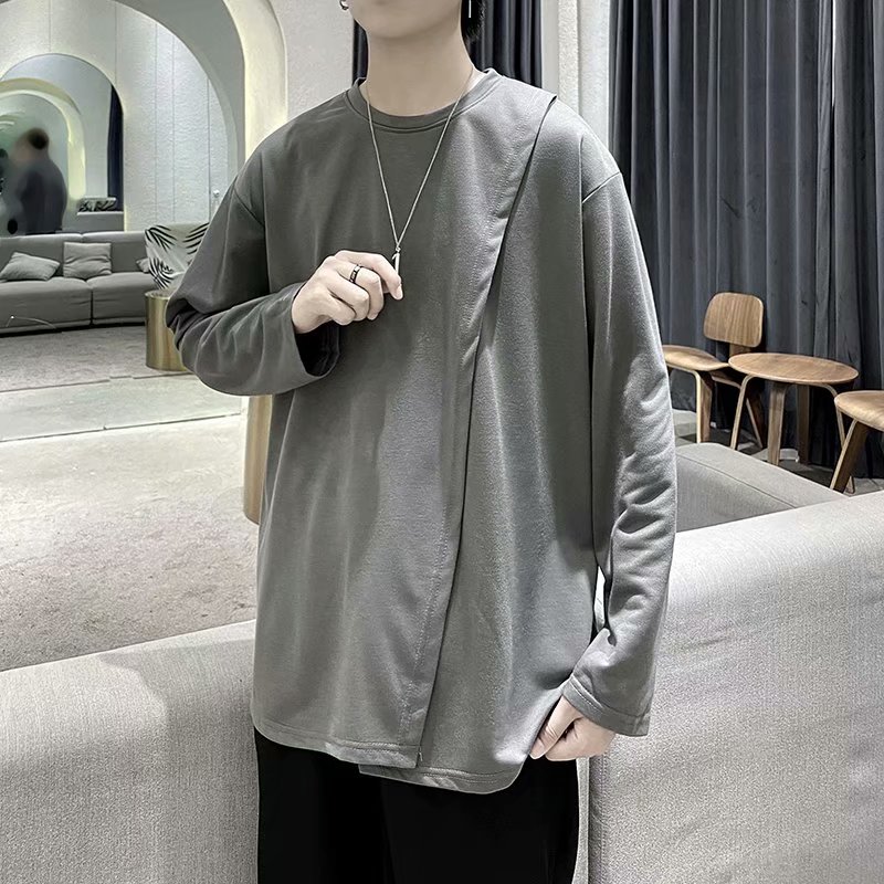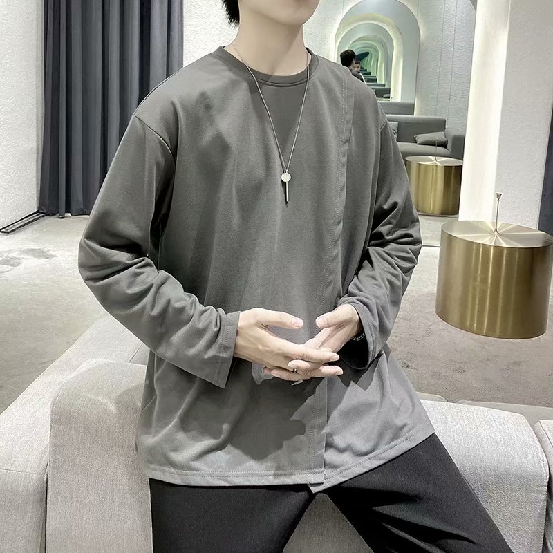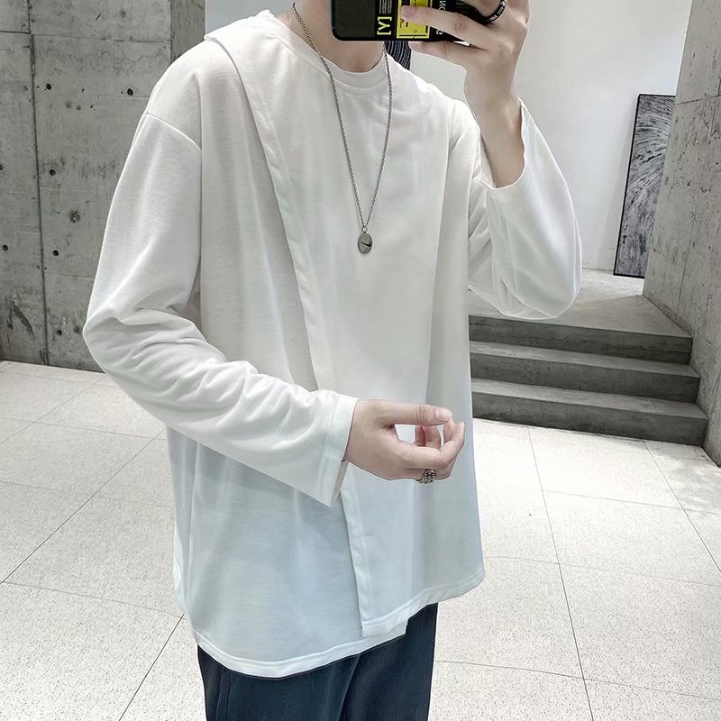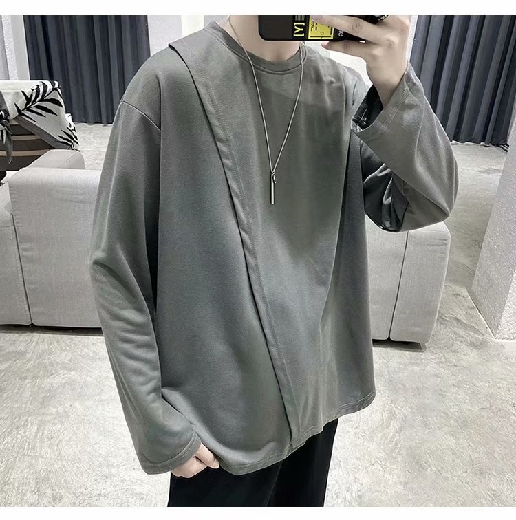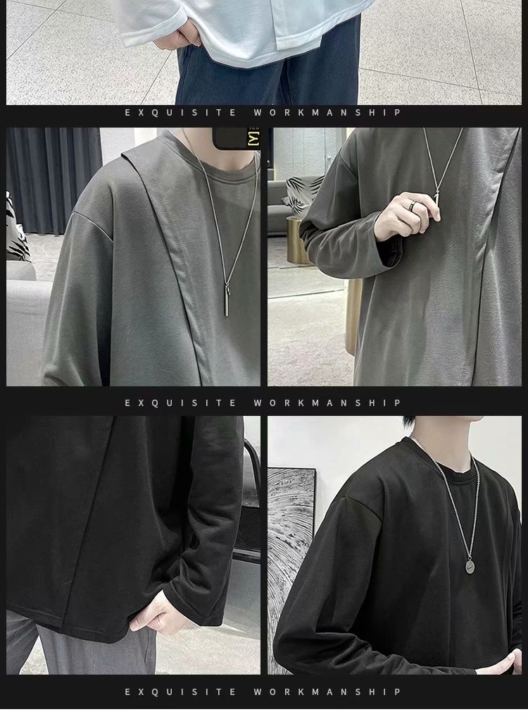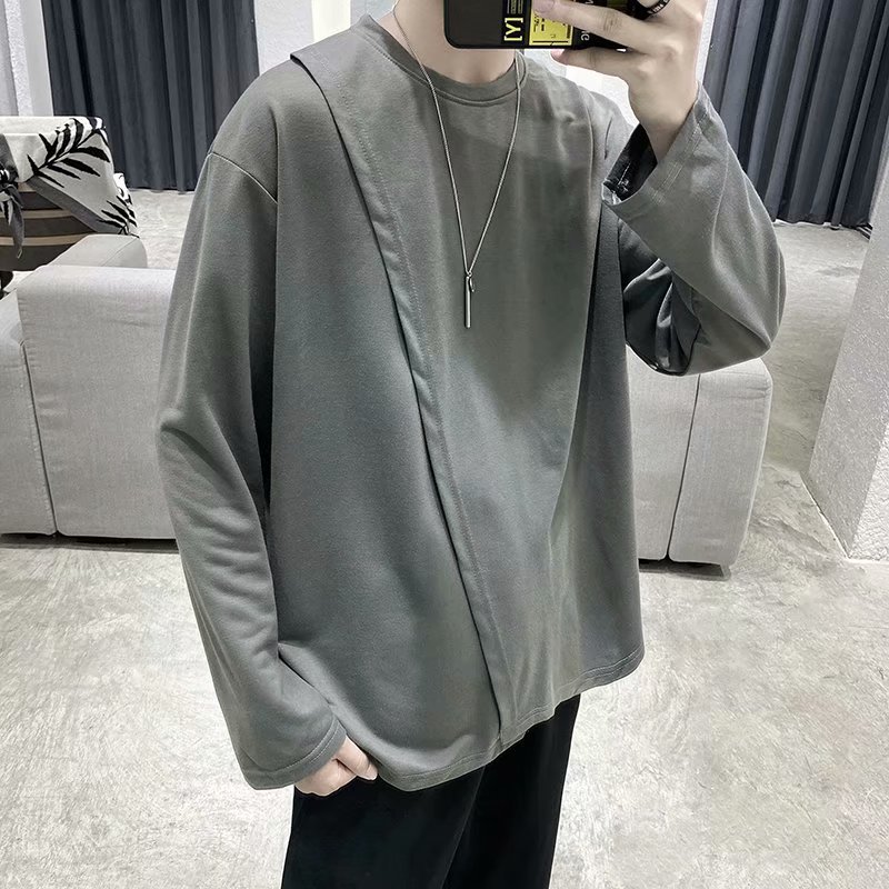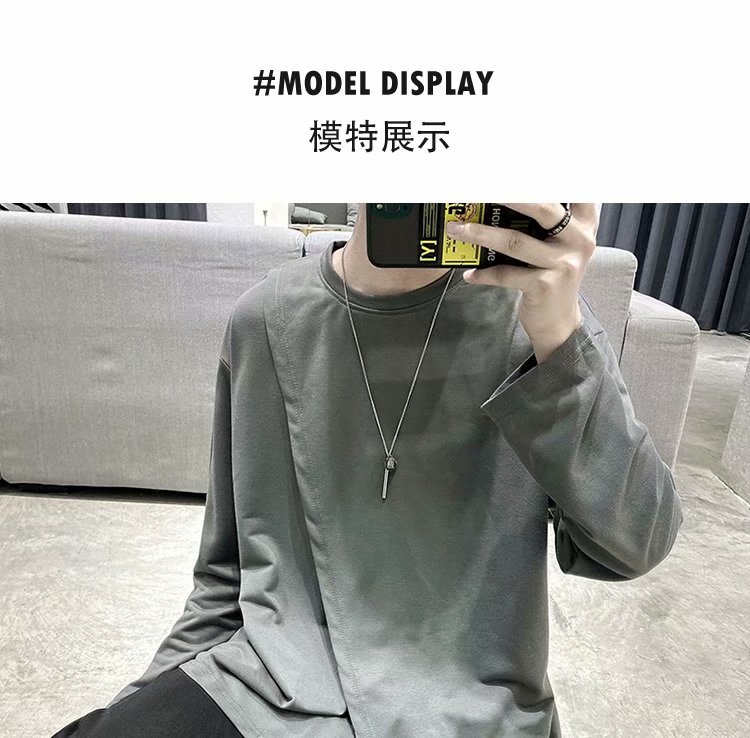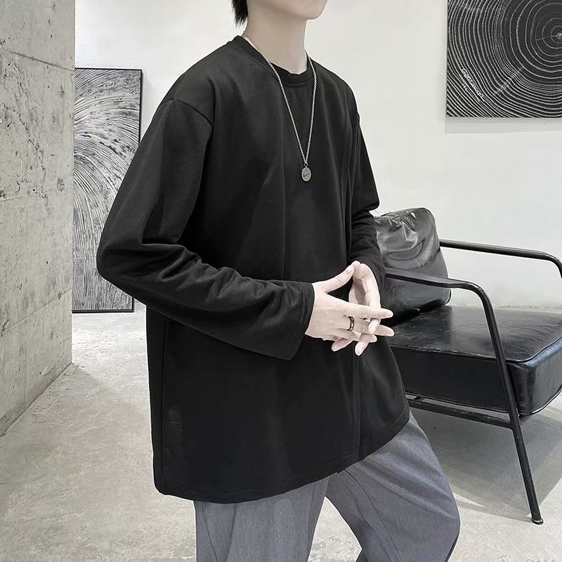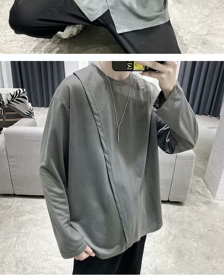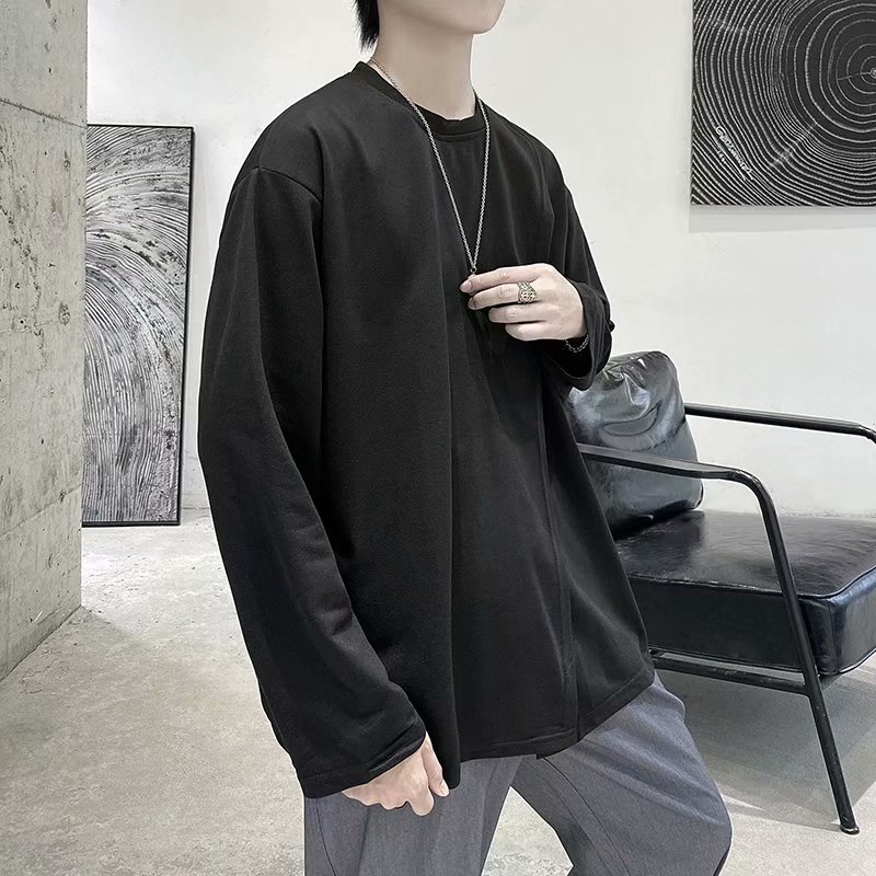 实拍 韩版潮流宽松百搭上衣港风街头复古纯色学生T恤圆领男