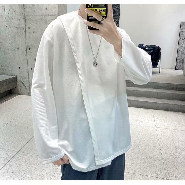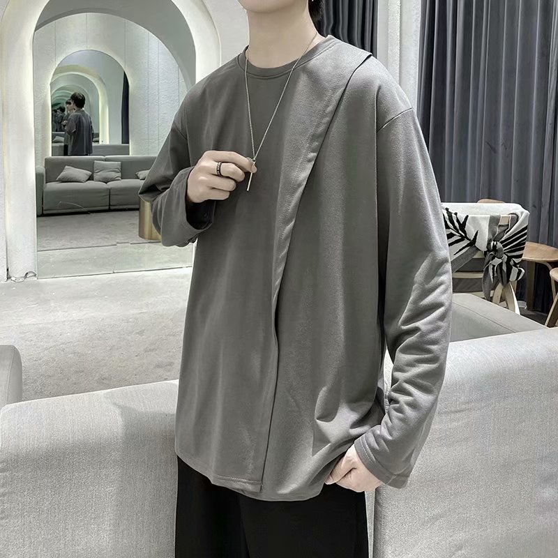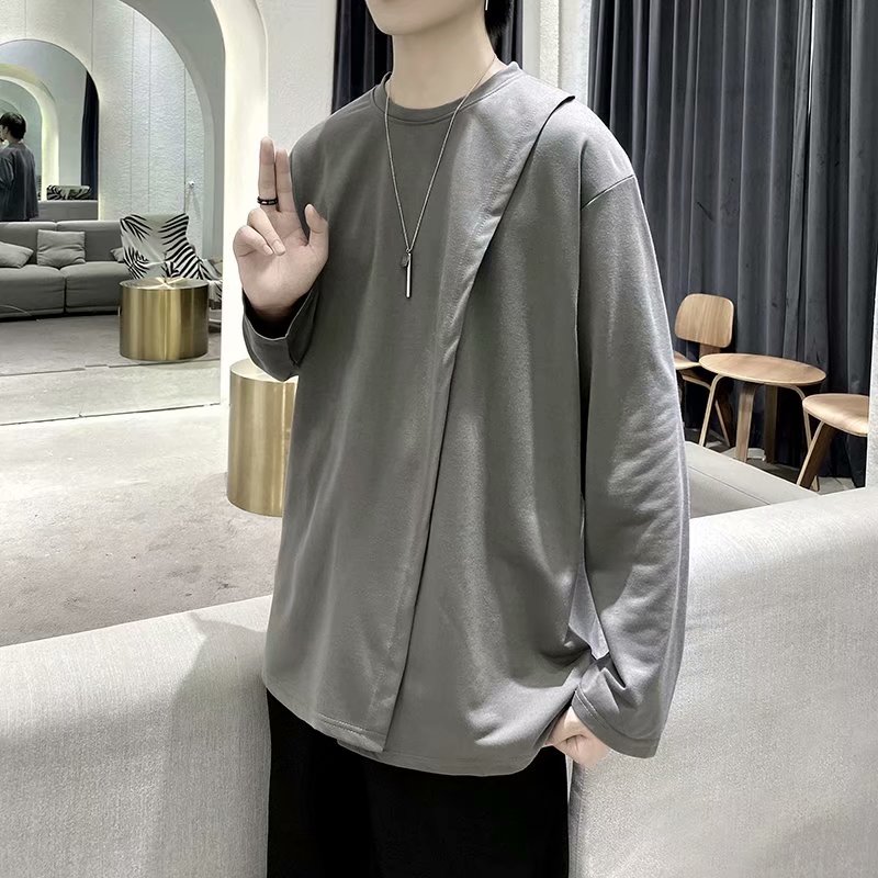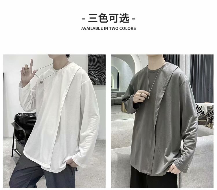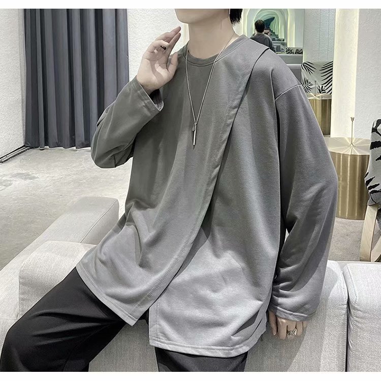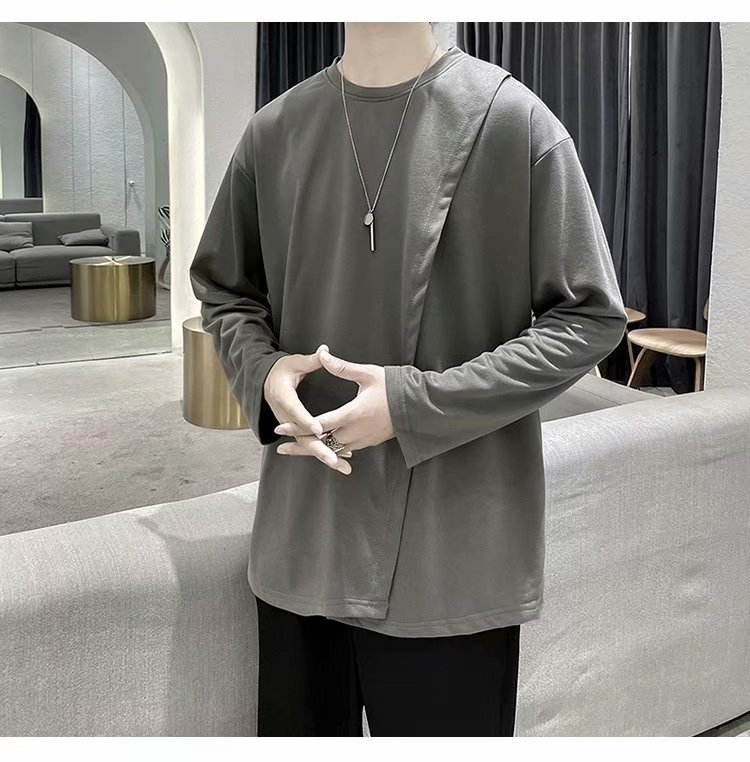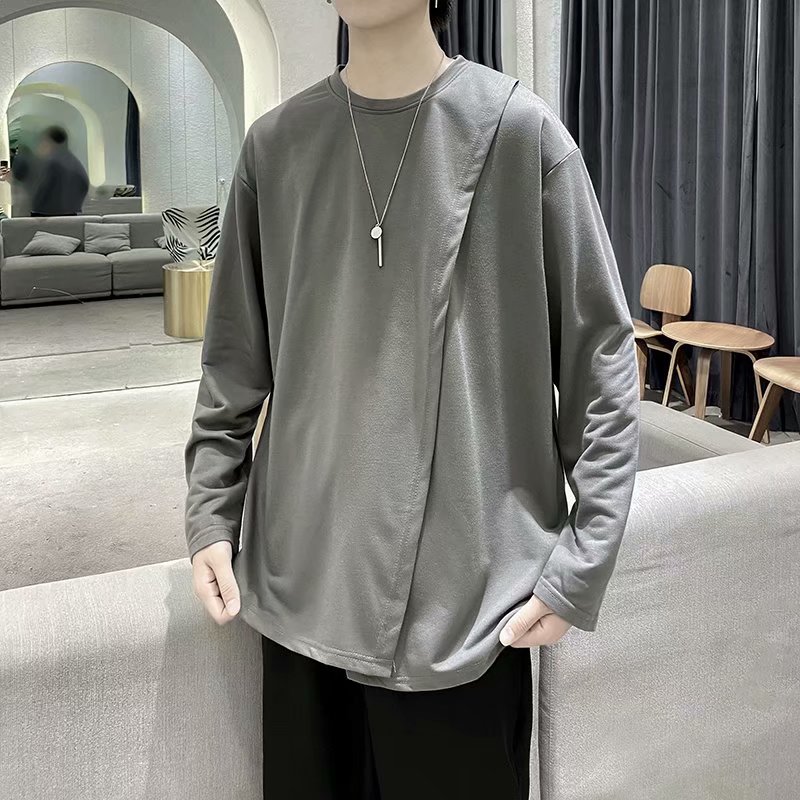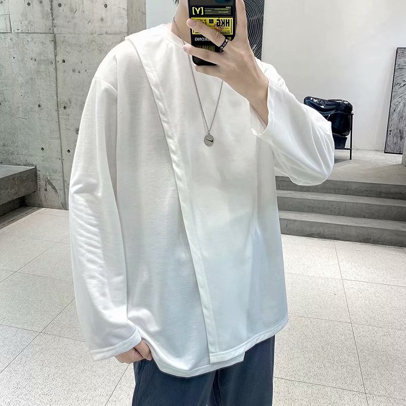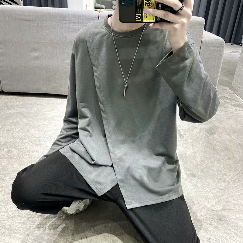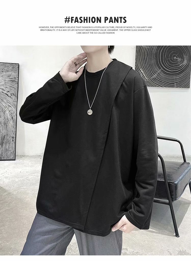 实拍 韩版潮流宽松百搭上衣港风街头复古纯色学生T恤圆领男