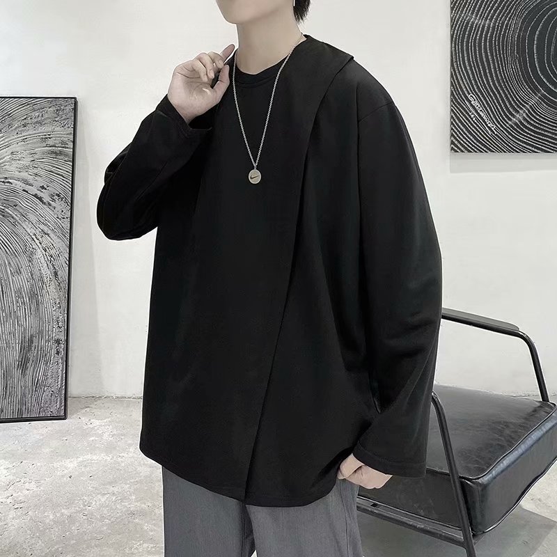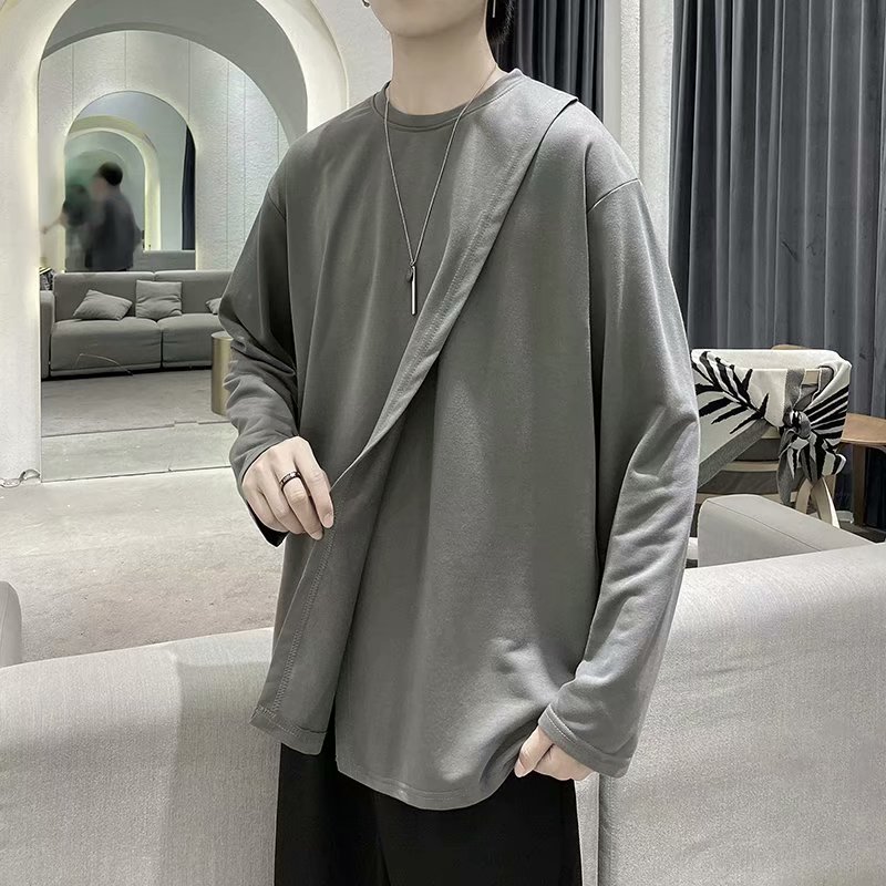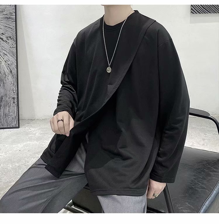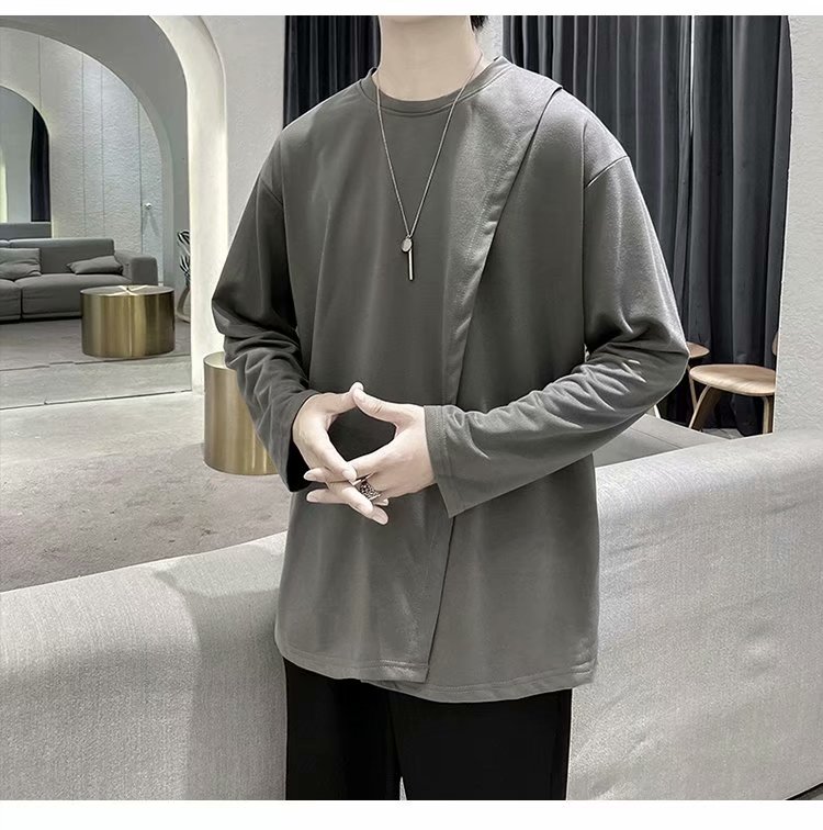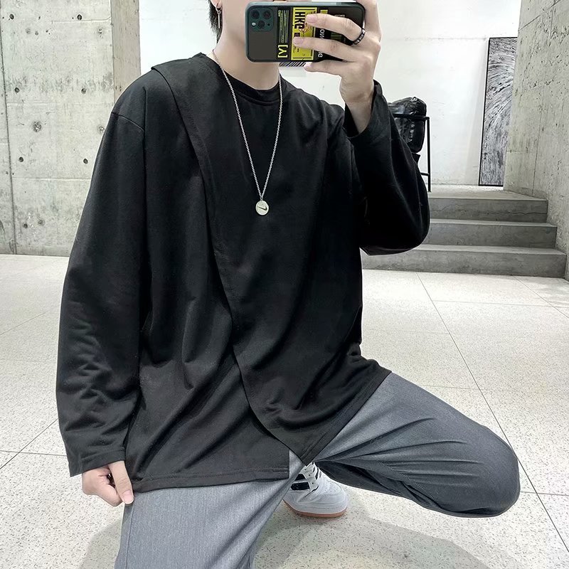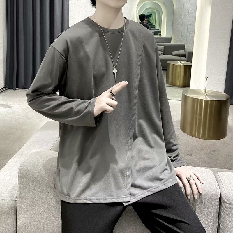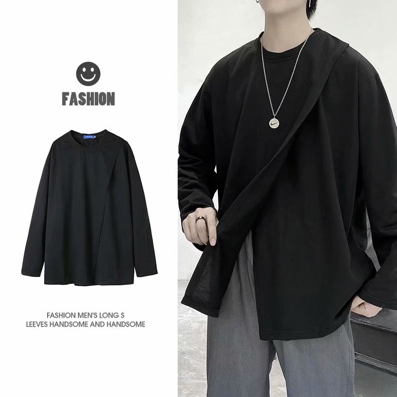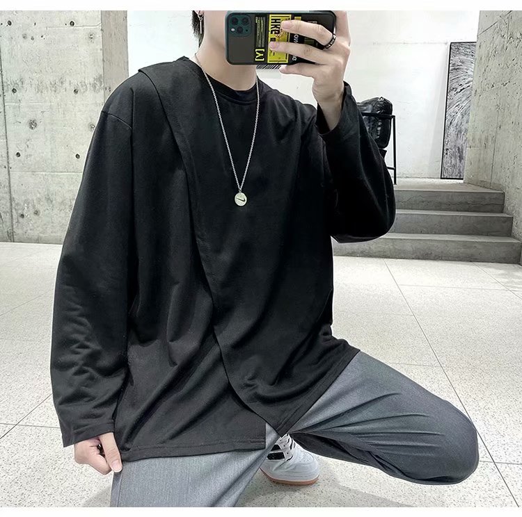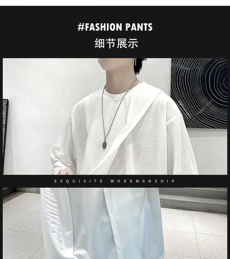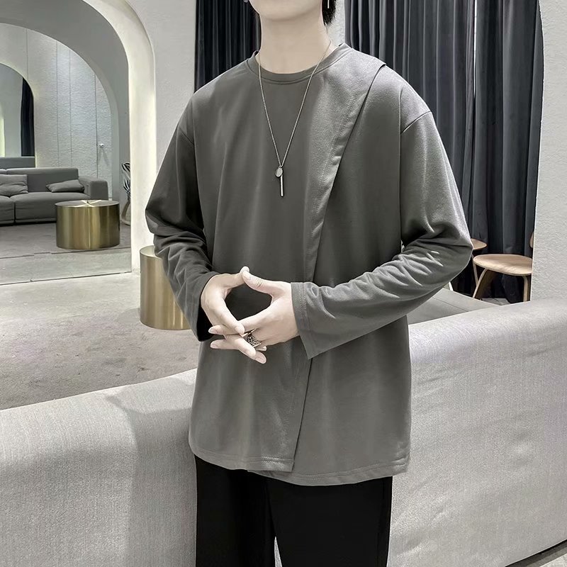 实拍 韩版潮流宽松百搭上衣港风街头复古纯色学生T恤圆领男